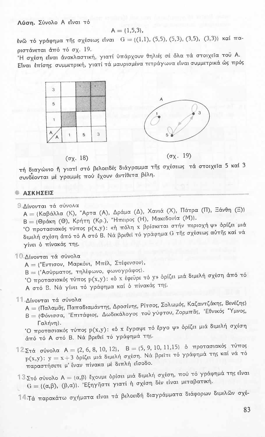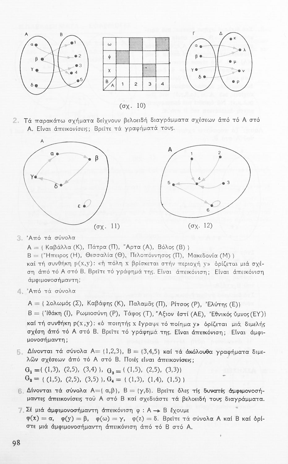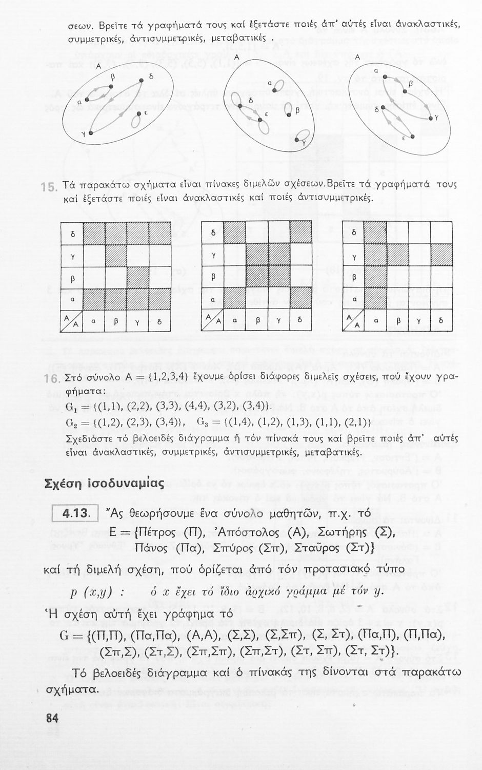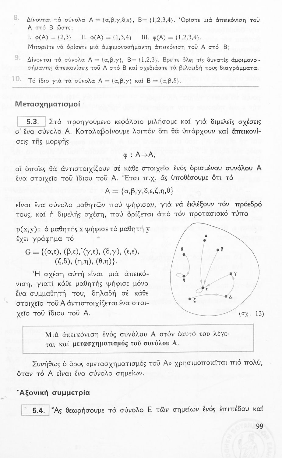 Σχολικό Εγχειρίδιο Μαθηματικών Β' Γυμνασίου που περιλαμβάνει αριθμητική με έμφαση στα σύνολα, τις μεθόδους υπολογισμού τόκων και επιτοκίων, και την μέθοδο των τριών, και γεωμετρία με έμφαση στα γεωμετρικά ...
