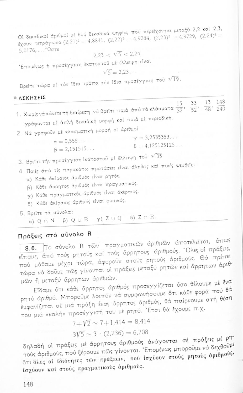 Σχολικό εγχειρίδιο Αριθμητικής για τις Α΄, Β΄, Γ΄ Γυμνασίου που είναι χωρισμένο σε ορισμούς και ασκήσεις και εστιάζει στις ιδιότητες των αριθμητικών πράξεων, τα κλάσματα και την τετραγωνική ρίζα.