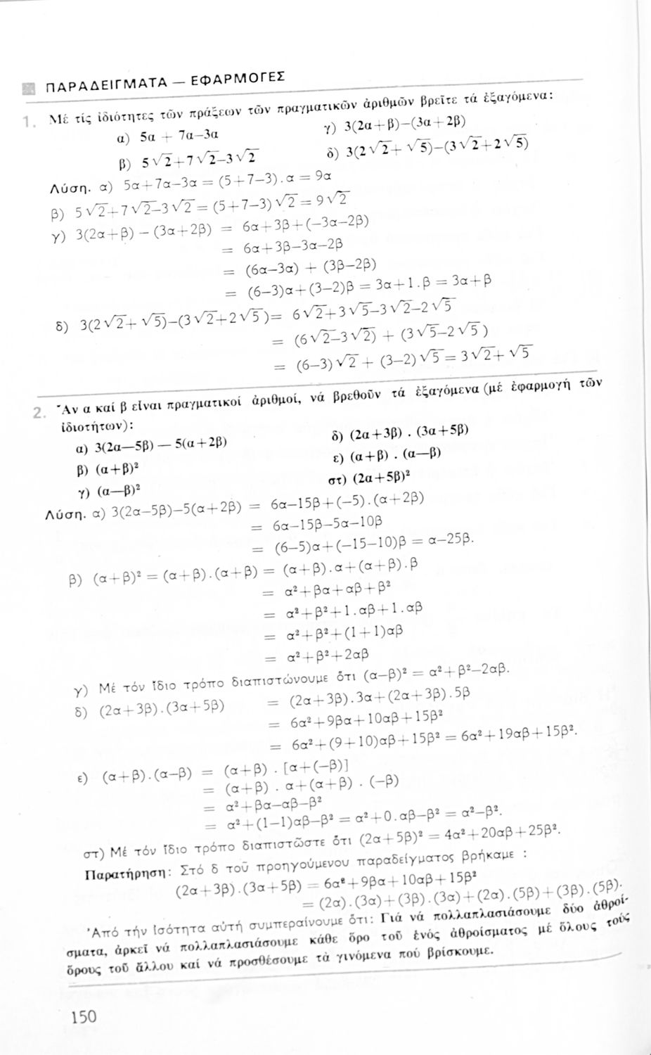 Σχολικό εγχειρίδιο Μαθηματικών Β΄ Γυμνασίου που περιλαμβάνει Άλγεβρα, Γεωμετρία και Τριγωνομετρία.