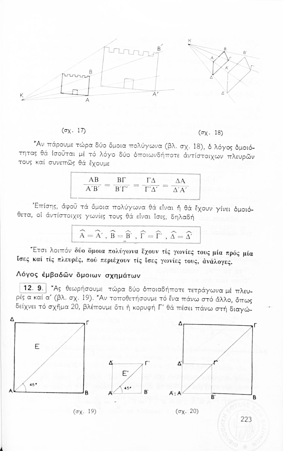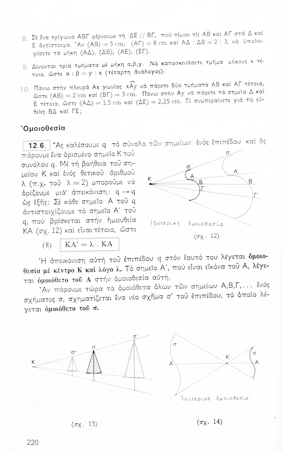 Σχολικό εγχειρίδιο Γεωμετρίας για την Α΄ και Β΄ Γυμνασίου που περιλαμβάνει θεωρία και ασκήσεις και είναι χωρισμένο σε Επιπεδομετρία και Στερεομετρία.