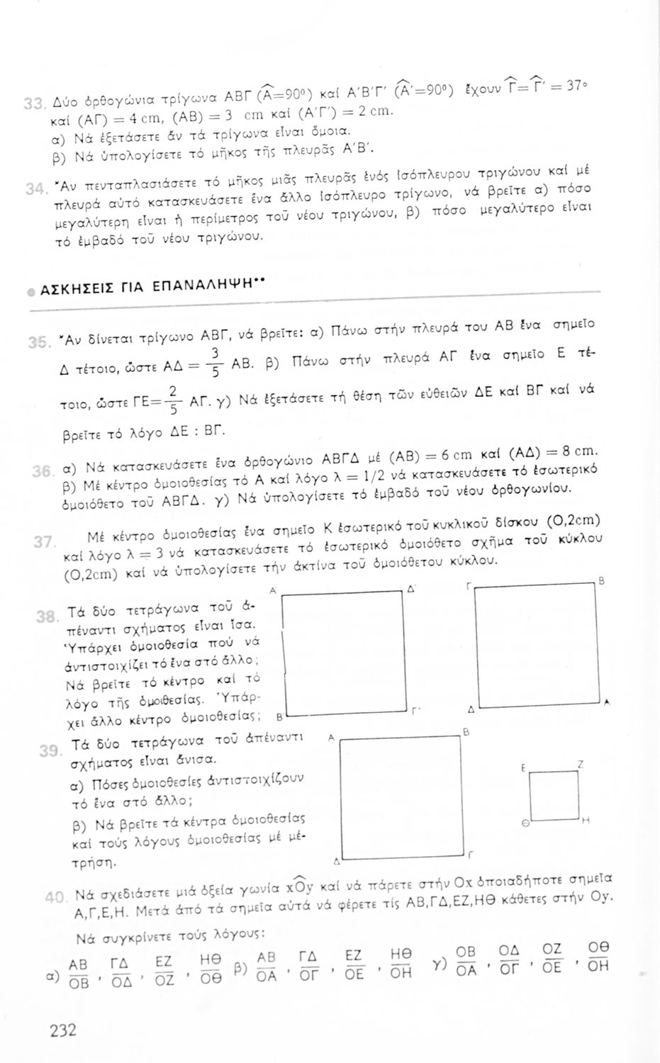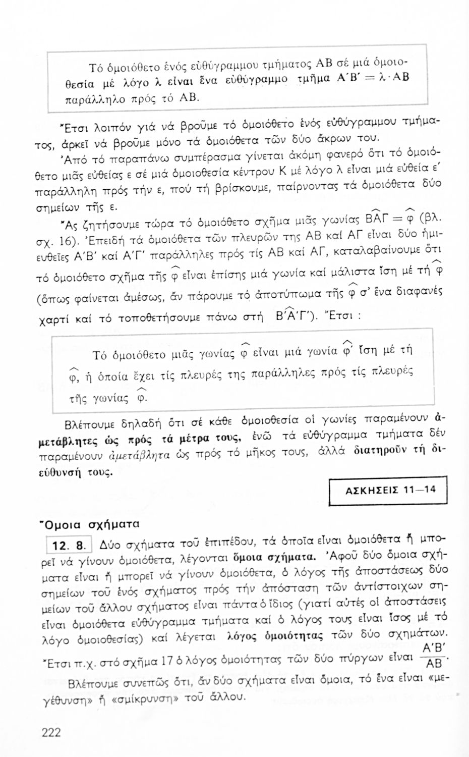 Σχολικό εγχειρίδιο Γεωμετρίας για την Α΄ και Β΄ Γυμνασίου χωρισμένο σε Επιπεδομετρία και Στερεομετρία που περιέχει θεωρία και ασκήσεις.