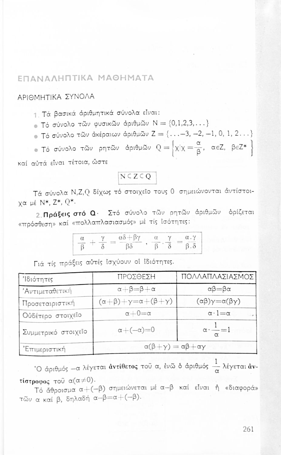 Σχολικό εγχειρίδιο Αριθμητικής για τις Α΄, Β΄, Γ΄ Γυμνασίου που είναι χωρισμένο σε ορισμούς και ασκήσεις και εστιάζει στις ιδιότητες των αριθμητικών πράξεων, τα κλάσματα και την τετραγωνική ρίζα.