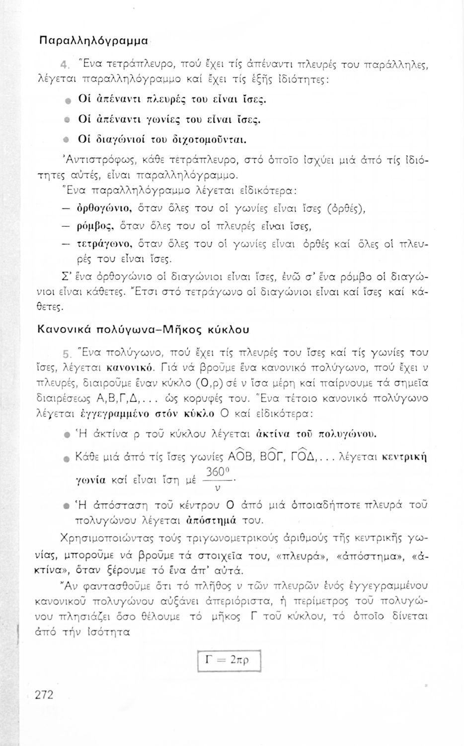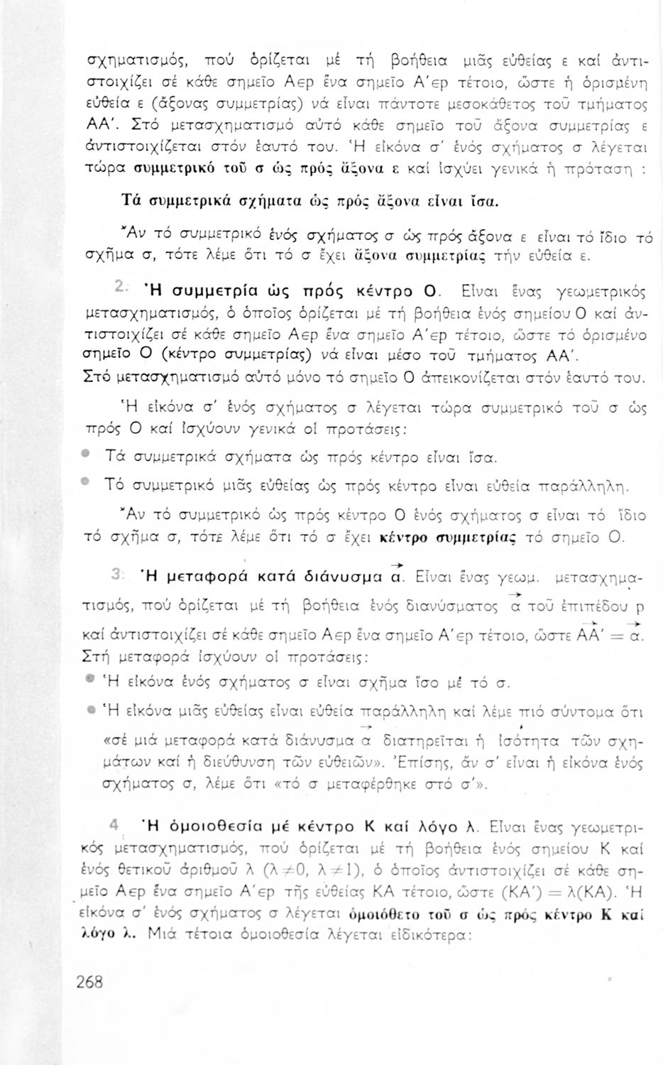 Σχολικό εγχειρίδιο Γεωμετρίας για τις Α΄, Β΄, Γ΄ Γυμνασίου που είναι χωρισμένο σε Επιπεδομετρία και Στερεομετρία και περιλαμβάνει θεωρία και ασκήσεις.