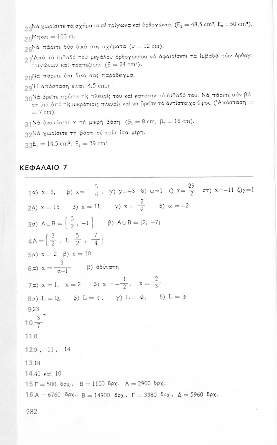 Σχολικό εγχειρίδιο Γεωμετρίας για την Α΄ και Β΄ Γυμνασίου που περιλαμβάνει θεωρία και ασκήσεις και είναι χωρισμένο σε Επιπεδομετρία και Στερεομετρία.