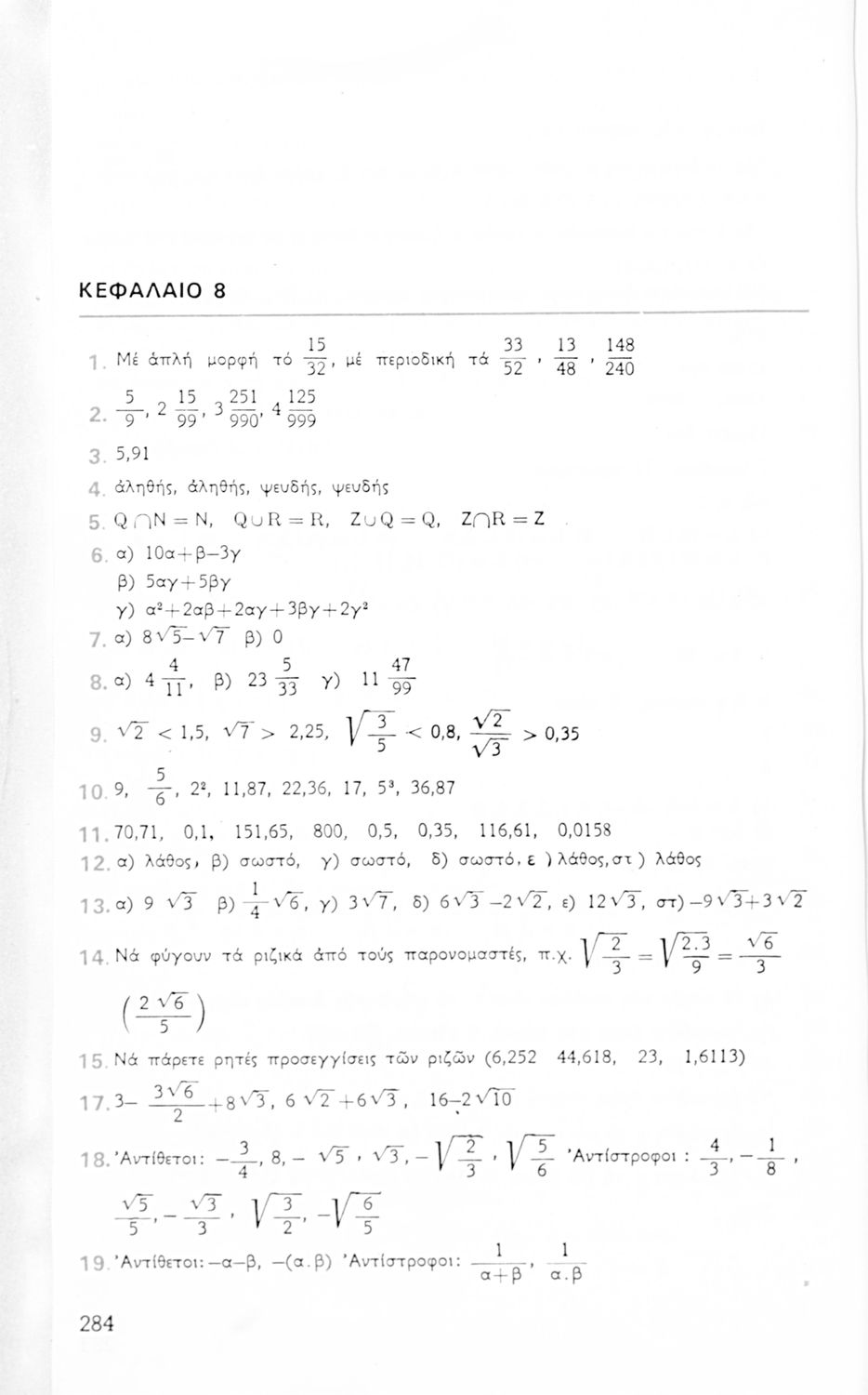 Σχολικό εγχειρίδιο Άλγεβρας Γυμνασίου που περιλαμβάνει θεωρία, ασκήσεις και στοιχεία λογιστικής.