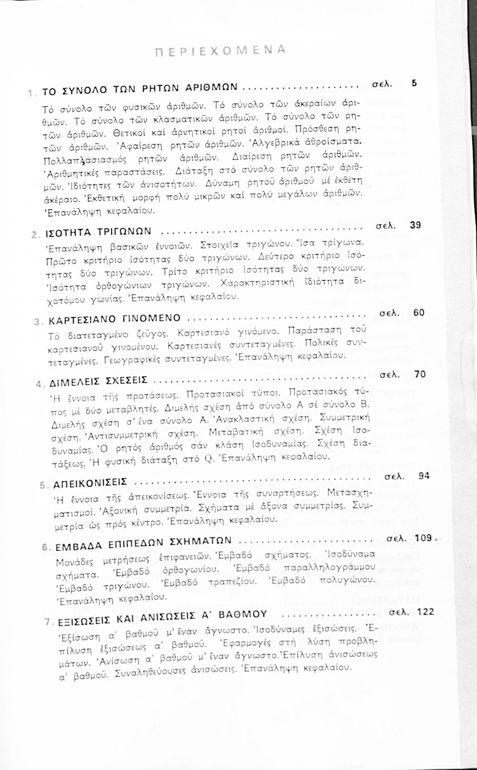 Σχολικό εγχειρίδιο Άλγεβρας Γυμνασίου που περιέχει θεωρία και ασκήσεις. Ο συγγραφέας ήταν υφηγητής στο Εθνικό Πανεπιστήμιο.
