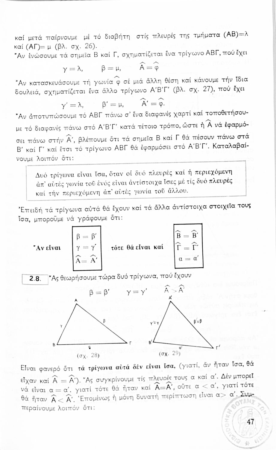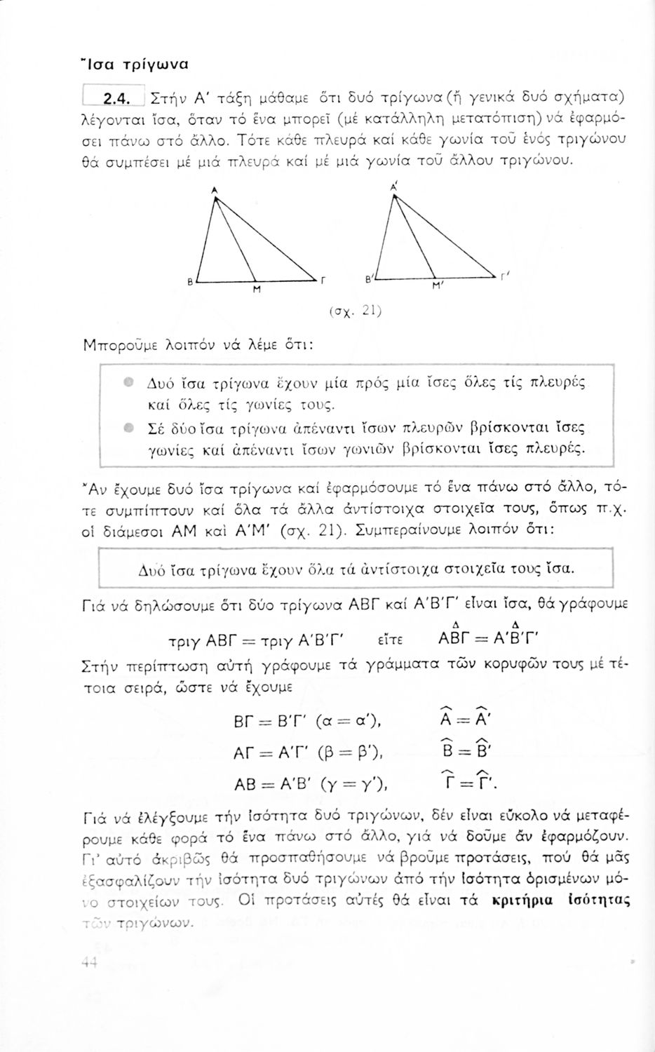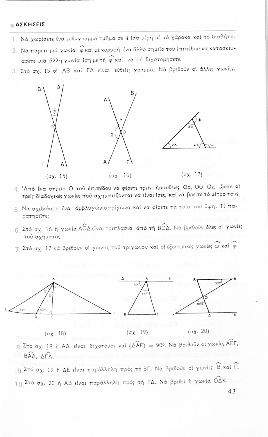 Σχολικό εγχειρίδιο Γεωμετρίας για την Α΄ και Β΄ Γυμνασίου χωρισμένο σε Επιπεδομετρία και Στερεομετρία που περιέχει θεωρία και ασκήσεις.