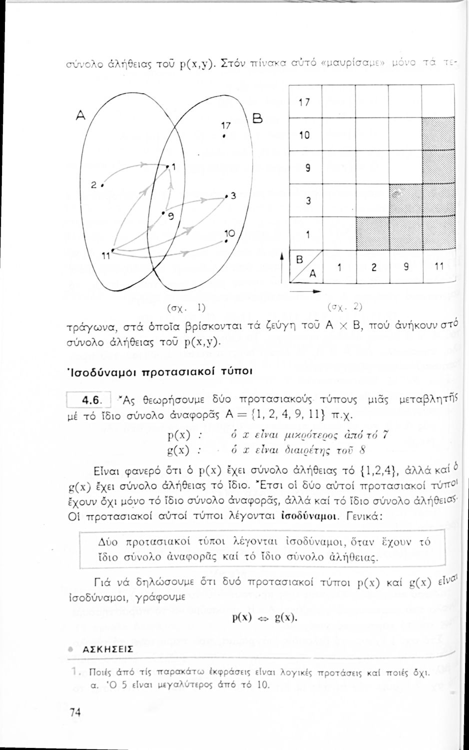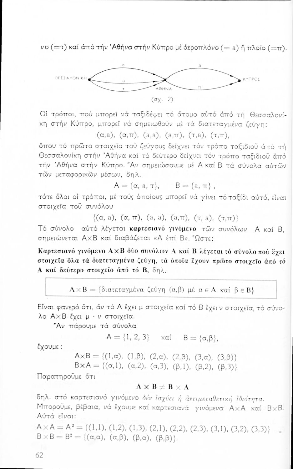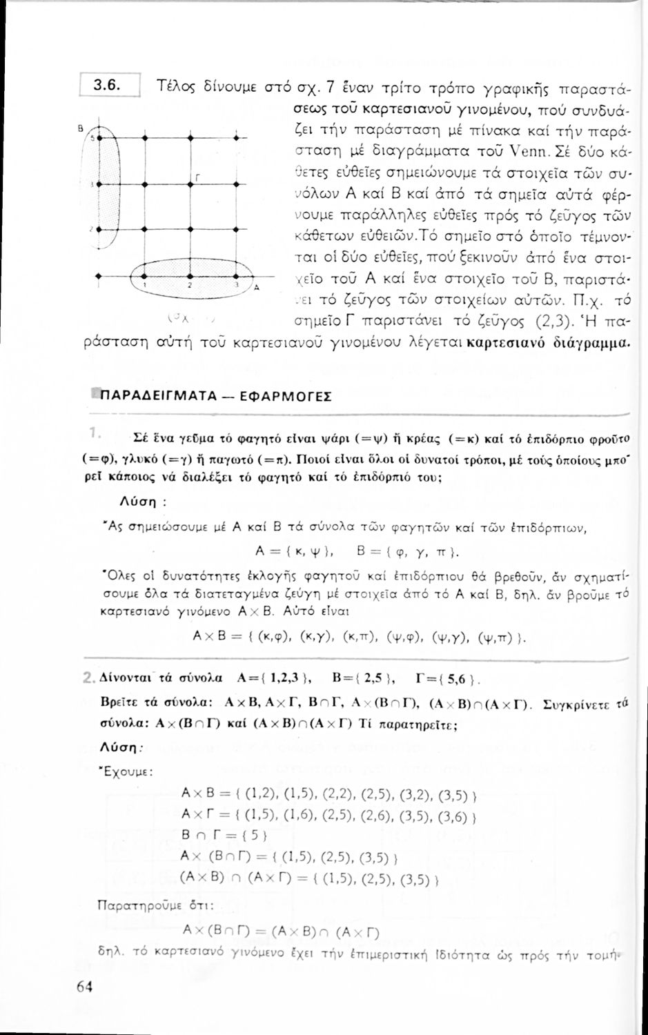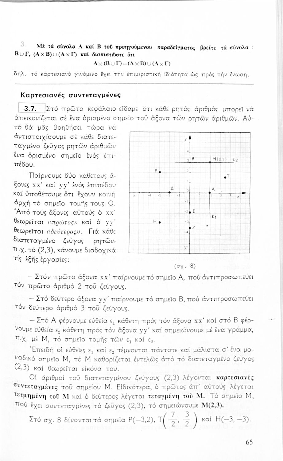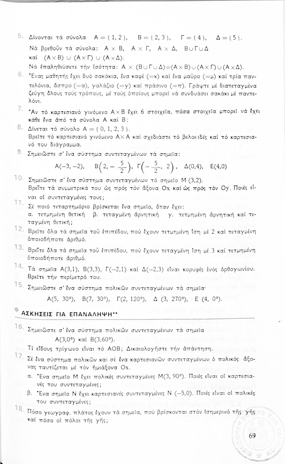 Σχολικό Εγχειρίδιο Μαθηματικών Β' Γυμνασίου που περιλαμβάνει αριθμητική με έμφαση στα σύνολα, τις μεθόδους υπολογισμού τόκων και επιτοκίων, και την μέθοδο των τριών, και γεωμετρία με έμφαση στα γεωμετρικά ...