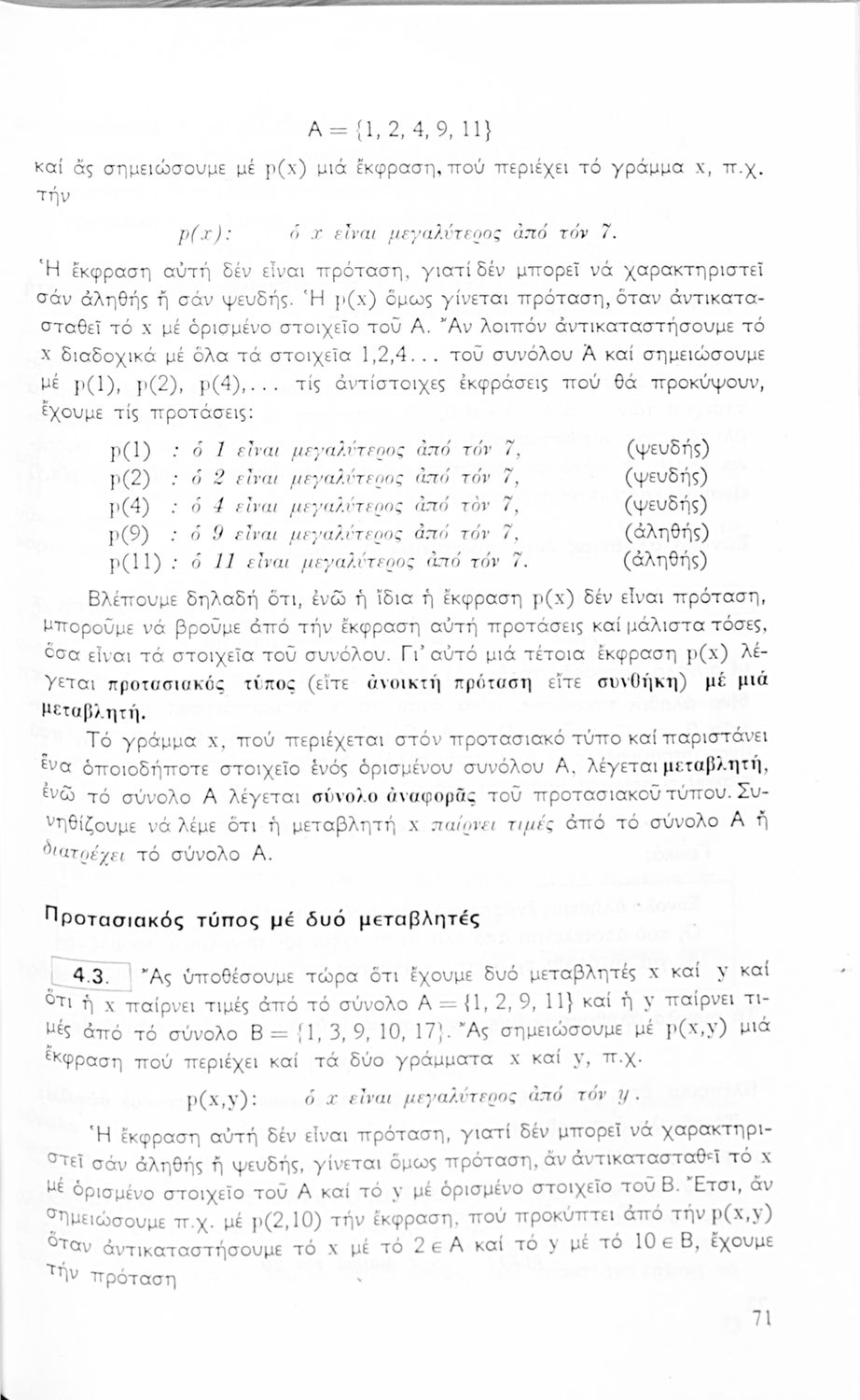 Σχολικό εγχειρίδιο Άλγεβρας Γυμνασίου που περιέχει θεωρία και ασκήσεις. Ο συγγραφέας ήταν υφηγητής στο Εθνικό Πανεπιστήμιο.