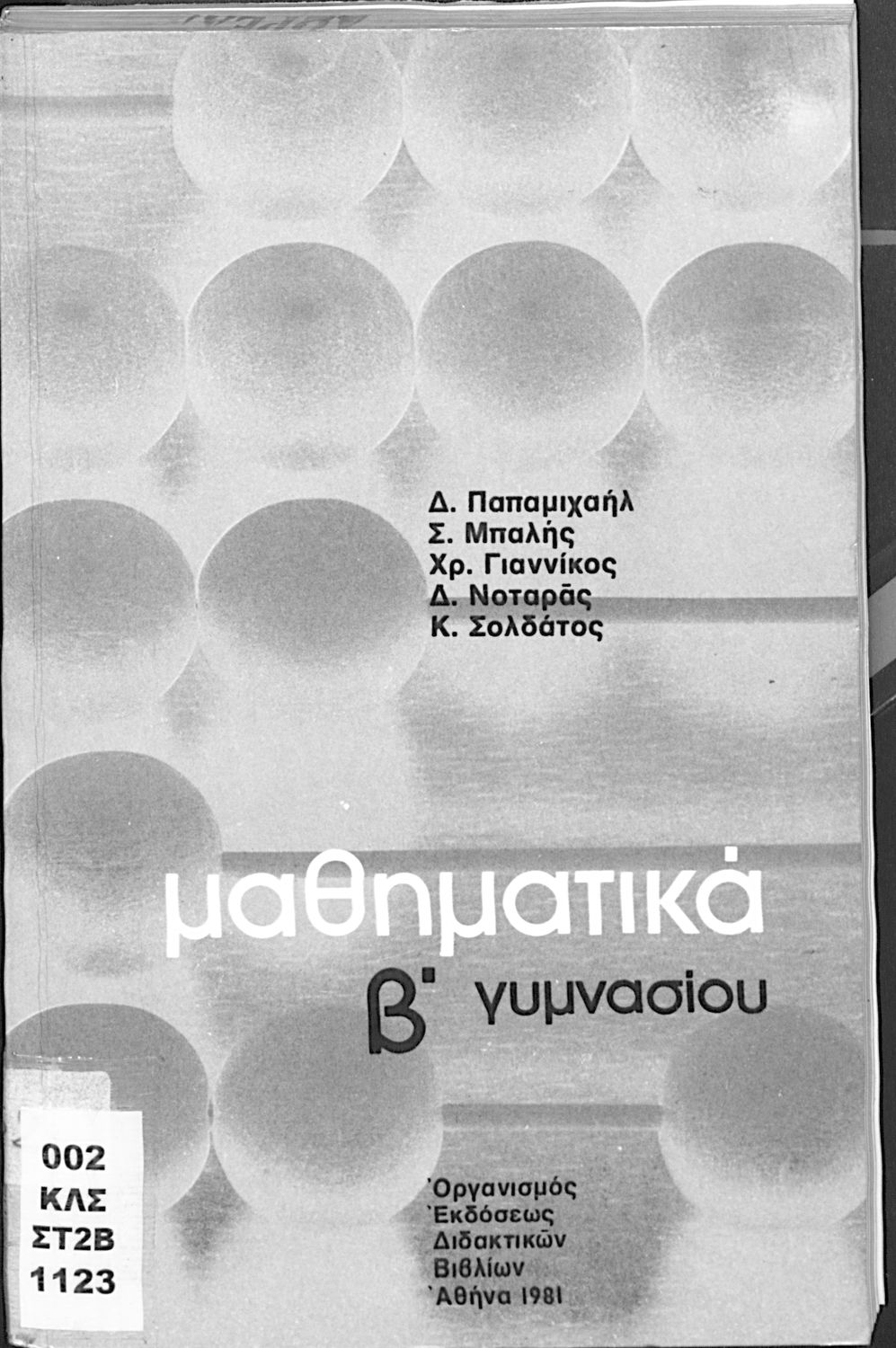 Σχολικό εγχειρίδιο Μαθηματικών Β΄ Γυμνασίου που περιλαμβάνει Άλγεβρα, Γεωμετρία και Τριγωνομετρία.