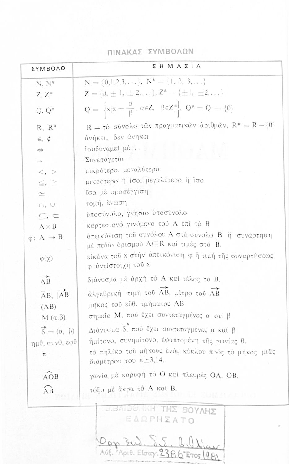 LDR 01003 2200205 4500 035 ## _a03-20557221 040 ## _aΒιβλιοθήκη της Βουλής των Ελλήνων 041 ## _ael 100 ## _aΔ. Παπαμιχαήλ _aΣ. Μπαλής _aΧρ. Γιαννίκος _aΔ. Νοταράς _aΚ. Σολδάτος 110 ## _a0020557221 245 0# _aΜαθηματικά Β΄ Γυμνασίου 250 ## _a4η Έκδοση 260 ## _aΑθήνα _bΟργανισμός Εκδόσεως Διδακτικών Βιβλίων _c1981 300 ## _a298 520 ## _aΣχολικό εγχειρίδιο Μαθηματικών Β΄ Γυμνασίου που περιλαμβάνει Άλγεβρα, Γεωμετρία και Τριγωνομετρία. 521 ## _aΒ' Γυμνασίου 522 ## _aΕλλάδα 546 ## _aΔημοτική 583 ## _a3591/14-4-1981 _c1981 650 #4 _aΔιανύσματα _aΕξισώσεις _aΚανονικά πολύγωνα _aΠυθαγόρειο θεώρημα