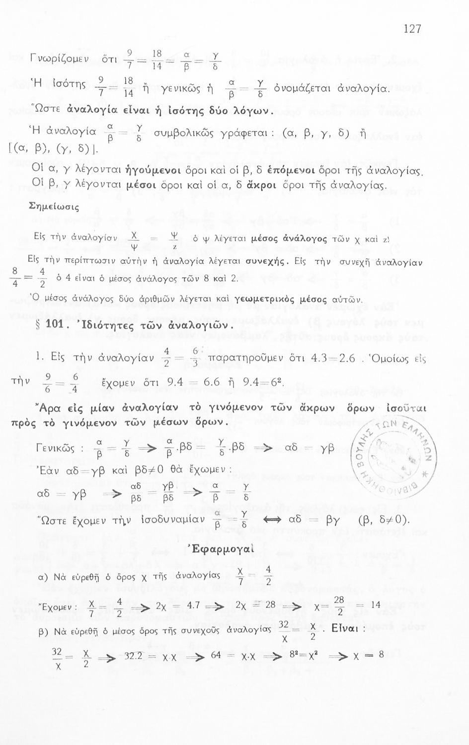 Σχολικό Εγχειρίδιο Μαθηματικών Β' Γυμνασίου που περιλαμβάνει αριθμητική με έμφαση στα σύνολα, τις μεθόδους υπολογισμού τόκων και επιτοκίων, και την μέθοδο των τριών, και γεωμετρία με έμφαση στα γεωμετρικά ...