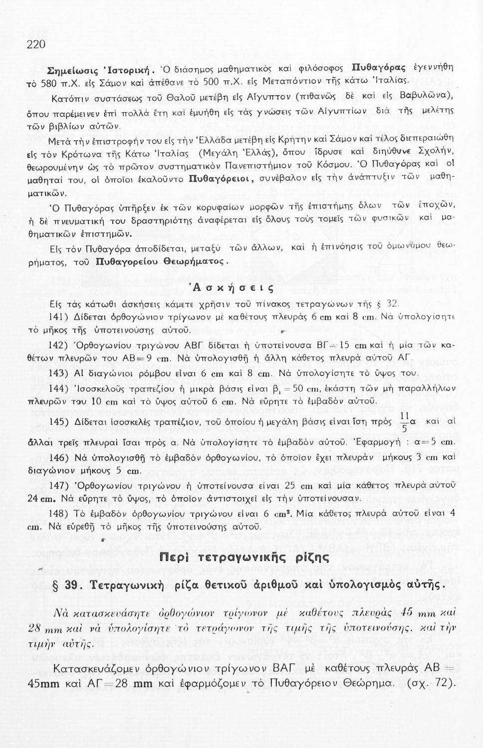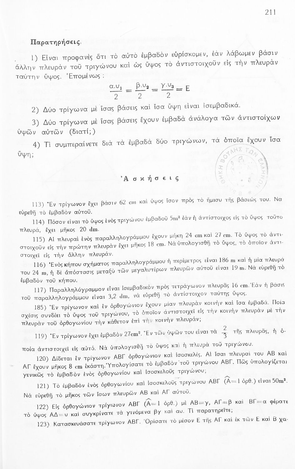 Σχολικό εγχειρίδιο Γεωμετρίας Γυμνασίου που περιλαμβάνει θεωρία και ασκήσεις και είναι χωρισμένο σε Επιπεδομετρία και Στερεομετρία.