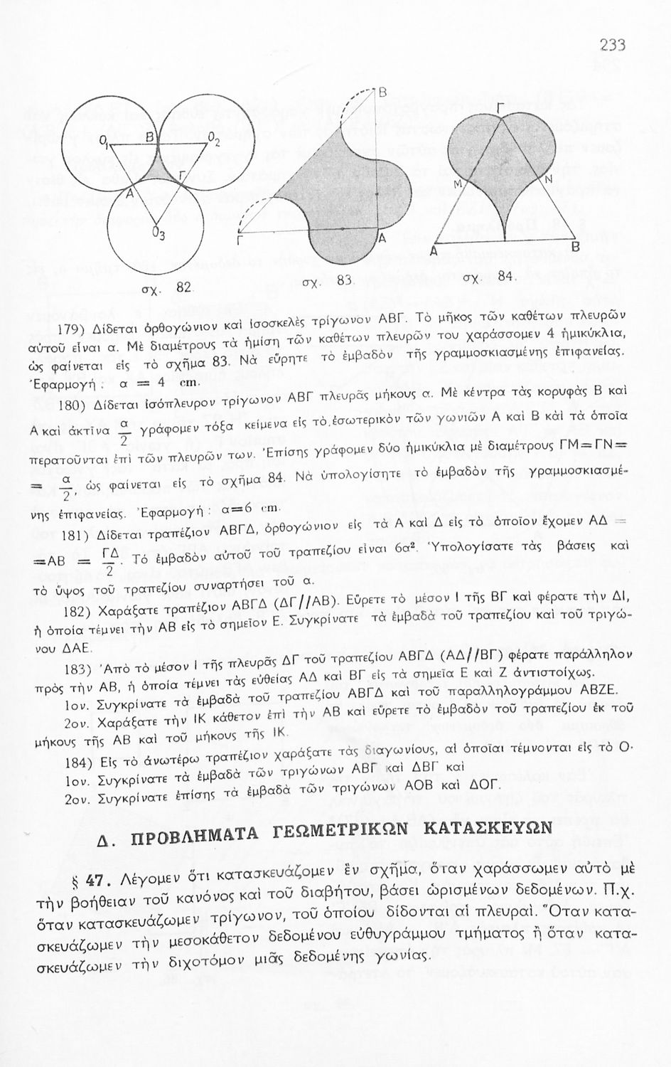 Σχολικό εγχειρίδιο Γεωμετρίας Γυμνασίου που περιλαμβάνει θεωρία και ασκήσεις και είναι χωρισμένο σε Επιπεδομετρία και Στερεομετρία.