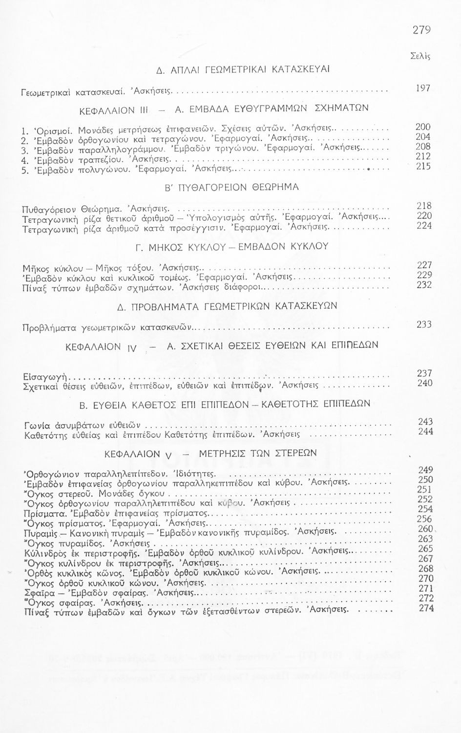 Σχολικό εγχειρίδιο Γεωμετρίας Γυμνασίου που περιλαμβάνει θεωρία και ασκήσεις και είναι χωρισμένο σε Επιπεδομετρία και Στερεομετρία.