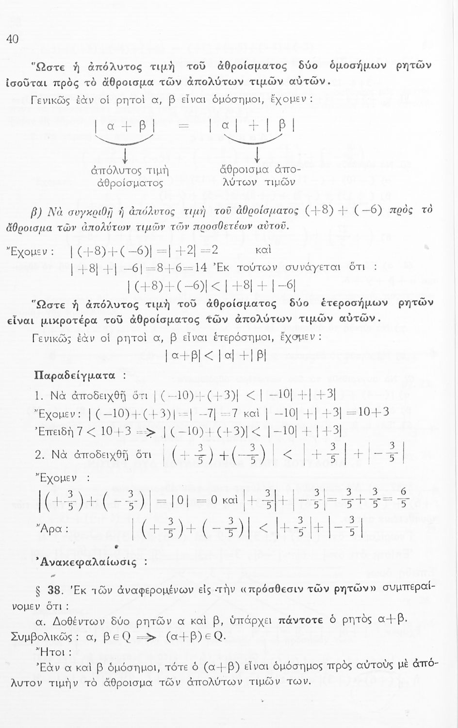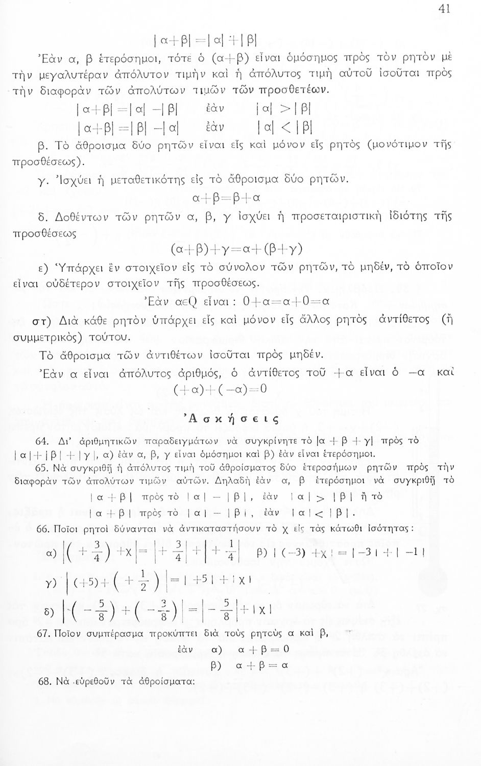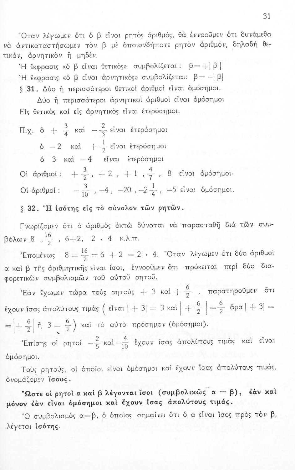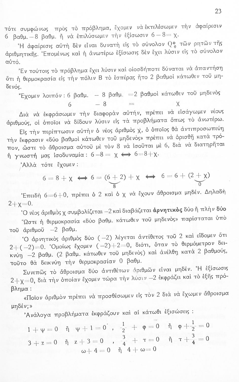 Βαθμίδα εκπαίδευσης: Δευτεροβάθμια Τάξη: Β' Γυμνασίου Μάθημα: Μαθηματικά Γλώσσα: Απλή καθαρεύουσα Παρουσίαση περιεχομένου: Σχολικό Εγχειρίδιο Μαθηματικών Β' Γυμνασίου που περιλαμβάνει αριθμητική με έμφαση στα σύνολα, τις μεθόδους υπολογισμού τόκων και επιτοκίων, και την μέθοδο των τριών, και γεωμετρία με έμφαση στα γεωμετρικά σχήματα και σώματα και τρόπους υπολογισμού τους. |