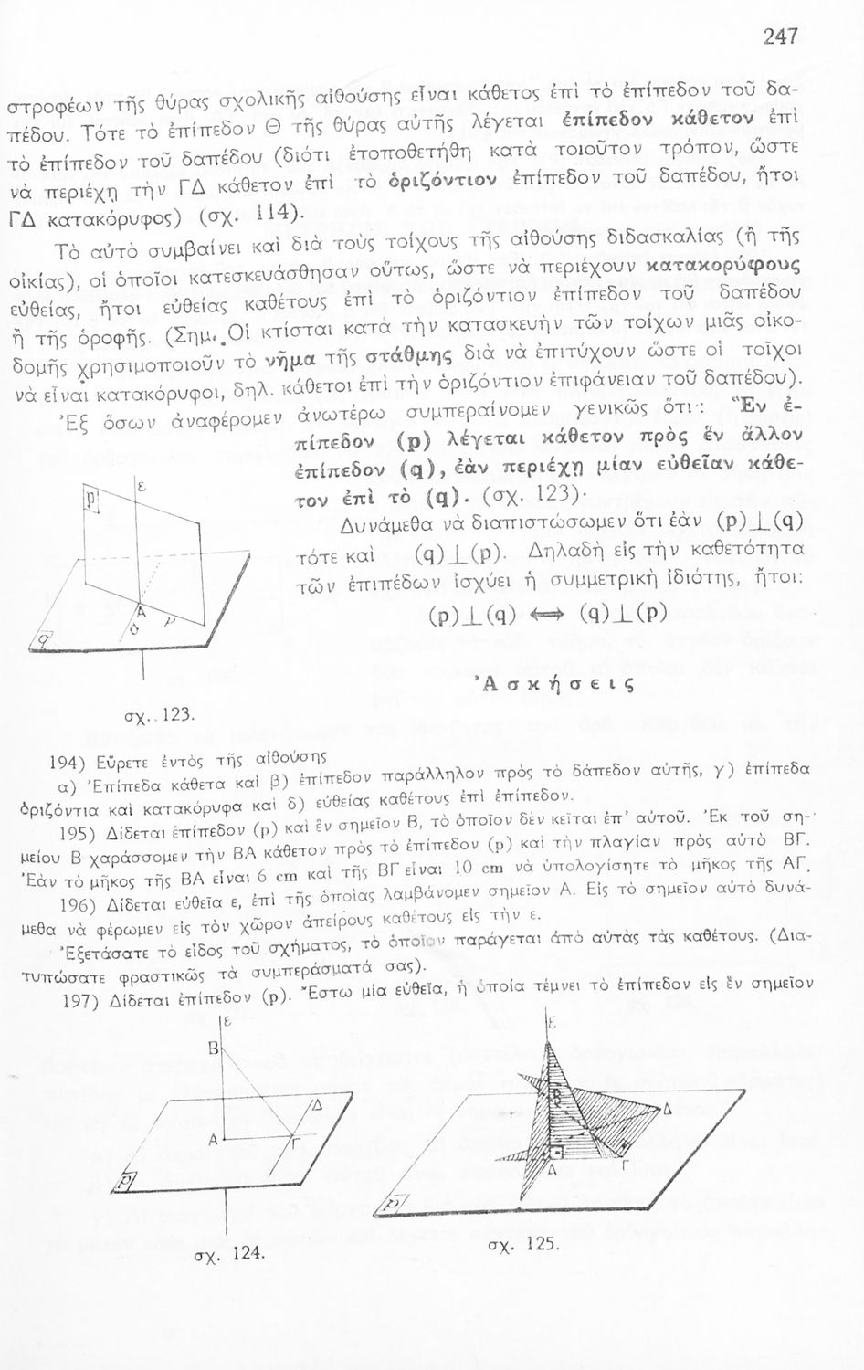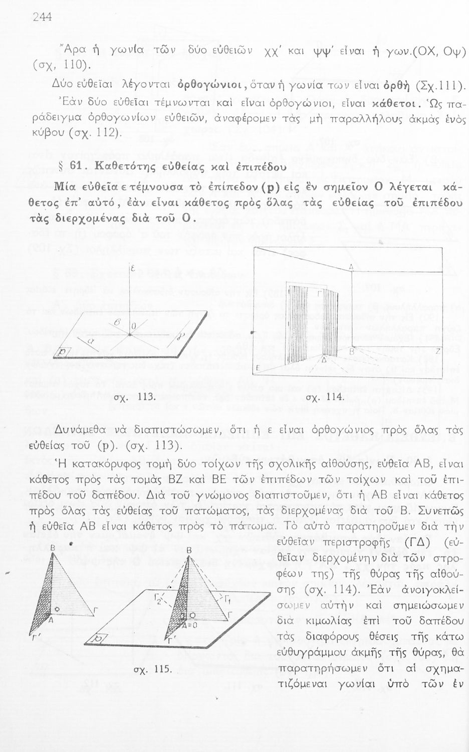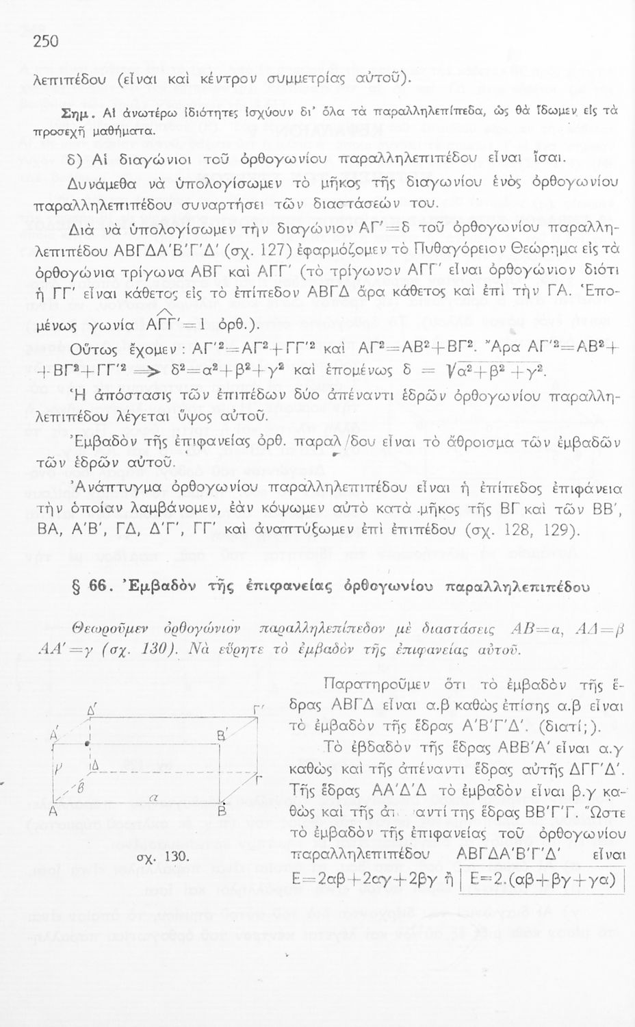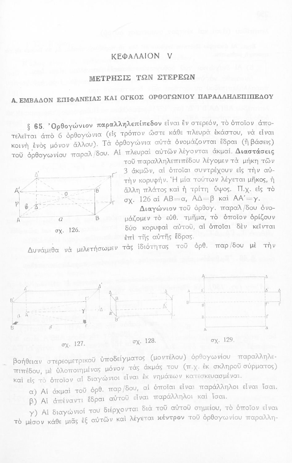 Σχολικό εγχειρίδιο Γεωμετρίας για την Α΄ και Β΄ Γυμνασίου χωρισμένο σε Επιπεδομετρία και Στερεομετρία που περιέχει θεωρία και ασκήσεις.