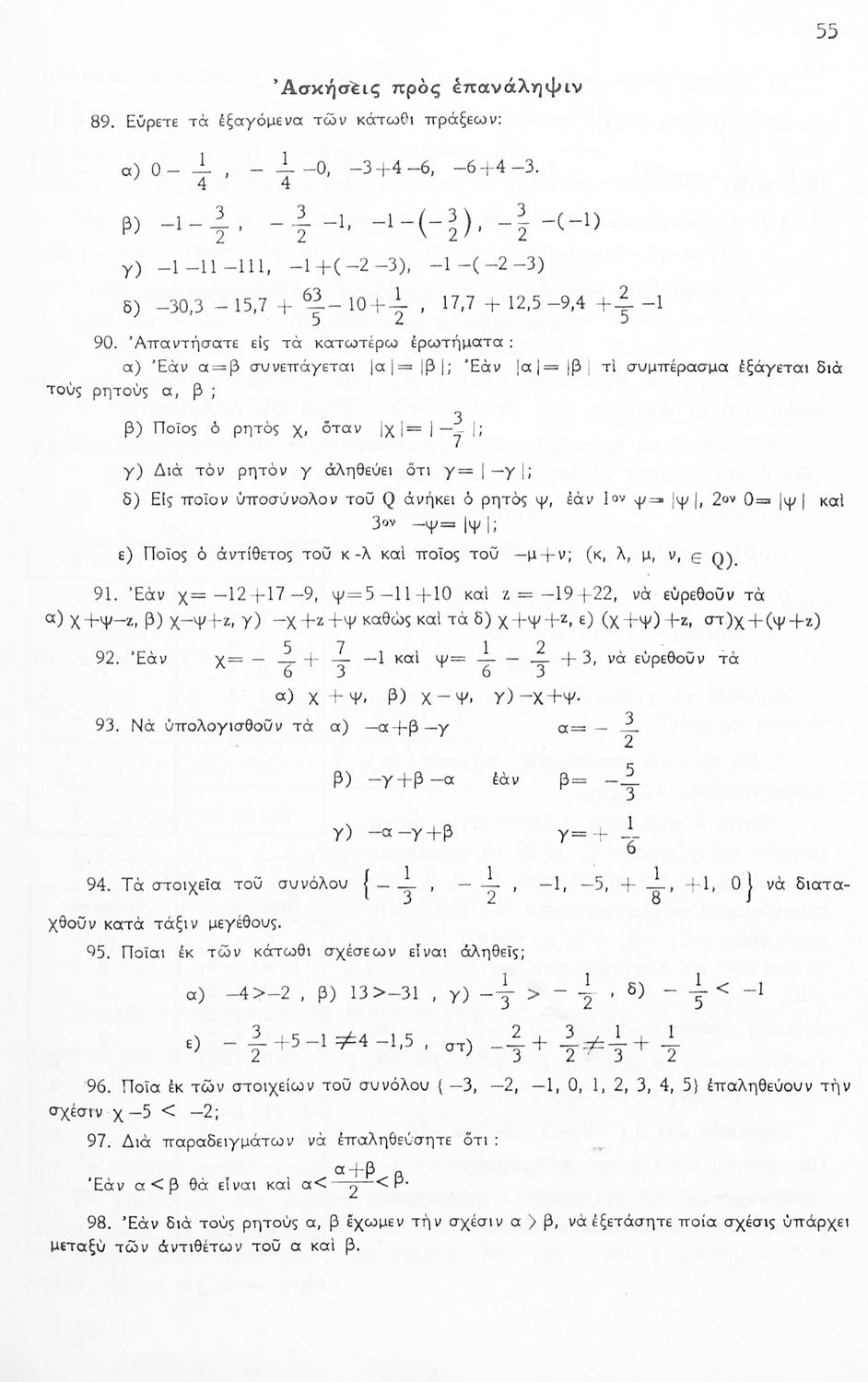 Σχολικό εγχειρίδιο Αριθμητικής για τις Α΄, Β΄, Γ΄ Γυμνασίου που είναι χωρισμένο σε ορισμούς και ασκήσεις και εστιάζει στις ιδιότητες των αριθμητικών πράξεων, τα κλάσματα και την τετραγωνική ρίζα.