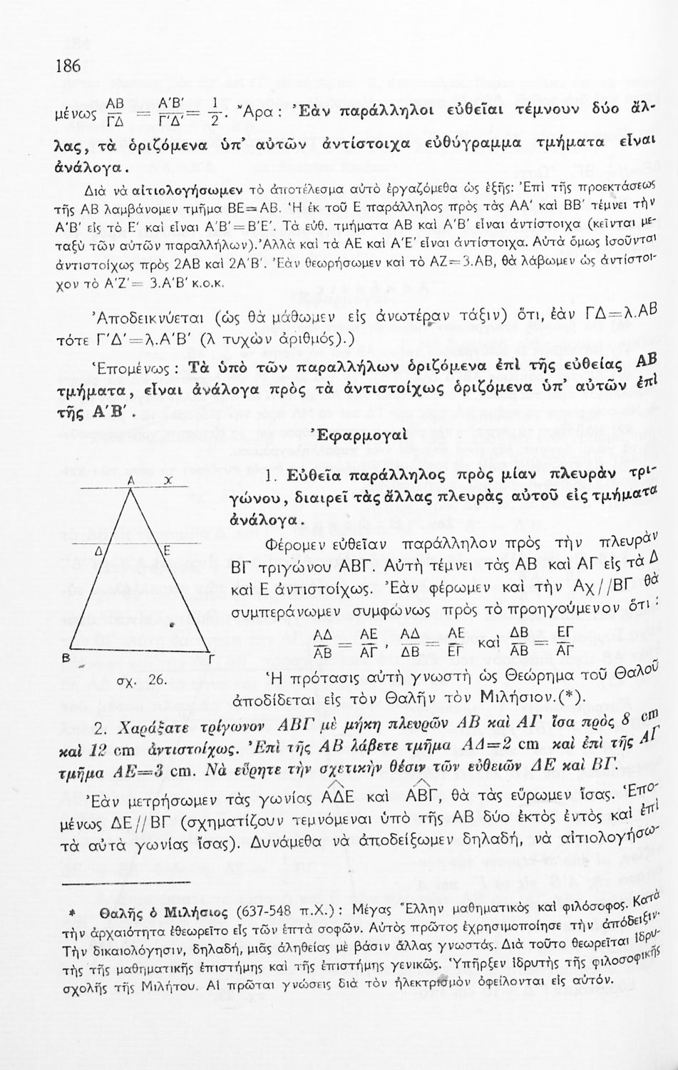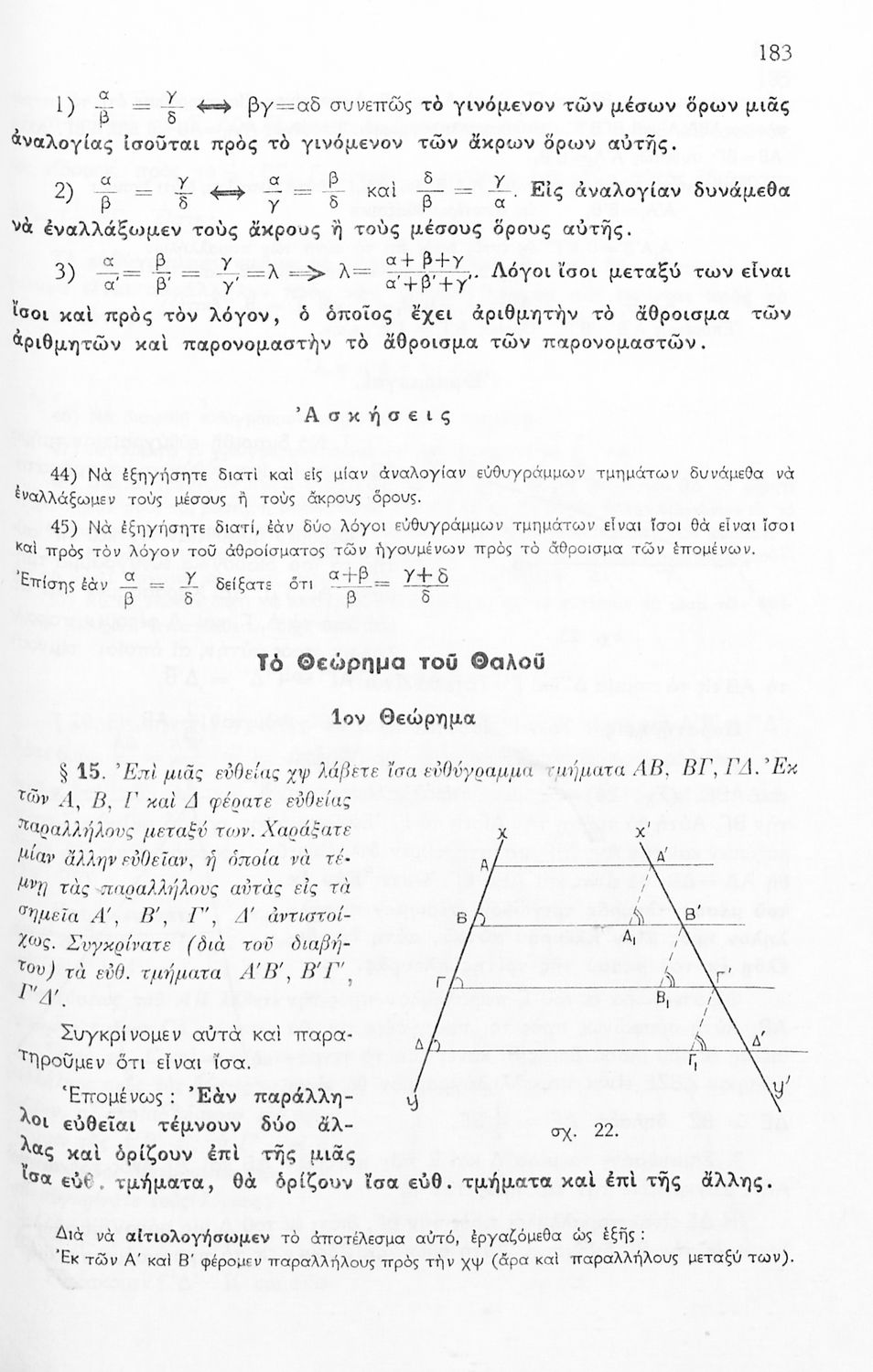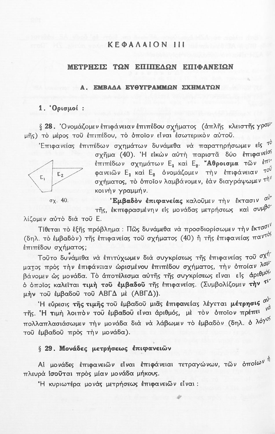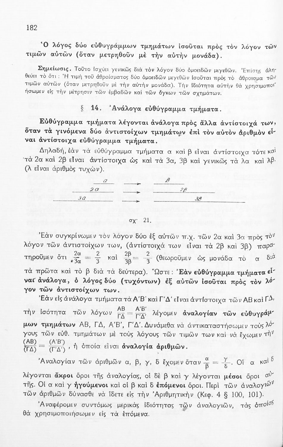 Βαθμίδα εκπαίδευσης: Δευτεροβάθμια Τάξη: Β' Γυμνασίου Μάθημα: Μαθηματικά Γλώσσα: Καθαρεύουσα Παρουσίαση περιεχομένου: Σχολικό Εγχειρίδιο Μαθηματικών Β' Γυμνασίου που περιλαμβάνει αριθμητική με έμφαση στα σύνολα, τις μεθόδους υπολογισμού τόκων και επιτοκίων, και την μέθοδο των τριών, και γεωμετρία με έμφαση στα γεωμετρικά σχήματα και σώματα και τρόπους υπολογισμού τους. |