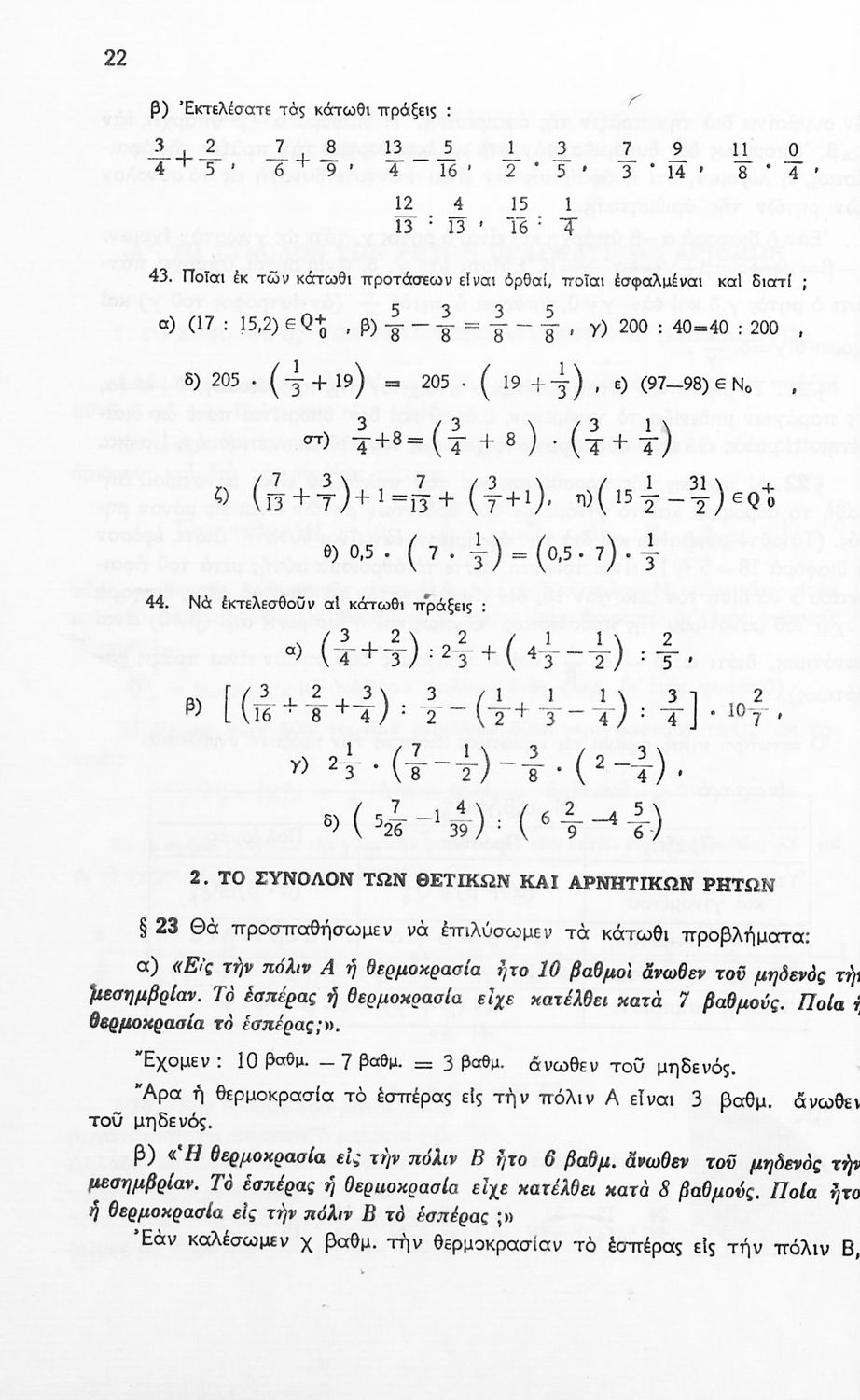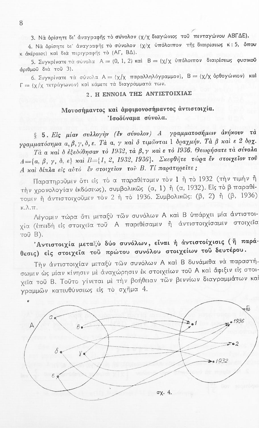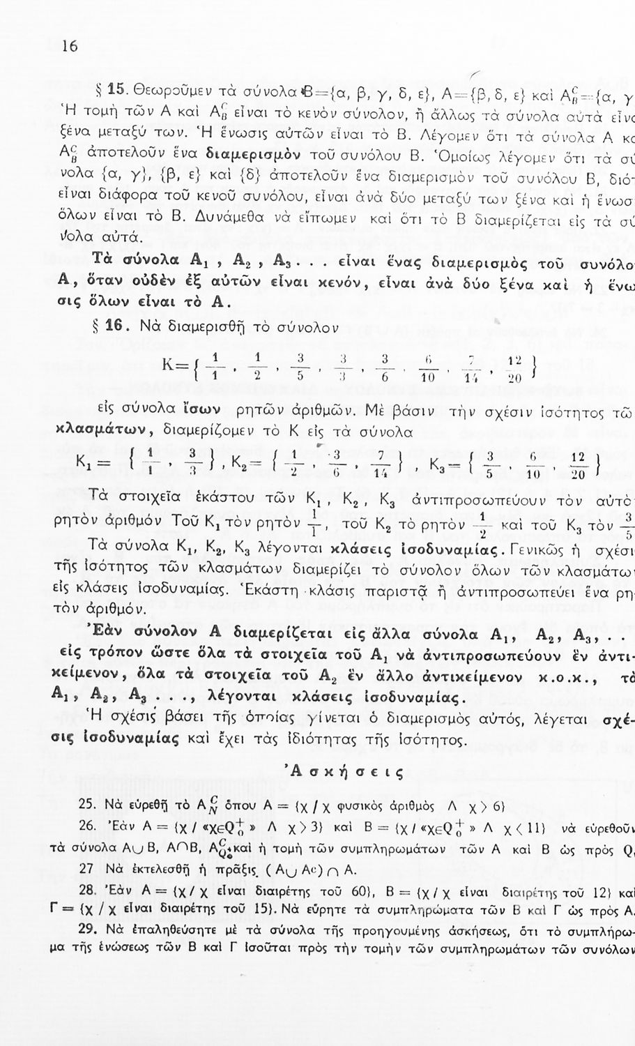 Βαθμίδα εκπαίδευσης: Δευτεροβάθμια Τάξη: Β' Γυμνασίου Μάθημα: Μαθηματικά Γλώσσα: Καθαρεύουσα Παρουσίαση περιεχομένου: Σχολικό Εγχειρίδιο Μαθηματικών Β' Γυμνασίου που περιλαμβάνει αριθμητική με έμφαση στα σύνολα, τις μεθόδους υπολογισμού τόκων και επιτοκίων, και την μέθοδο των τριών, και γεωμετρία με έμφαση στα γεωμετρικά σχήματα και σώματα και τρόπους υπολογισμού τους. |