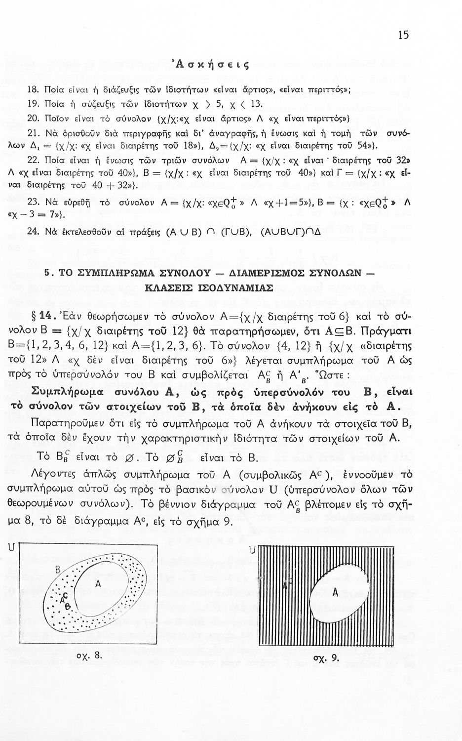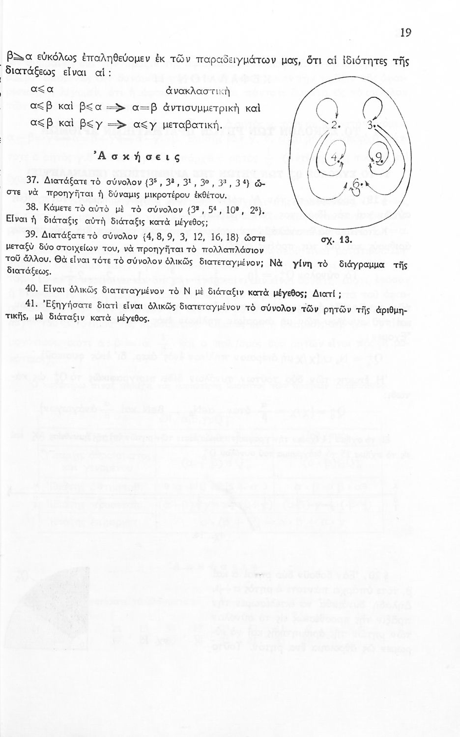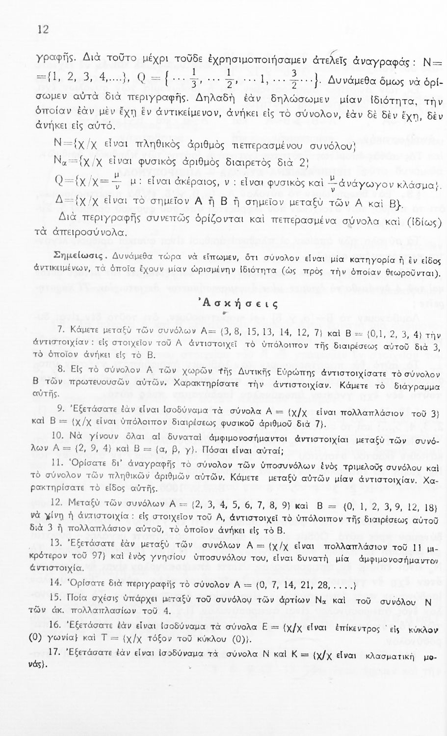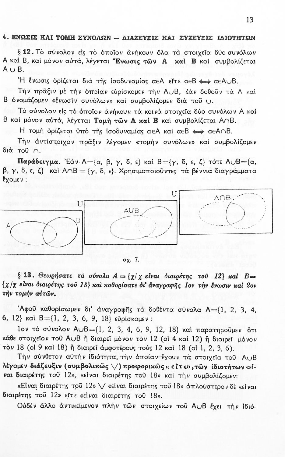 Βαθμίδα εκπαίδευσης: Δευτεροβάθμια Τάξη: Β' Γυμνασίου Μάθημα: Μαθηματικά Γλώσσα: Καθαρεύουσα Παρουσίαση περιεχομένου: Σχολικό Εγχειρίδιο Μαθηματικών Β' Γυμνασίου που περιλαμβάνει αριθμητική με έμφαση στα σύνολα, τις μεθόδους υπολογισμού τόκων και επιτοκίων, και την μέθοδο των τριών, και γεωμετρία με έμφαση στα γεωμετρικά σχήματα και σώματα και τρόπους υπολογισμού τους. |