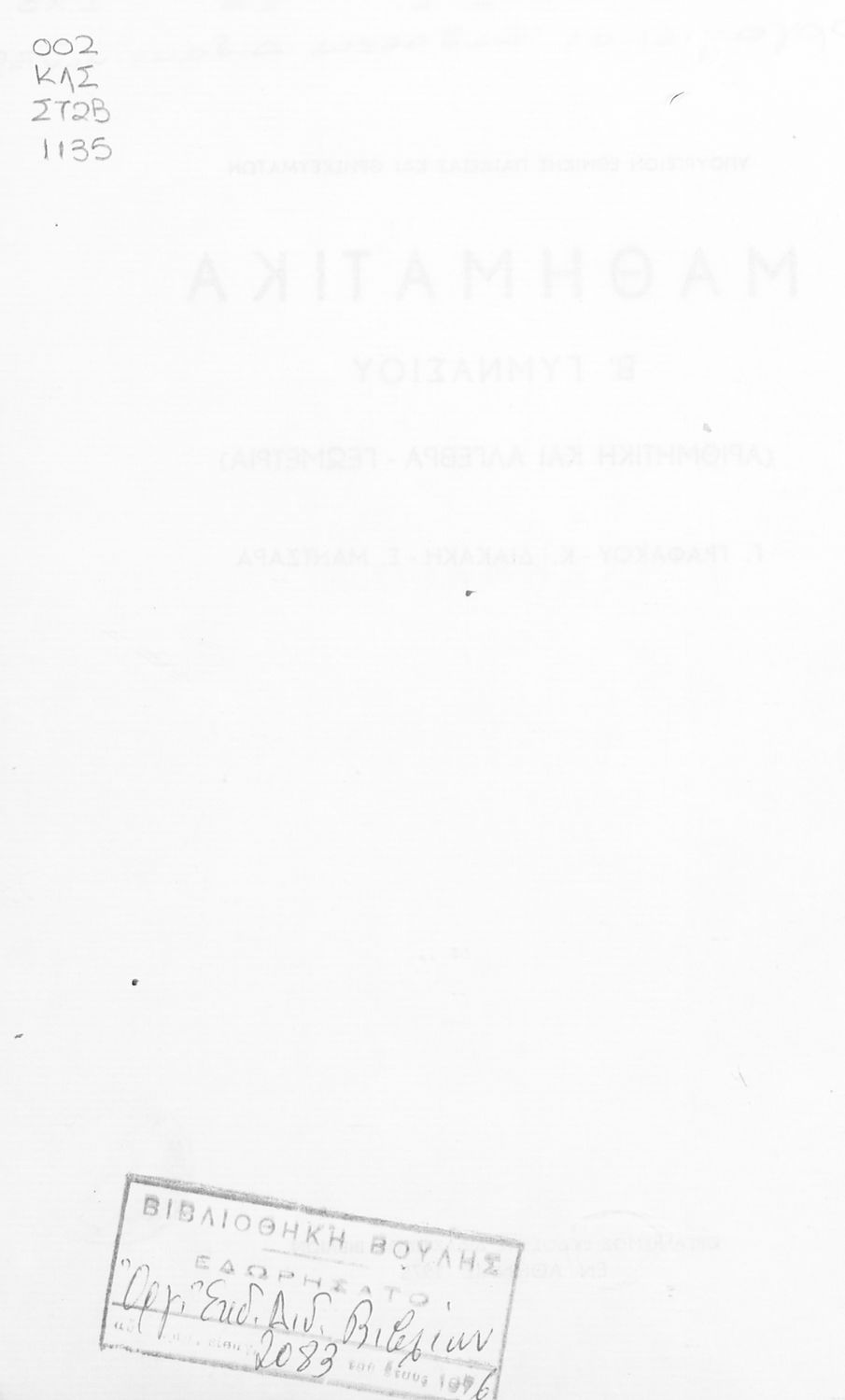 LDR 01546 2200217 4500 035 ## _a03-20557232 040 ## _aΒιβλιοθήκη της Βουλής των Ελλήνων 041 ## _ael 100 ## _aΓ. Γραφάκος _aΚ. Διακάκης _aΣ. Μαντζάρας 110 ## _a20557232 245 0# _aΜαθηματικά Β΄ Γυμνασίου (αριθμητική και άλγεβρα, γεωμετρία) 250 ## _a6η Έκδοση 260 ## _aΑθήνα _bΟργανισμός Εκδόσεως Διδακτικών Βιβλίων _c1975 300 ## _a282 _bΣχεδιαγράμματα (ασπρόμαυρα) _c23 520 ## _aΣχολικό Εγχειρίδιο Μαθηματικών Β' Γυμνασίου που περιλαμβάνει αριθμητική με έμφαση στα σύνολα, τις μεθόδους υπολογισμού τόκων και επιτοκίων, και την μέθοδο των τριών, και γεωμετρία με έμφαση στα γεωμετρικά σχήματα και σώματα και τρόπους υπολογισμού τους. 521 ## _aΒ' Γυμνασίου 522 ## _aΕλλάδα 546 ## _aΚαθαρεύουσα 563 ## _aΜαλακό Εξώφυλλο 583 ## _a2545/ 29-3-1975 _c1975 650 #4 _aΕμβαδόν _aΕξισώσεις _aΕπιτόκιο _aΚυκλικός κύλινδρος _aΜέθοδος των τριών _aΜονάδες όγκου _aΟρθογώνιο _aΠοσό _aΠυραμίδα _aΣύνολα _aΤόκος _aΥποσύνολα