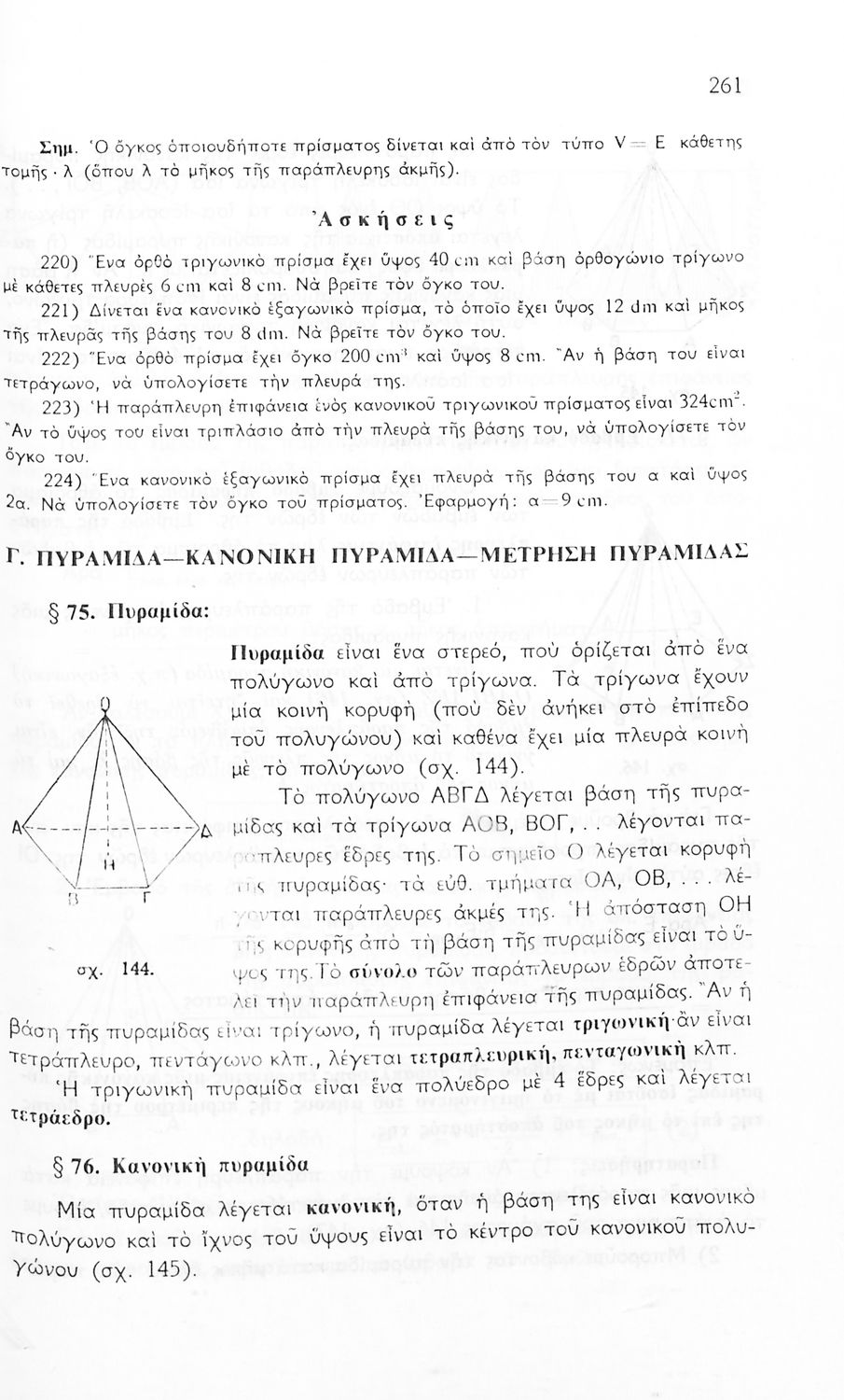 Σχολικό εγχειρίδιο Γεωμετρίας Γυμνασίου που περιλαμβάνει θεωρία και ασκήσεις και είναι χωρισμένο σε Επιπεδομετρία και Στερεομετρία.