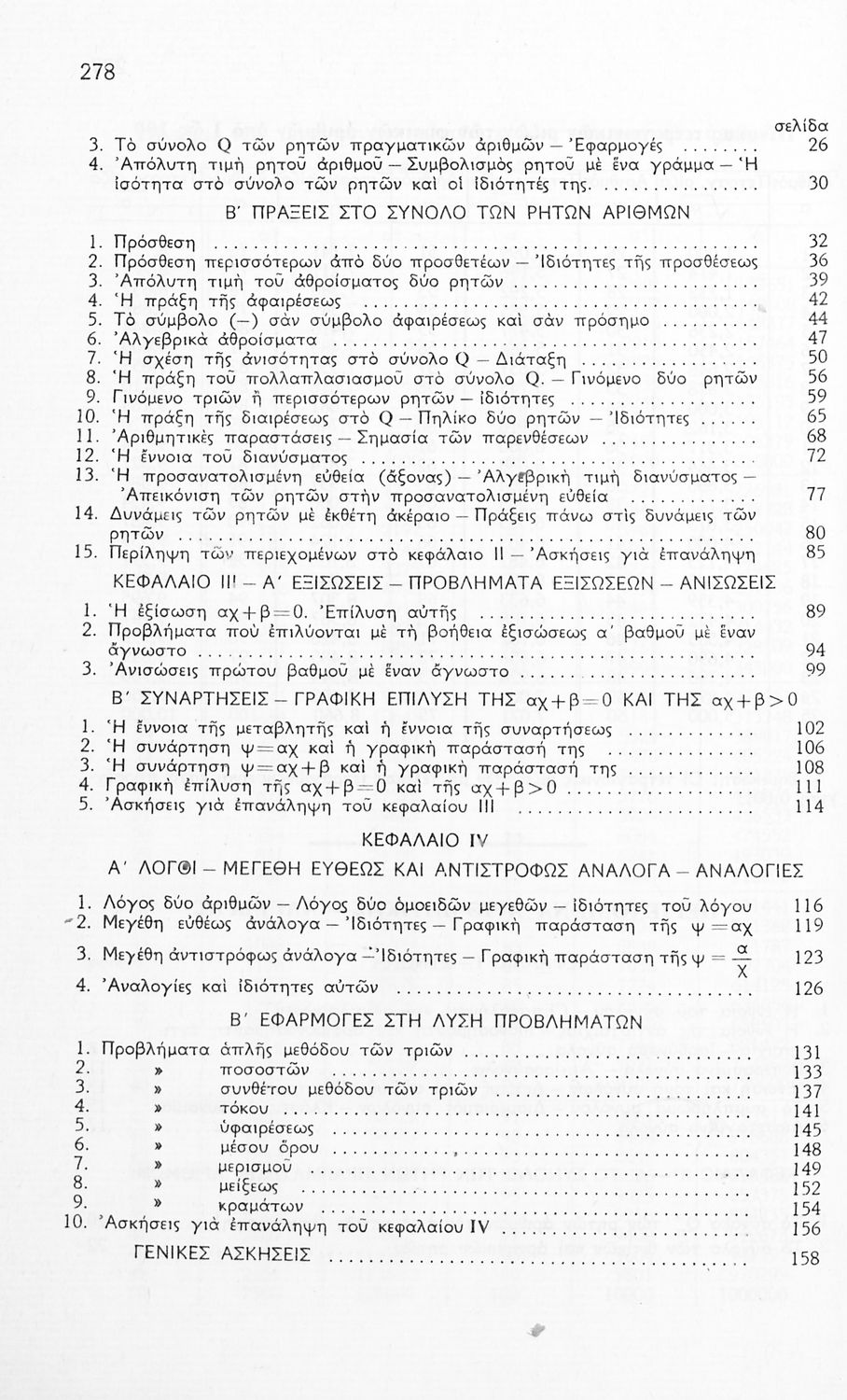 Σχολικό εγχειρίδιο Μαθηματικών Γυμνασίου που παρουσιάζει τις βασικές έννοιες της Άλγεβρας, εστιάζει τις ιδιότητες των αριθμών και περιέχει ασκήσεις εξισώσεων, λογαρίθμων και παραγώγων.
