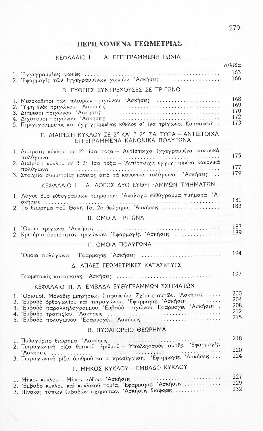 Σχολικό εγχειρίδιο Γεωμετρίας Γυμνασίου που περιλαμβάνει θεωρία και ασκήσεις και είναι χωρισμένο σε Επιπεδομετρία και Στερεομετρία.