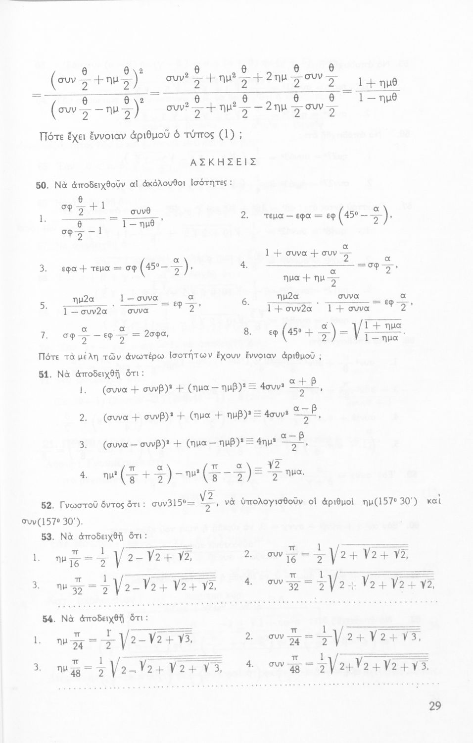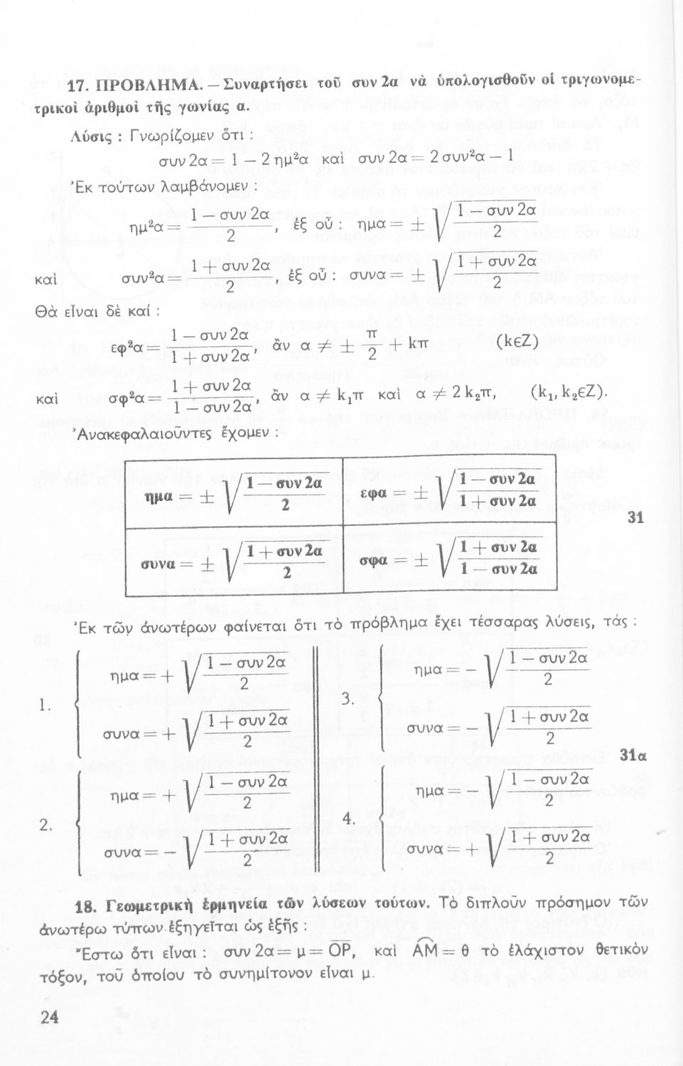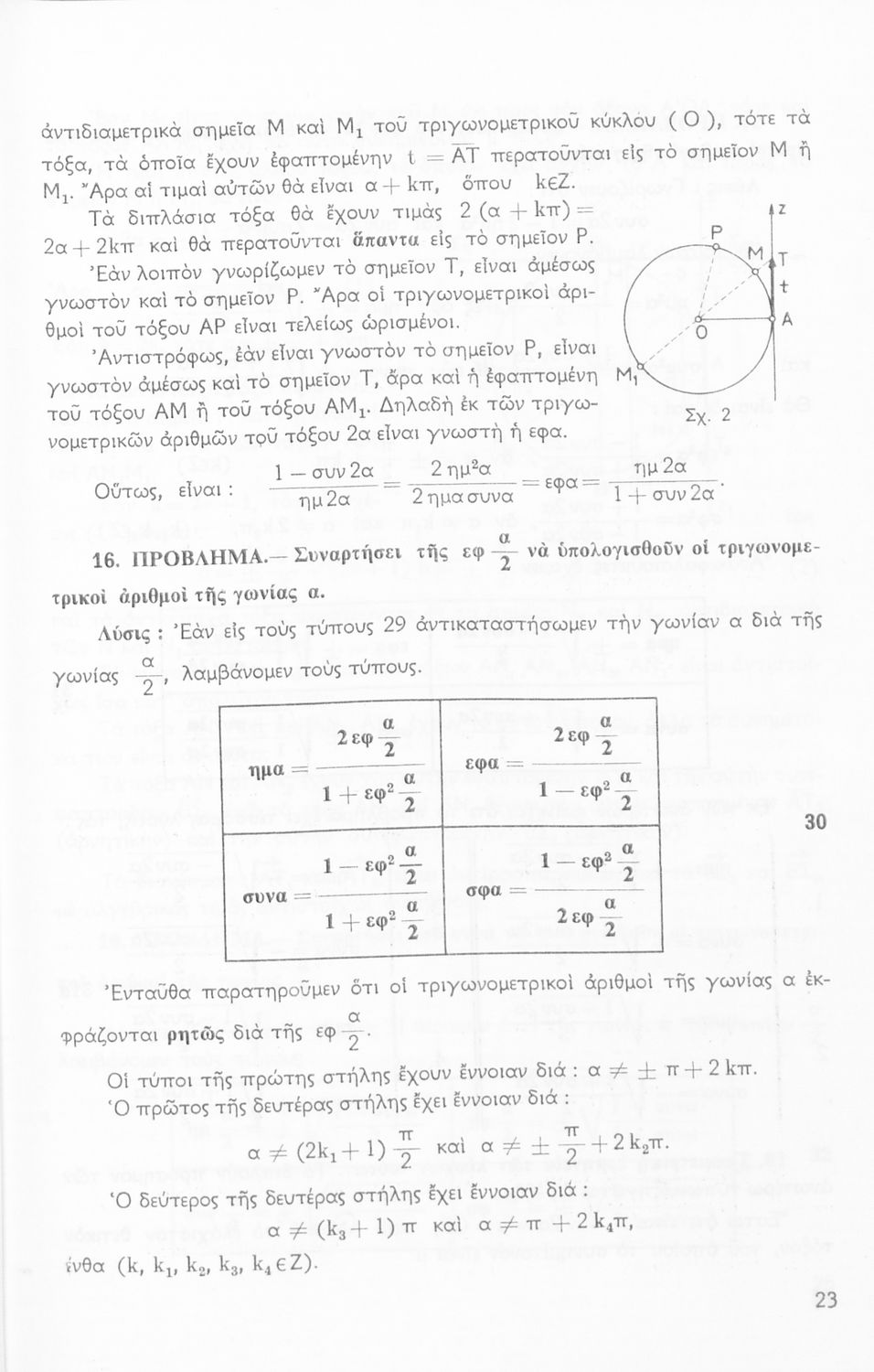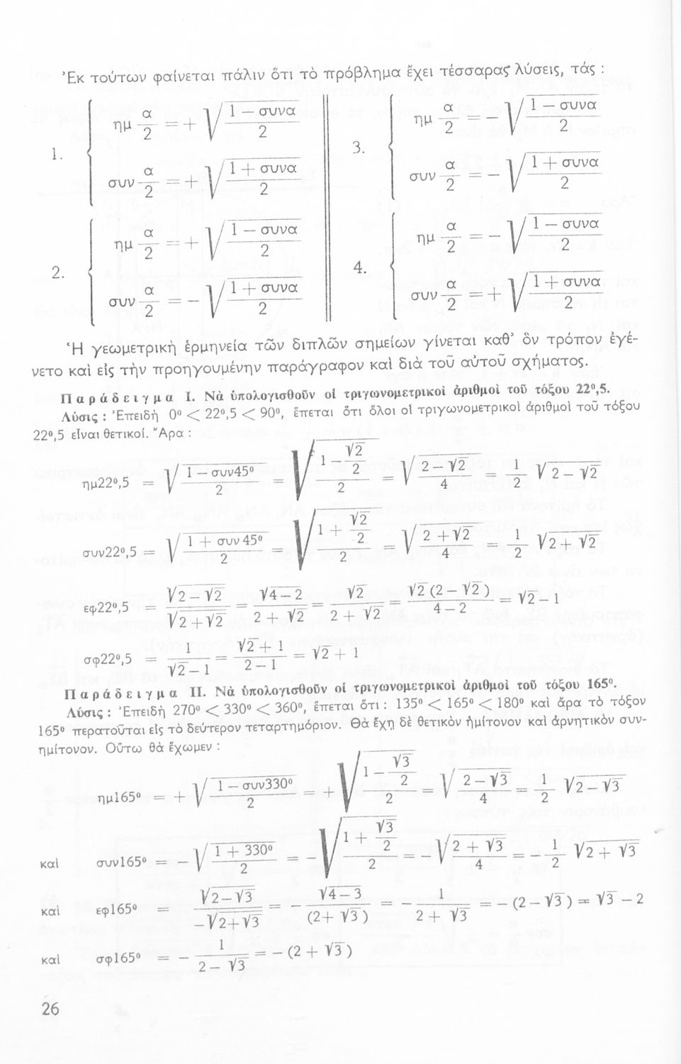 Σχολικό εγχειρίδιο Τριγωνομετρίας για τους μαθητές της Ε΄ Γυμνασίου. Τριγωνομετρικοί αριθμοί, ασκήσεις τριγωνομετρίας.