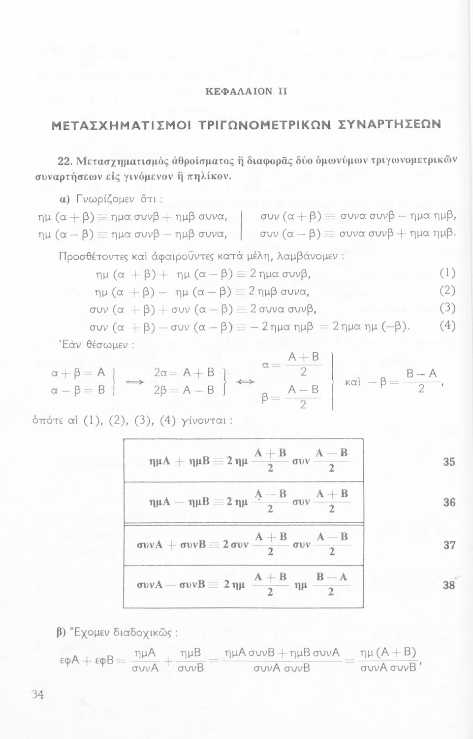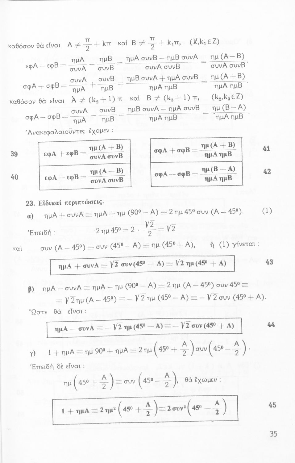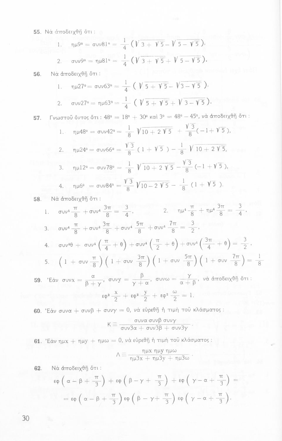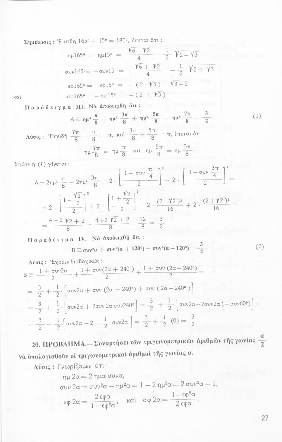 Σχολικό εγχειρίδιο Τριγωνομετρίας για τους μαθητές της Ε΄ Γυμνασίου. Τριγωνομετρικοί αριθμοί, ασκήσεις τριγωνομετρίας.