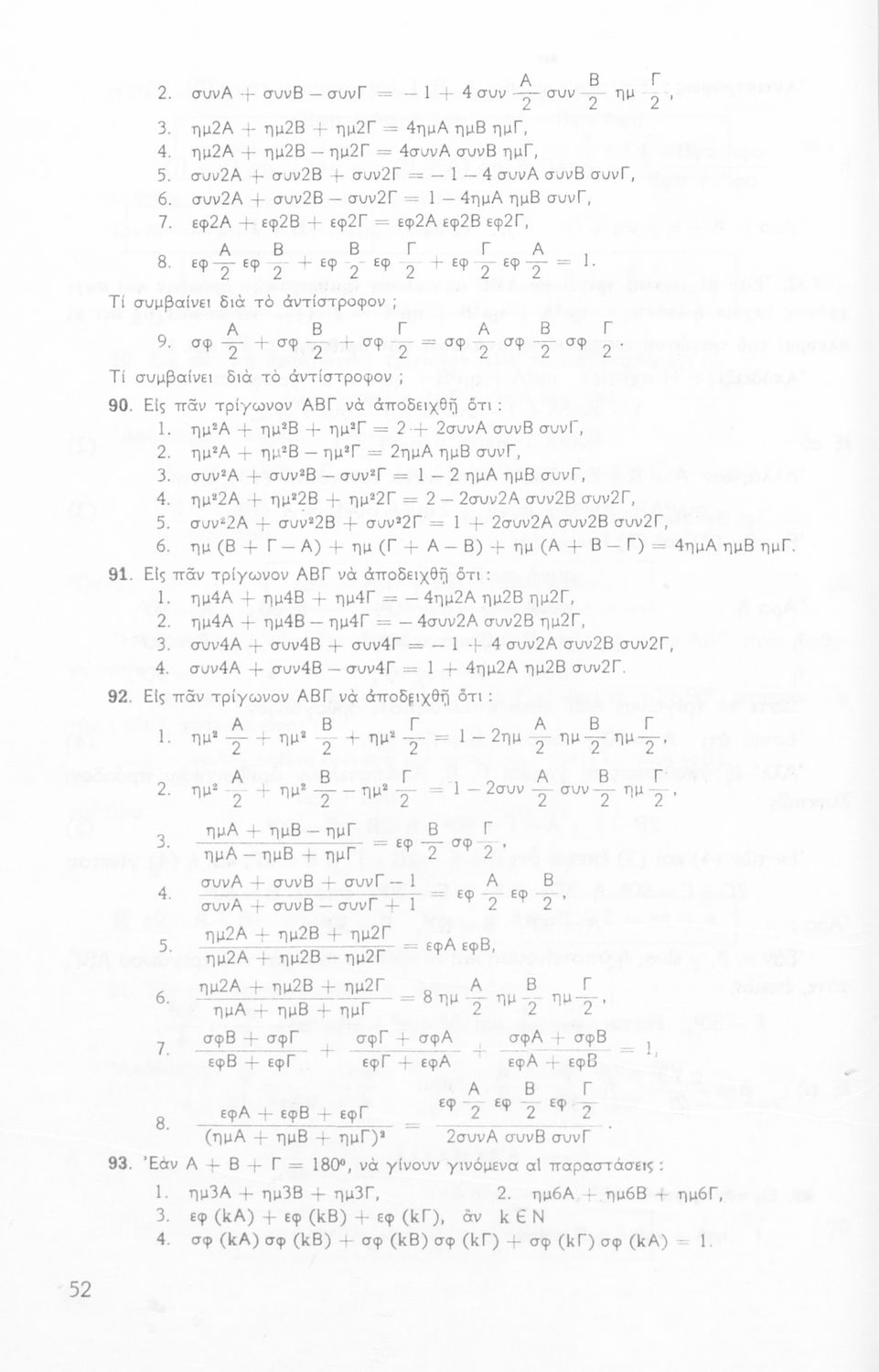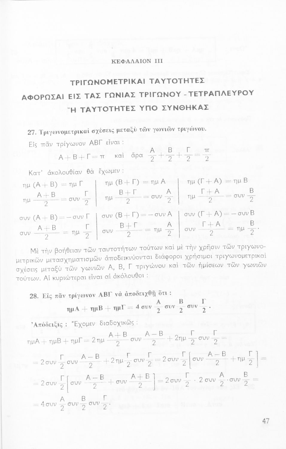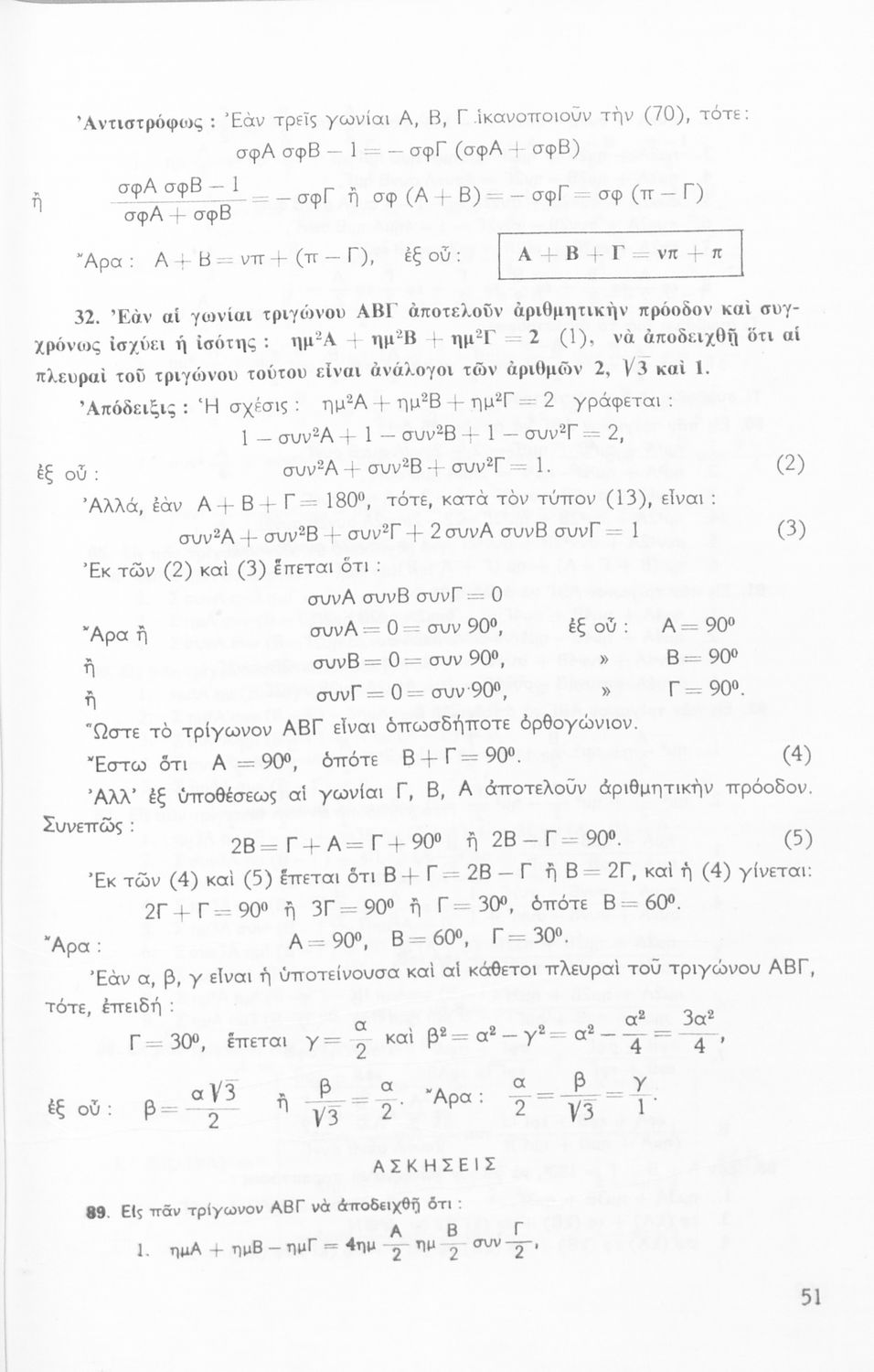 Σχολικό εγχειρίδιο Τριγωνομετρίας για τους μαθητές της Ε΄ Γυμνασίου. Τριγωνομετρικοί αριθμοί, ασκήσεις τριγωνομετρίας.