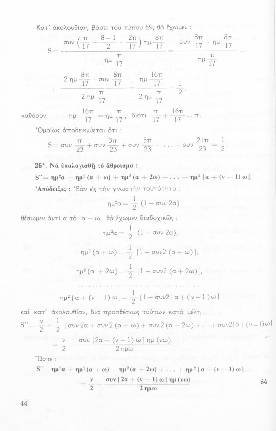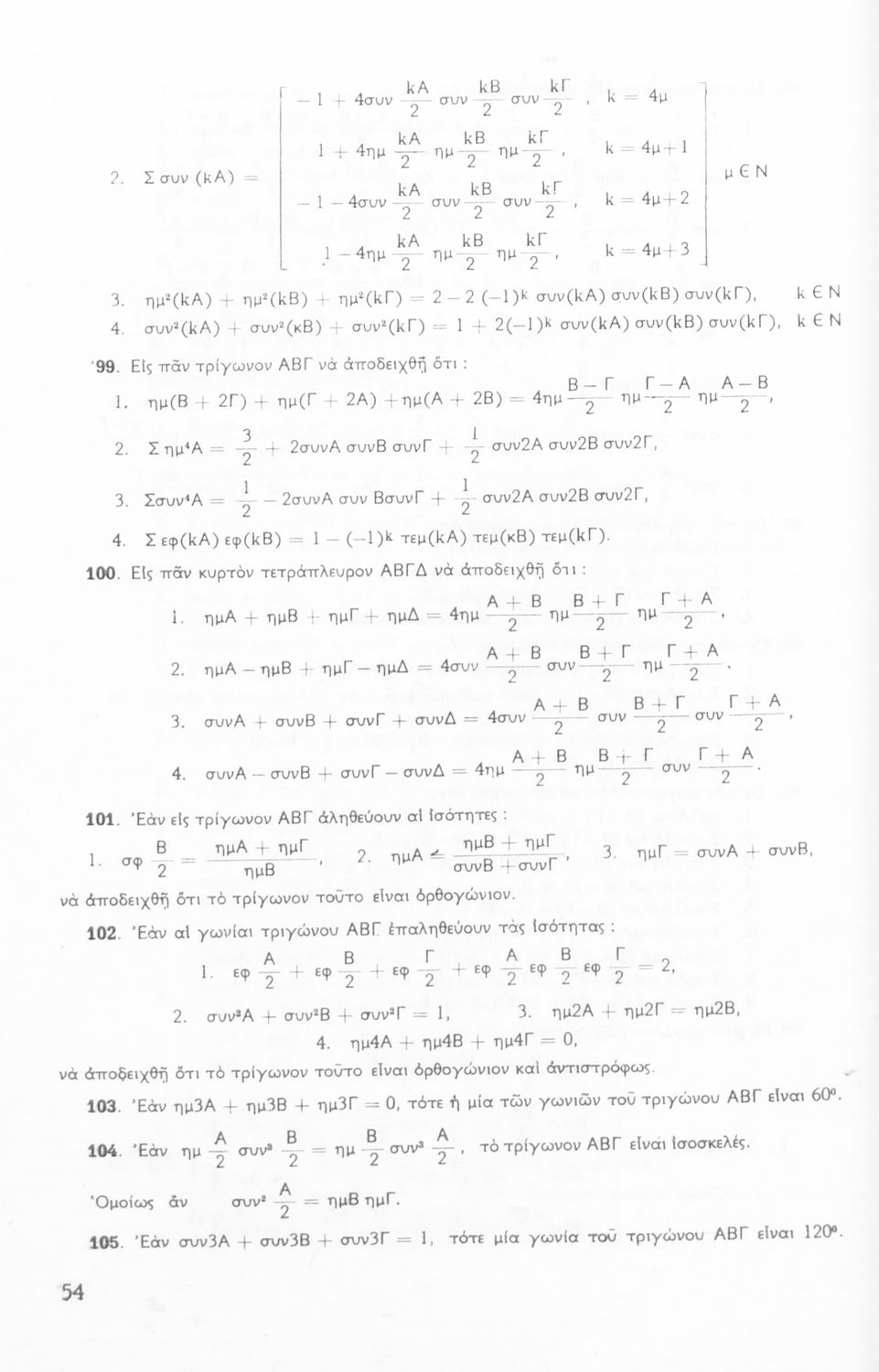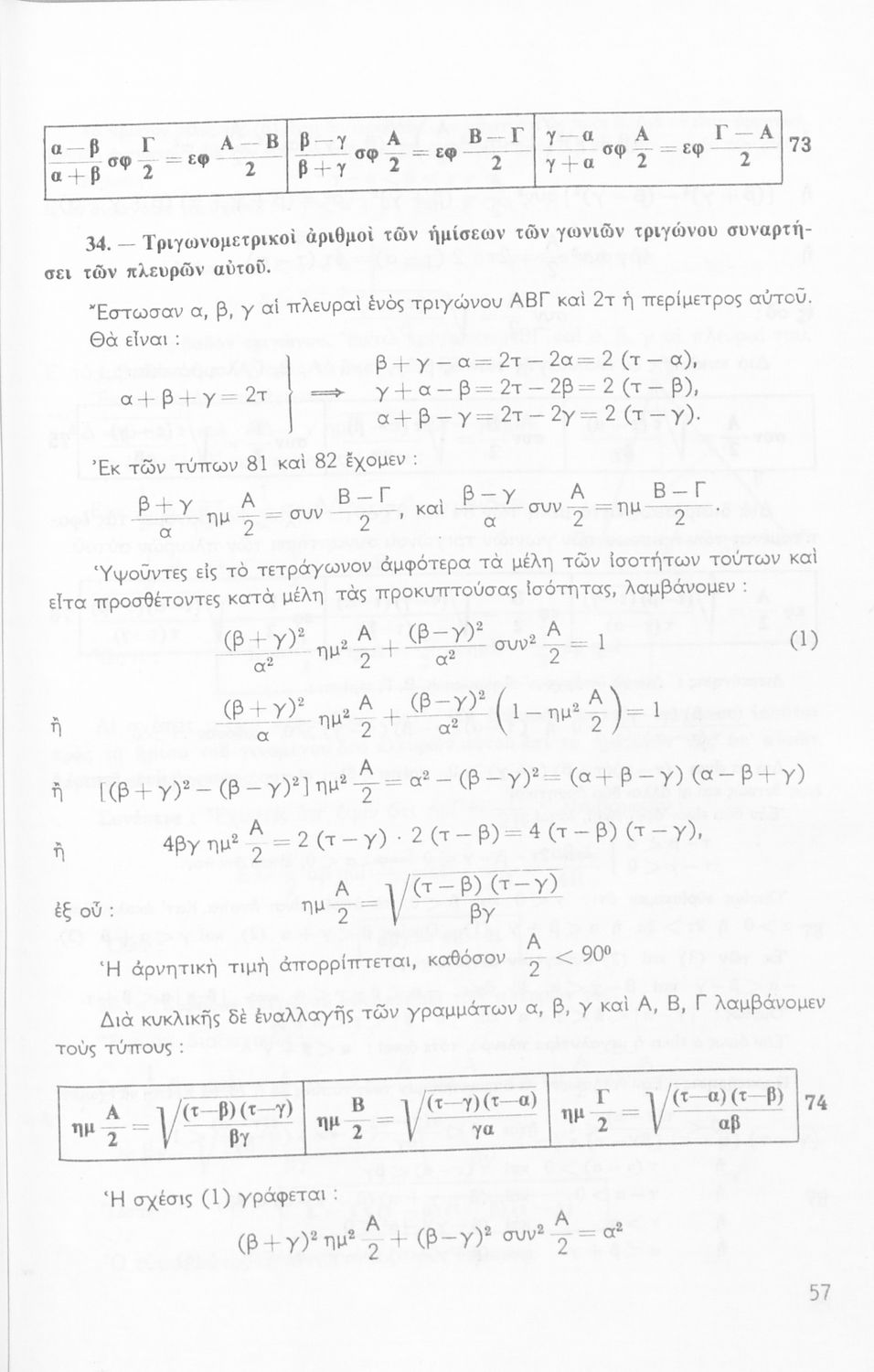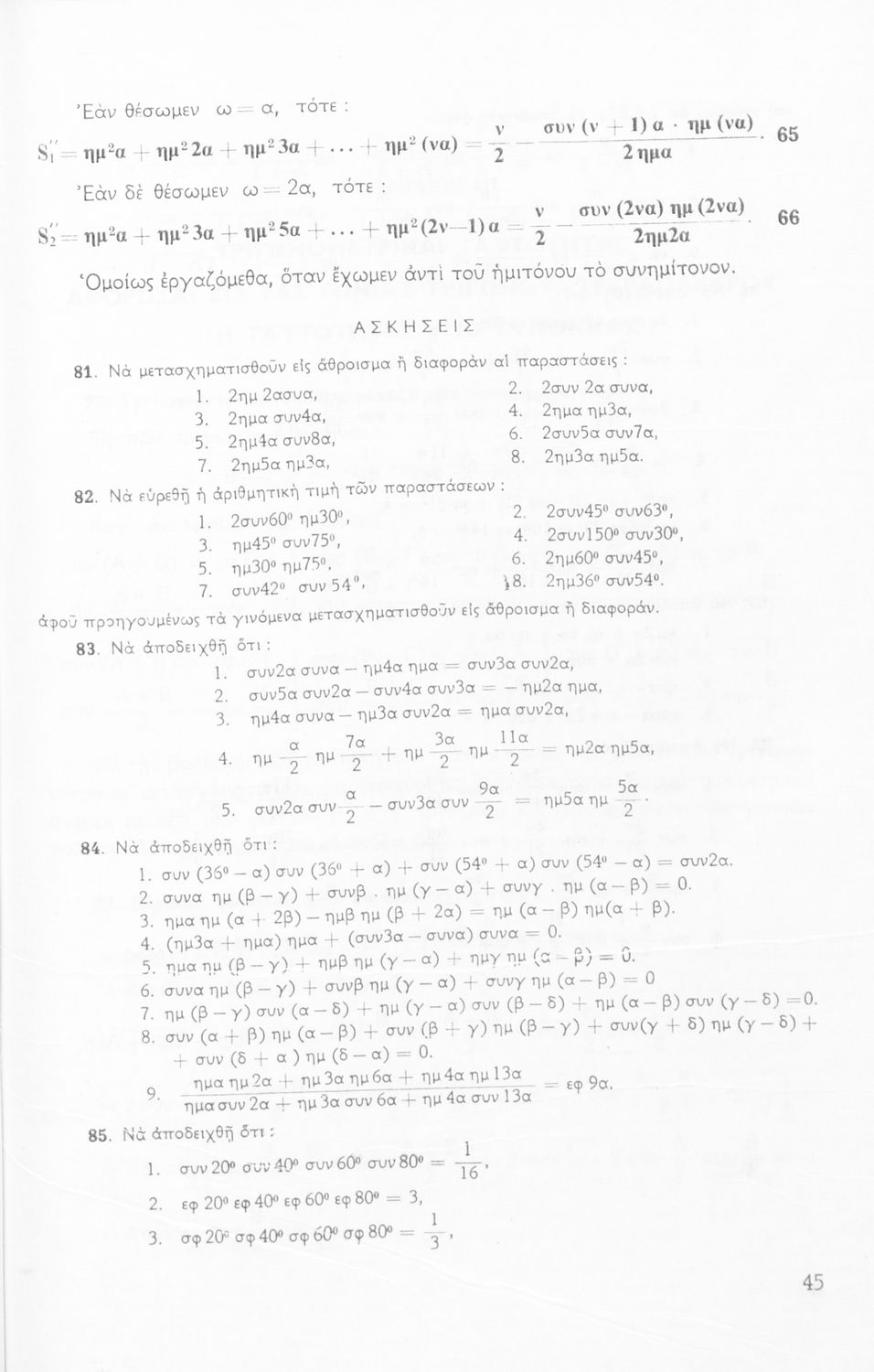 Σχολικό εγχειρίδιο Τριγωνομετρίας για τους μαθητές της Ε΄ Γυμνασίου. Τριγωνομετρικοί αριθμοί, ασκήσεις τριγωνομετρίας.