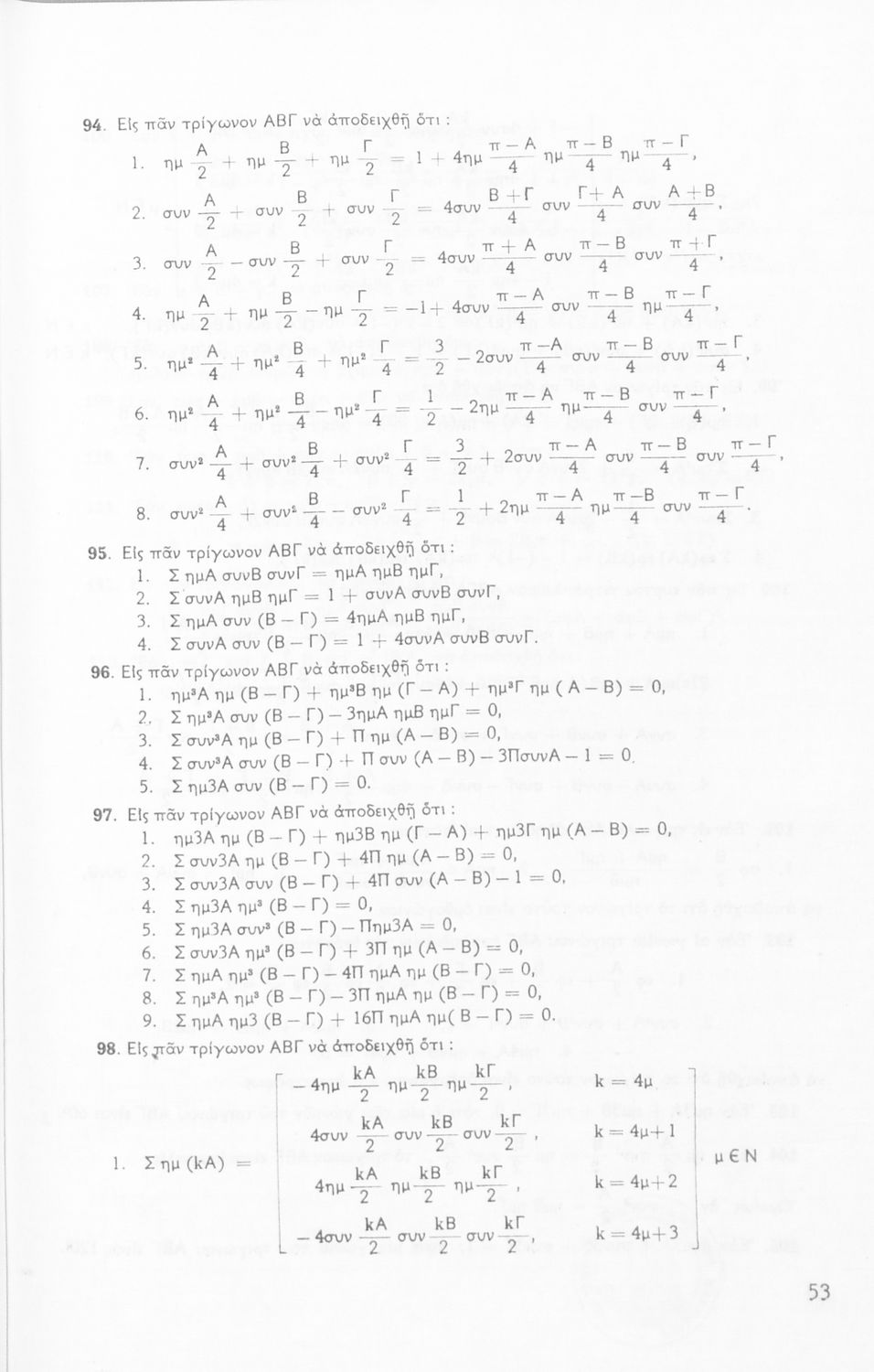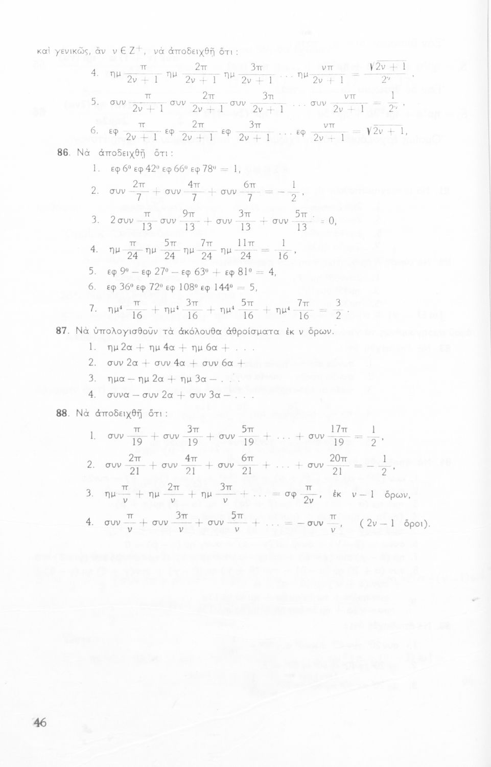 Σχολικό εγχειρίδιο Μαθηματικών για την Ε΄ Γυμνασίου χωρισμένο σε προβλήματα, εφαρμογές και ασκήσεις που εστιάζει στην Τριγωνομετρία.