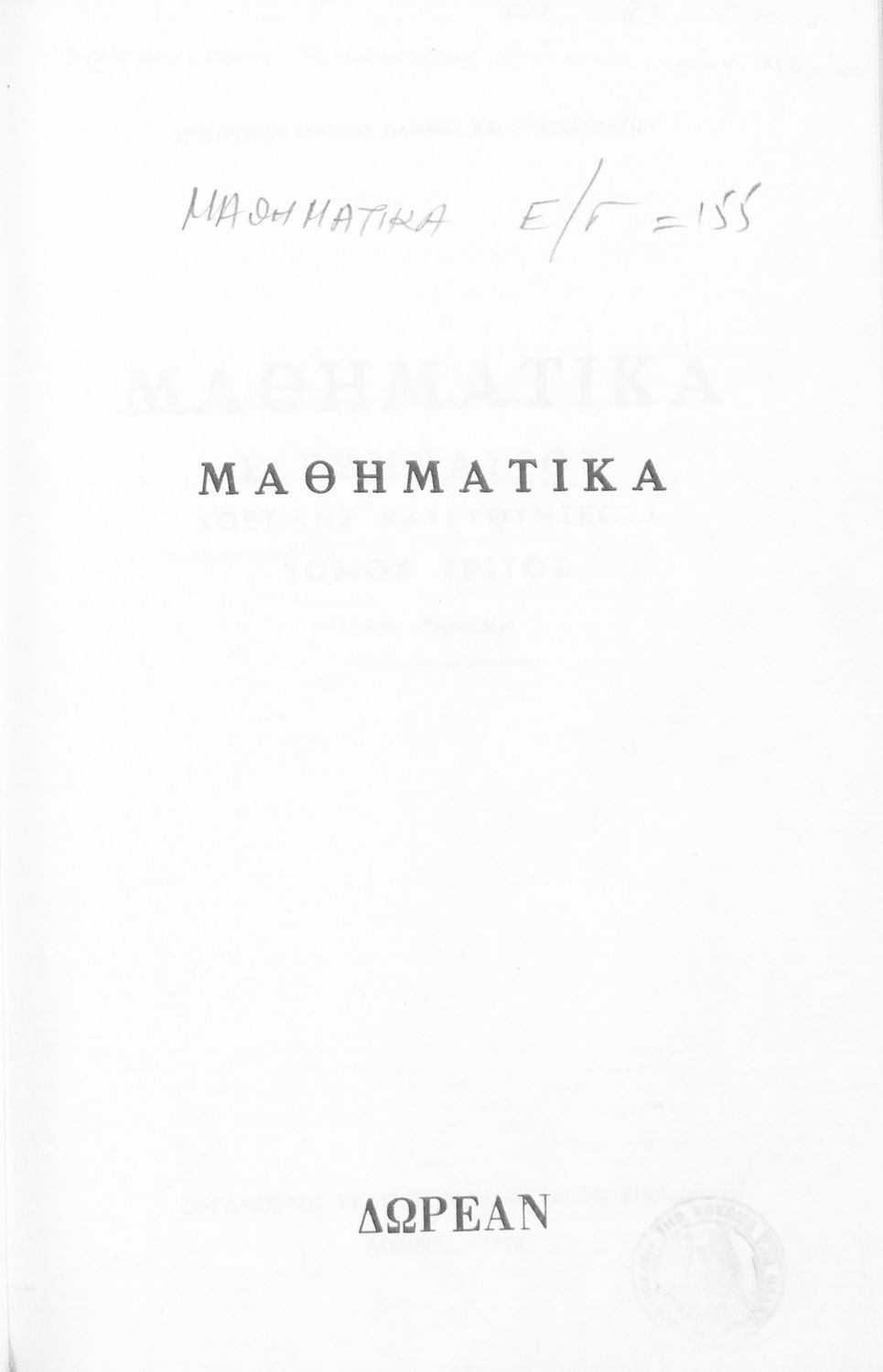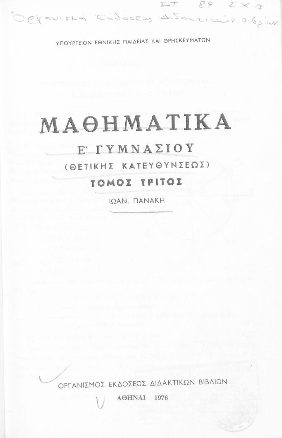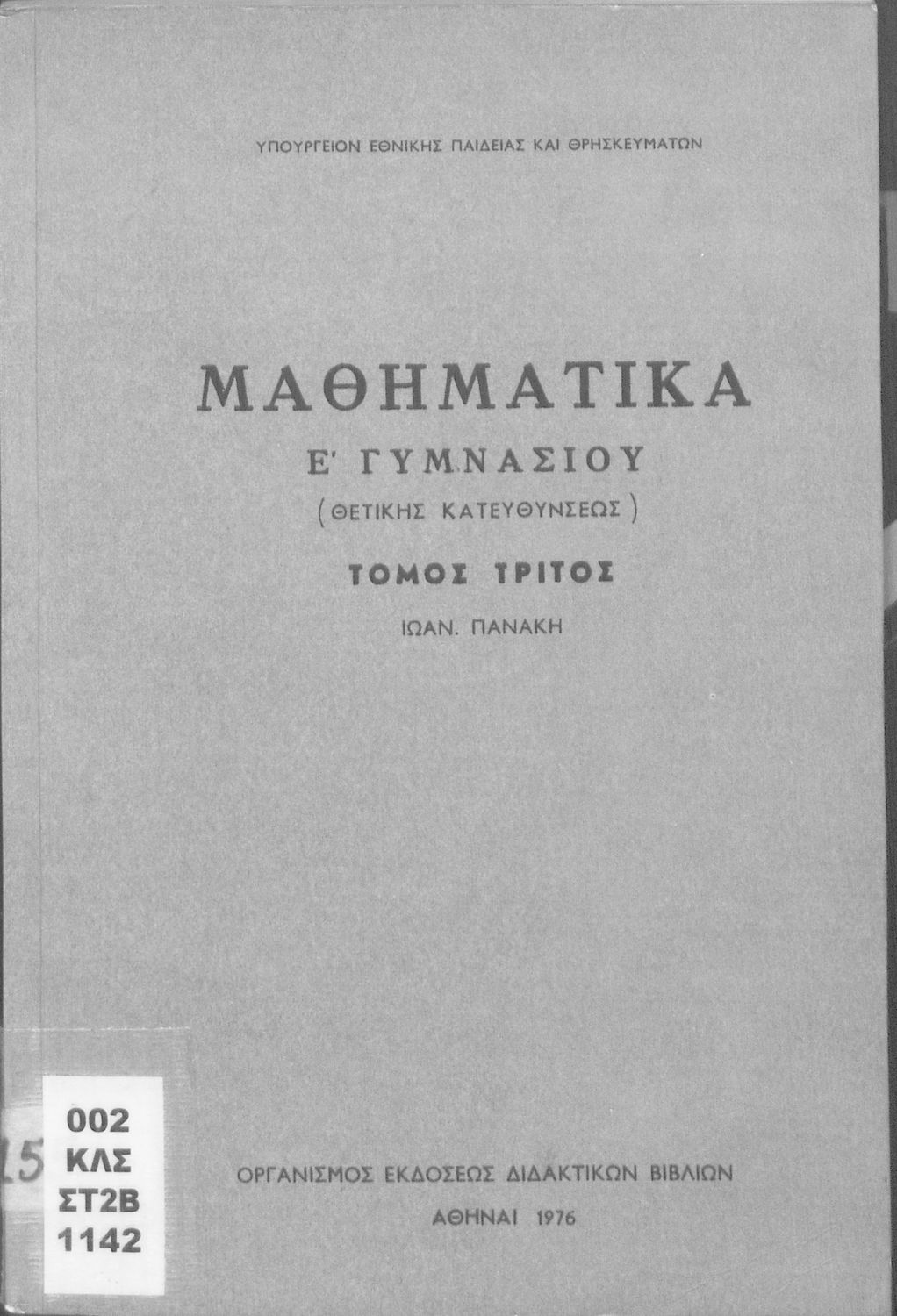 Τίτλος: Μαθηματικά Ε΄ Γυμνασίου (θετικής κατευθύνσεως)