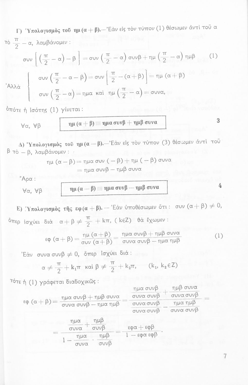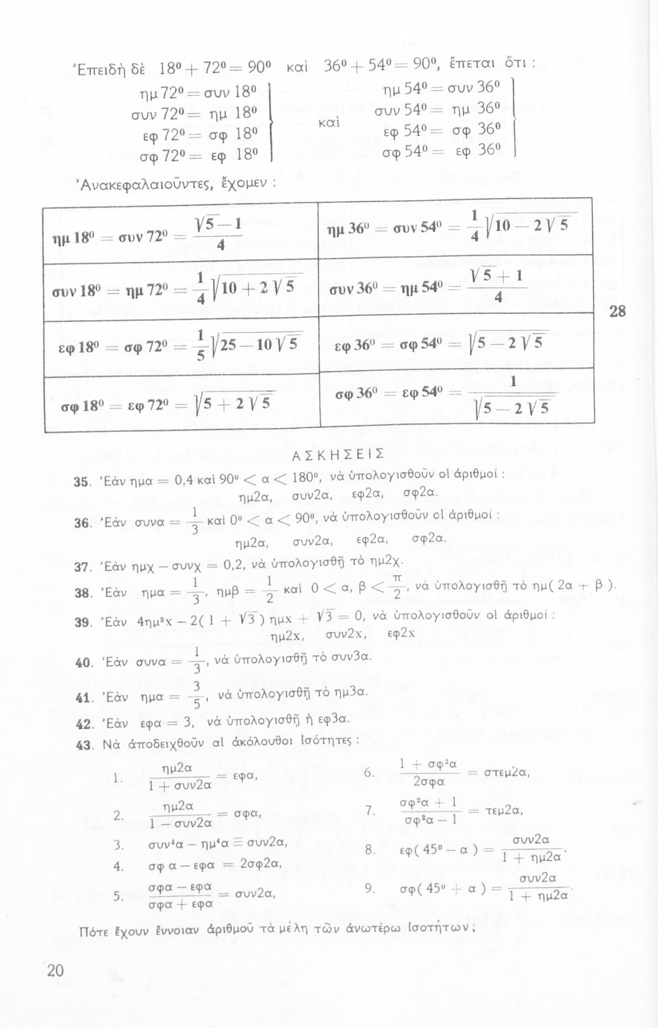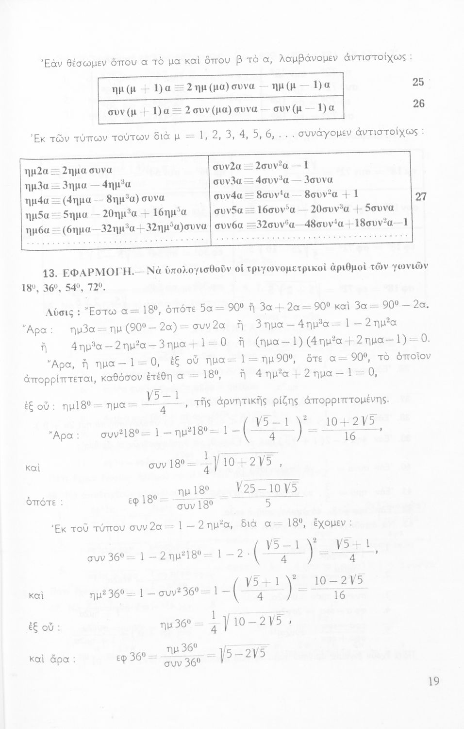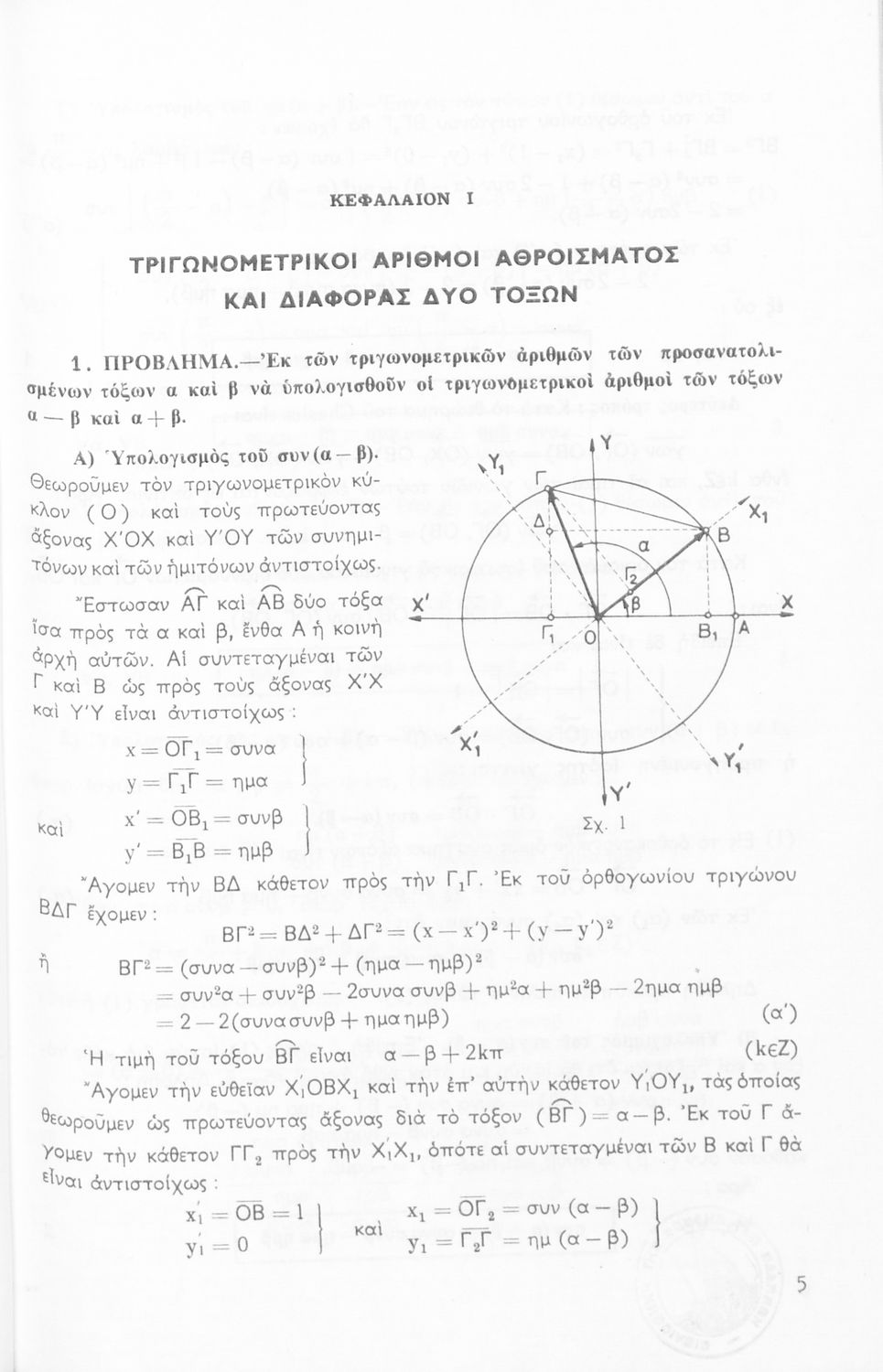 Σχολικό εγχειρίδιο Τριγωνομετρίας για τους μαθητές της Ε΄ Γυμνασίου. Τριγωνομετρικοί αριθμοί, ασκήσεις τριγωνομετρίας.