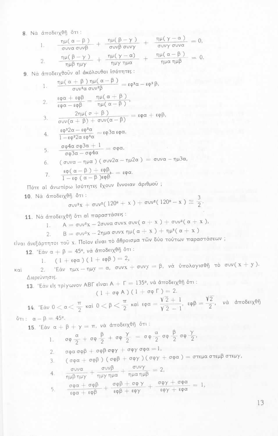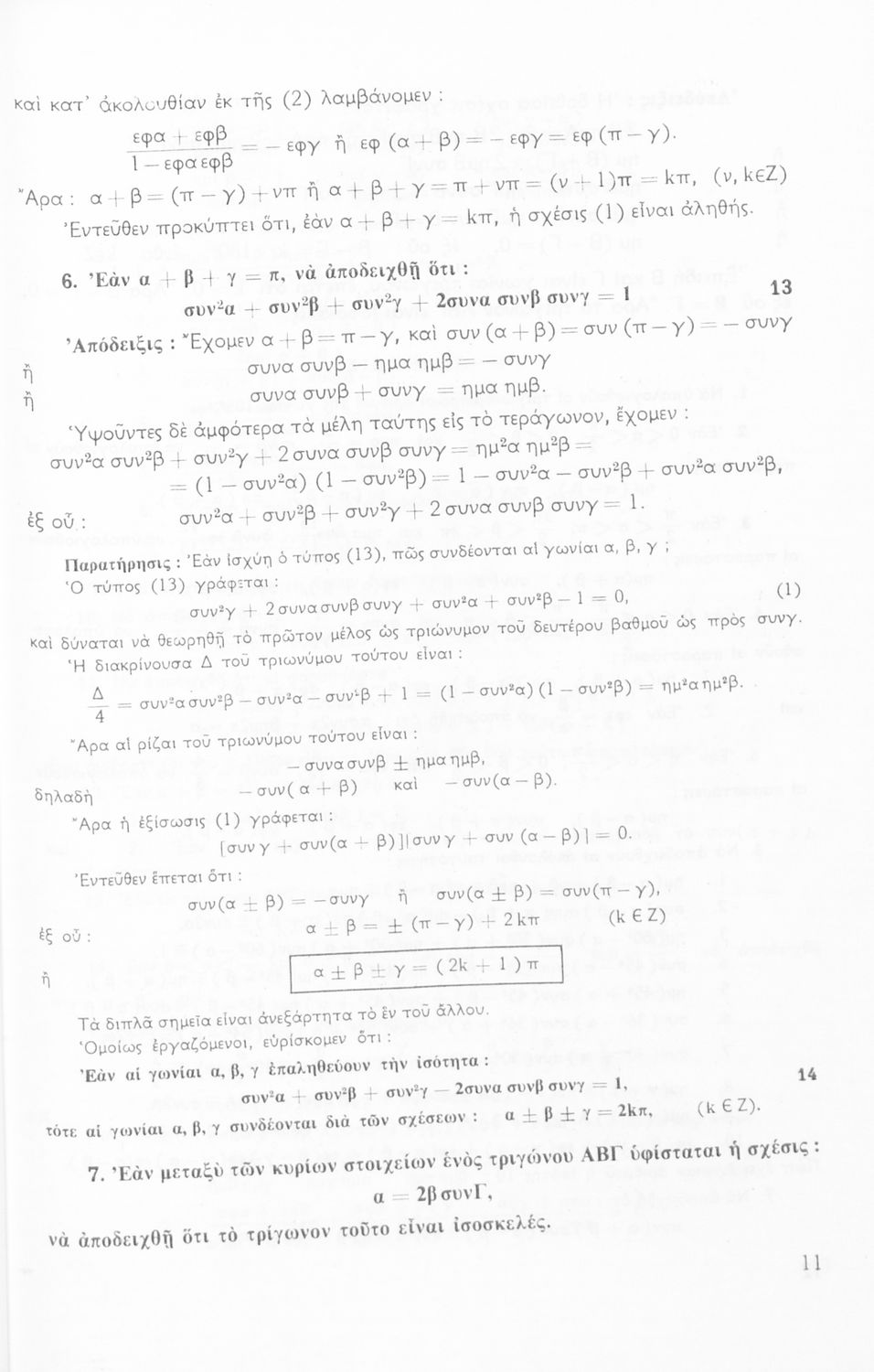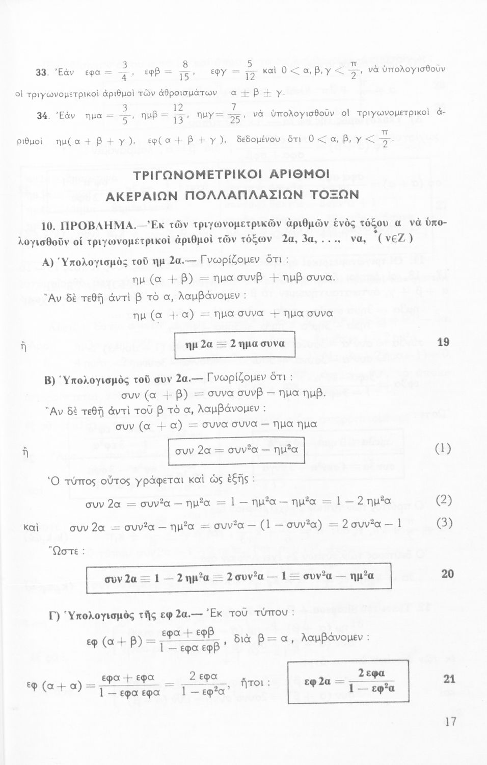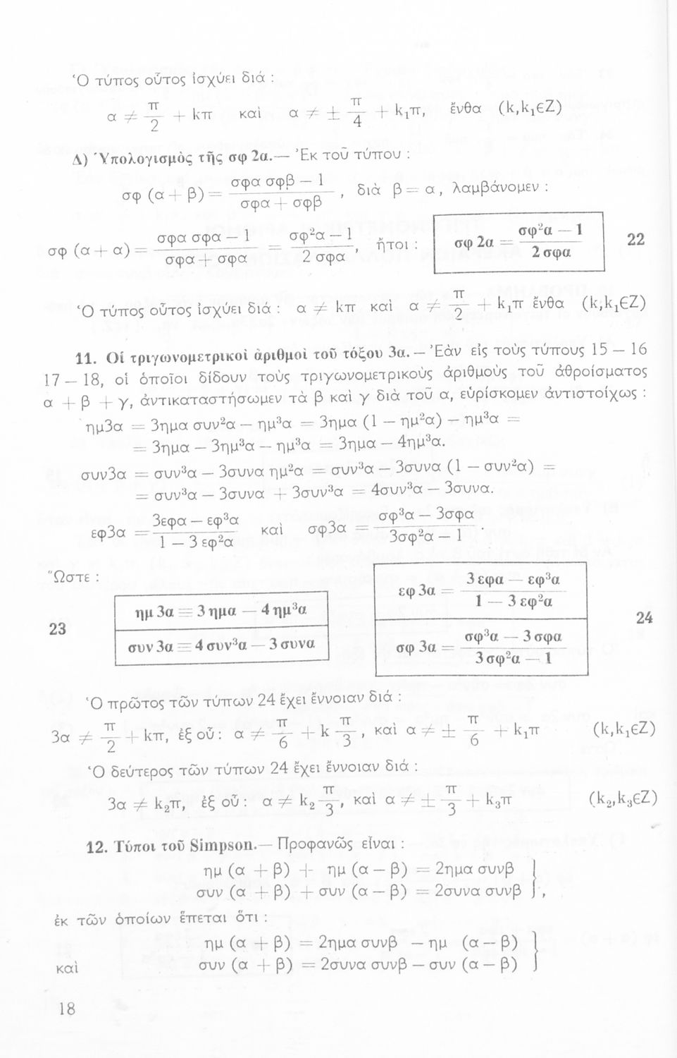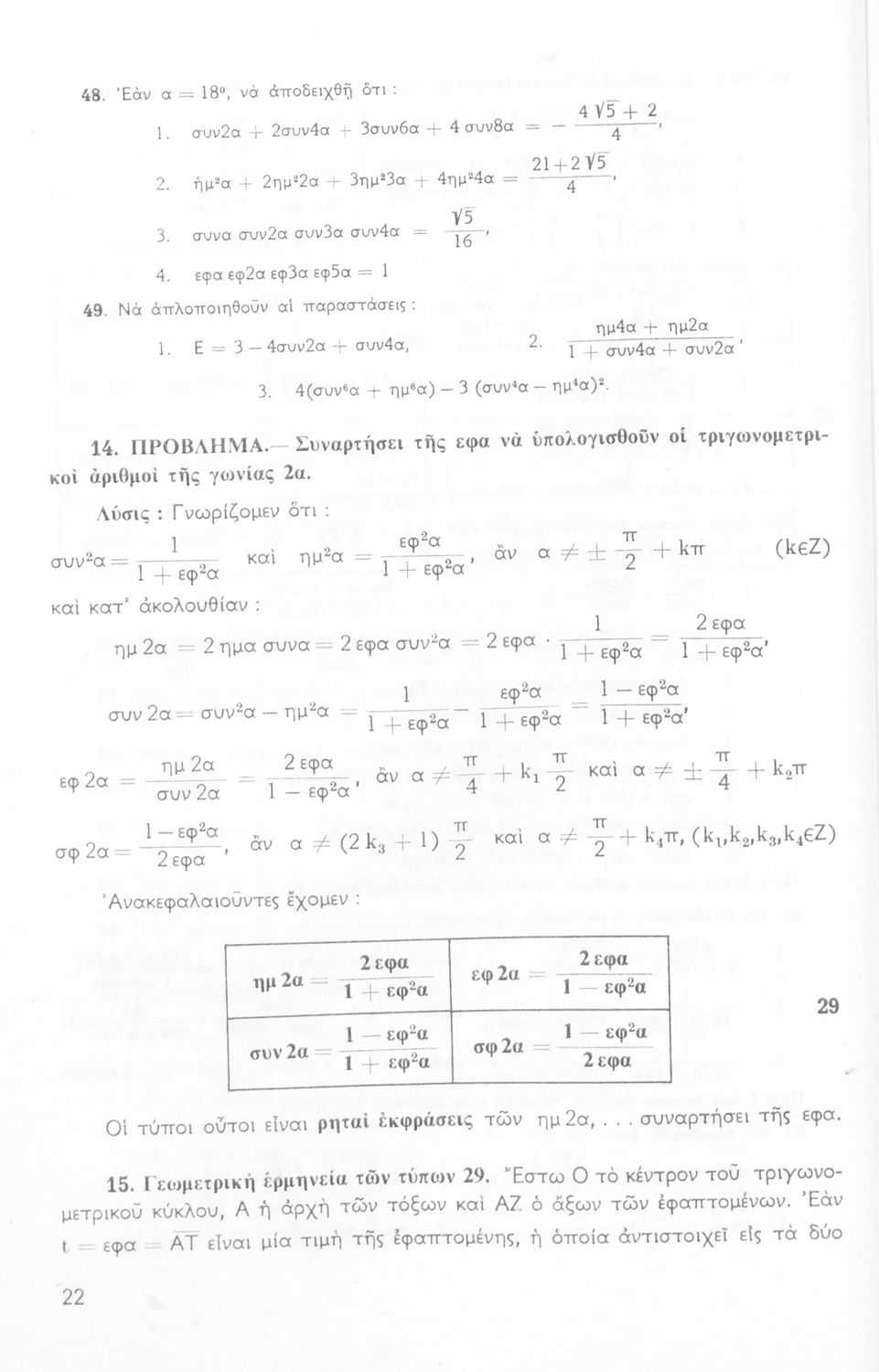 Σχολικό εγχειρίδιο Τριγωνομετρίας για τους μαθητές της Ε΄ Γυμνασίου. Τριγωνομετρικοί αριθμοί, ασκήσεις τριγωνομετρίας.