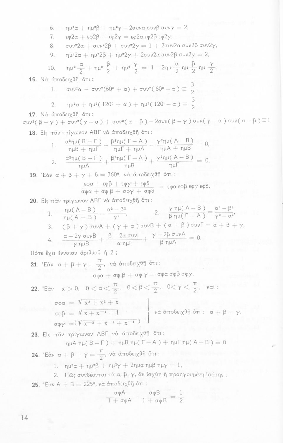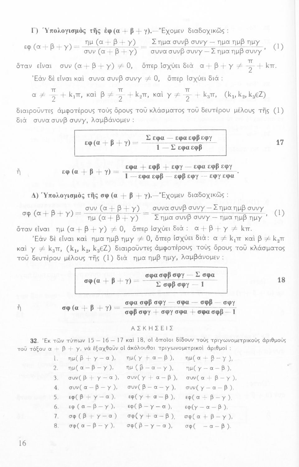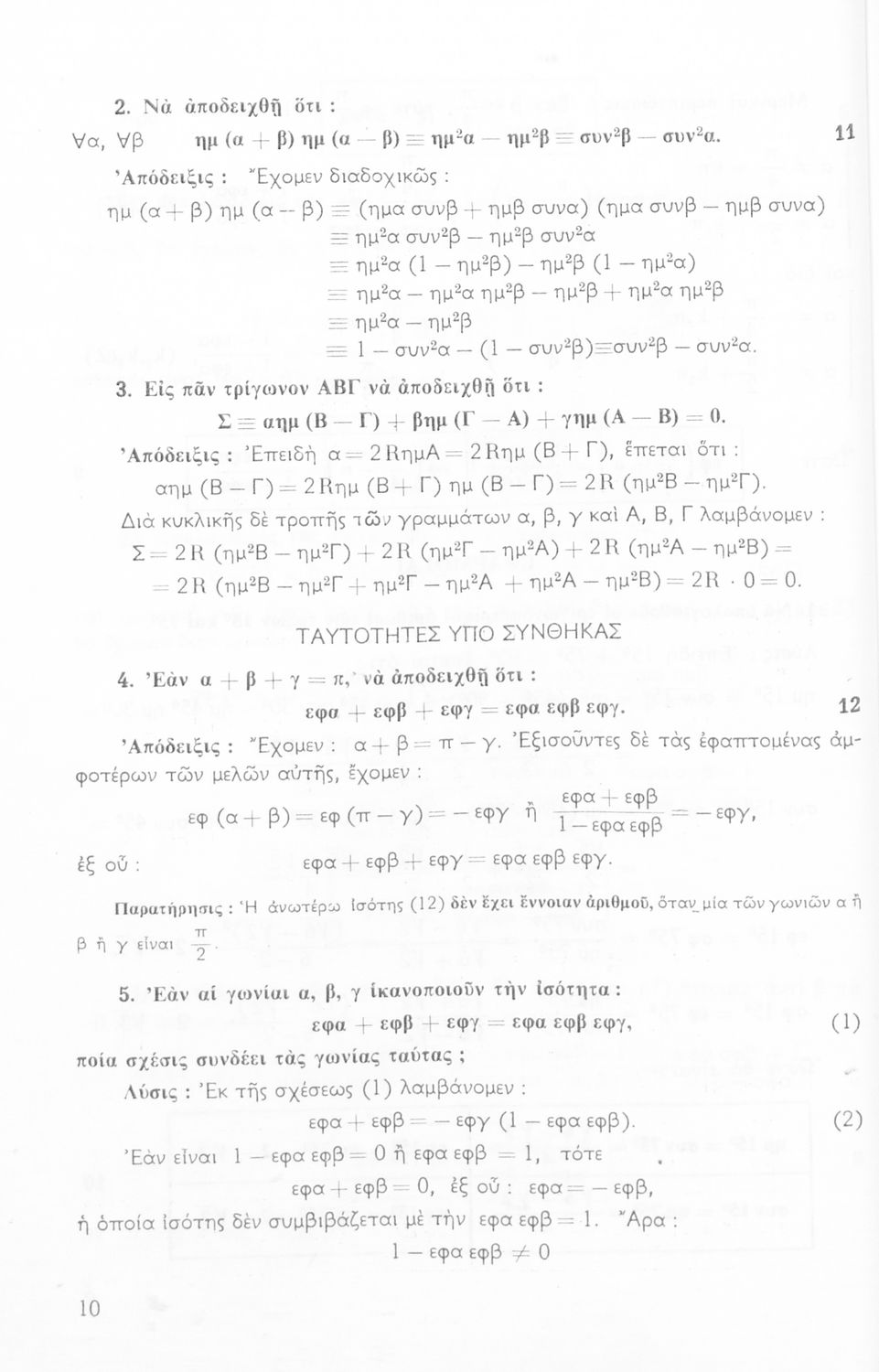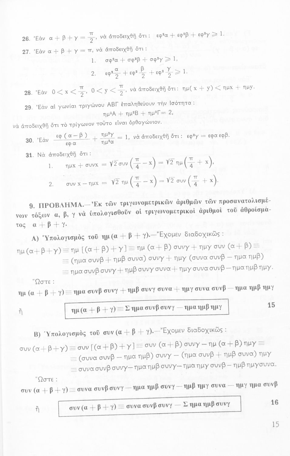 Σχολικό εγχειρίδιο Τριγωνομετρίας για τους μαθητές της Ε΄ Γυμνασίου. Τριγωνομετρικοί αριθμοί, ασκήσεις τριγωνομετρίας.