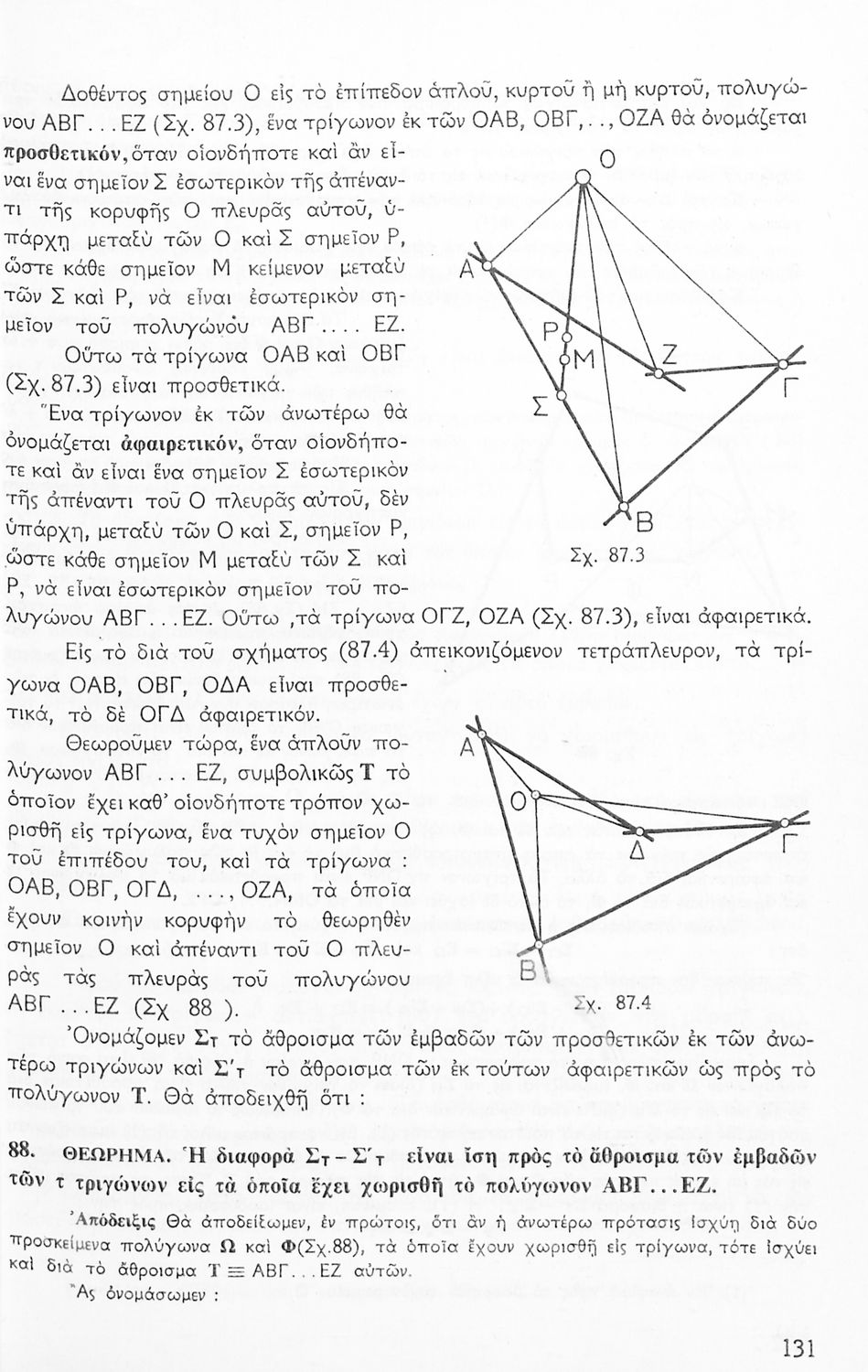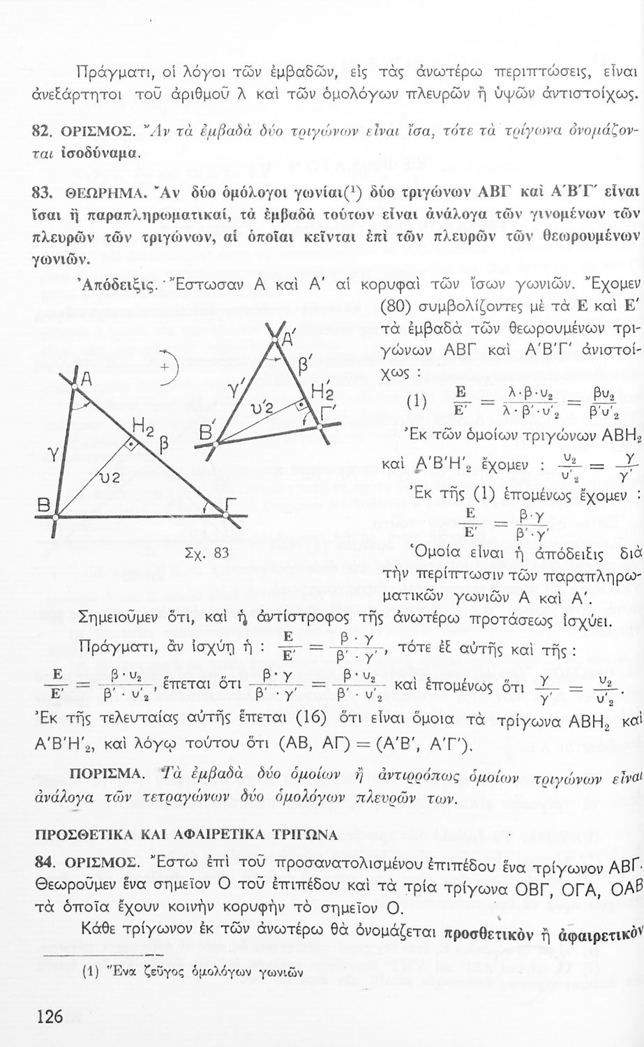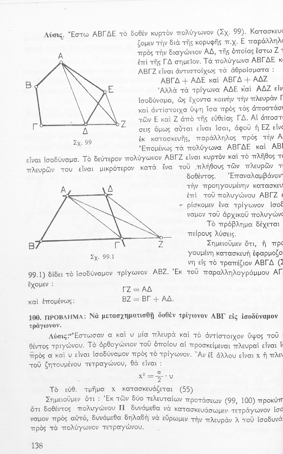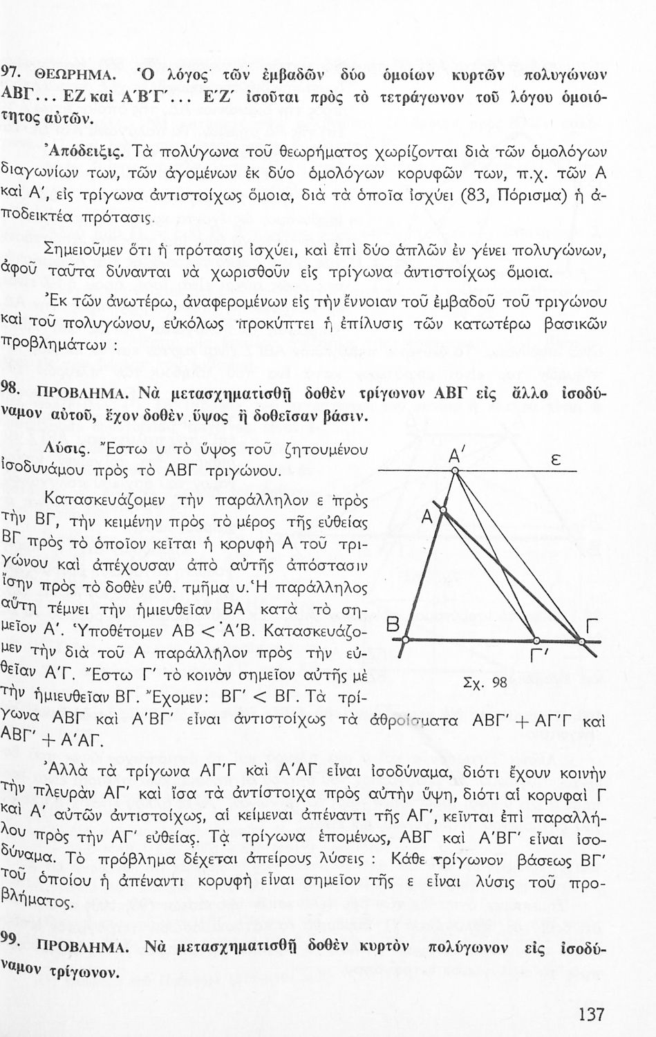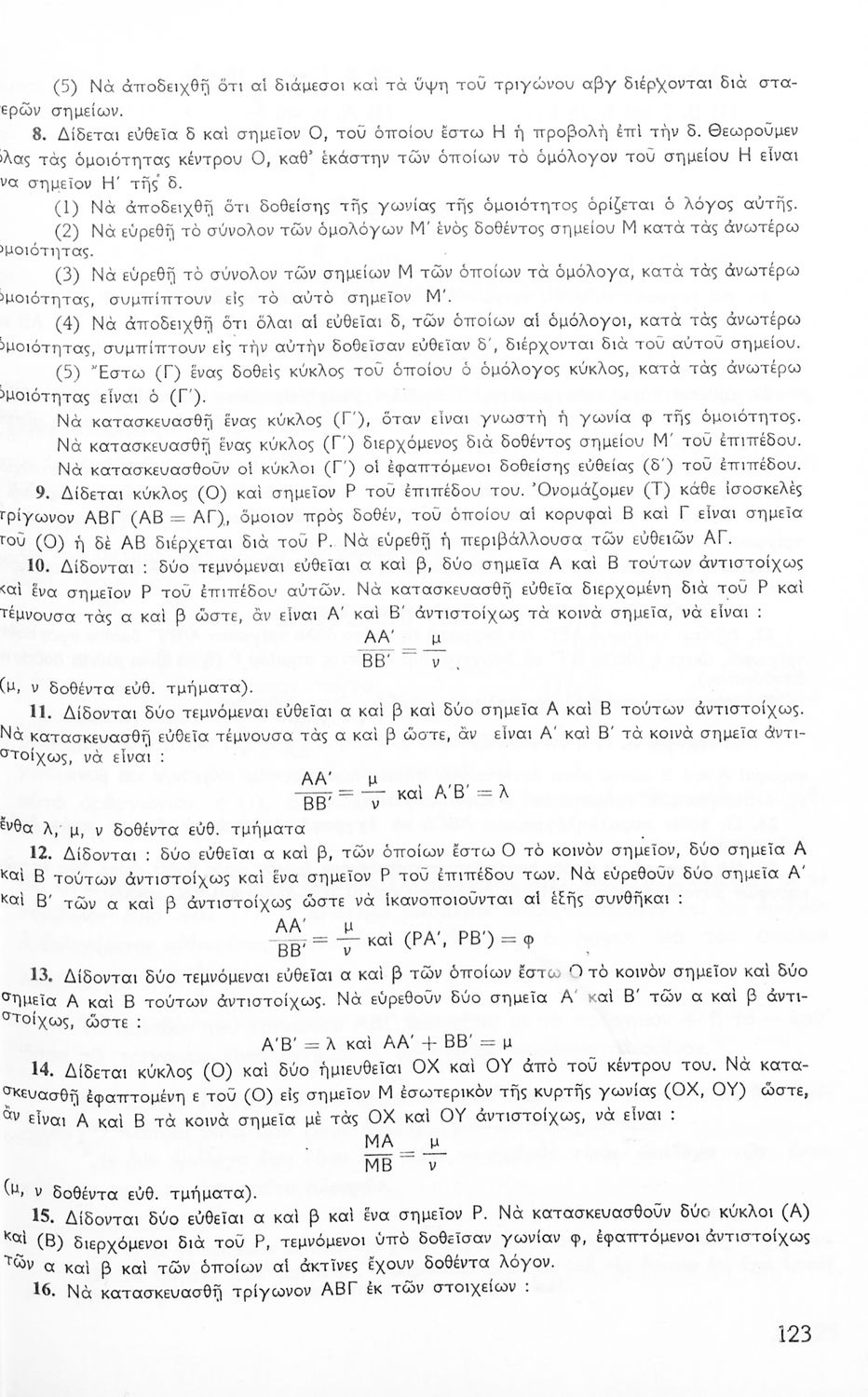 Σχολικό εγχειρίδιο Γεωμετρίας για τις Δ΄, Ε΄ και ΣΤ΄ Γυμνασίου που περιλαμβάνει αξιώματα, θεωρήματα και κατασκευές και είναι χωρισμένο σε γεωμετρία επιπέδου και γεωμετρία χώρου.