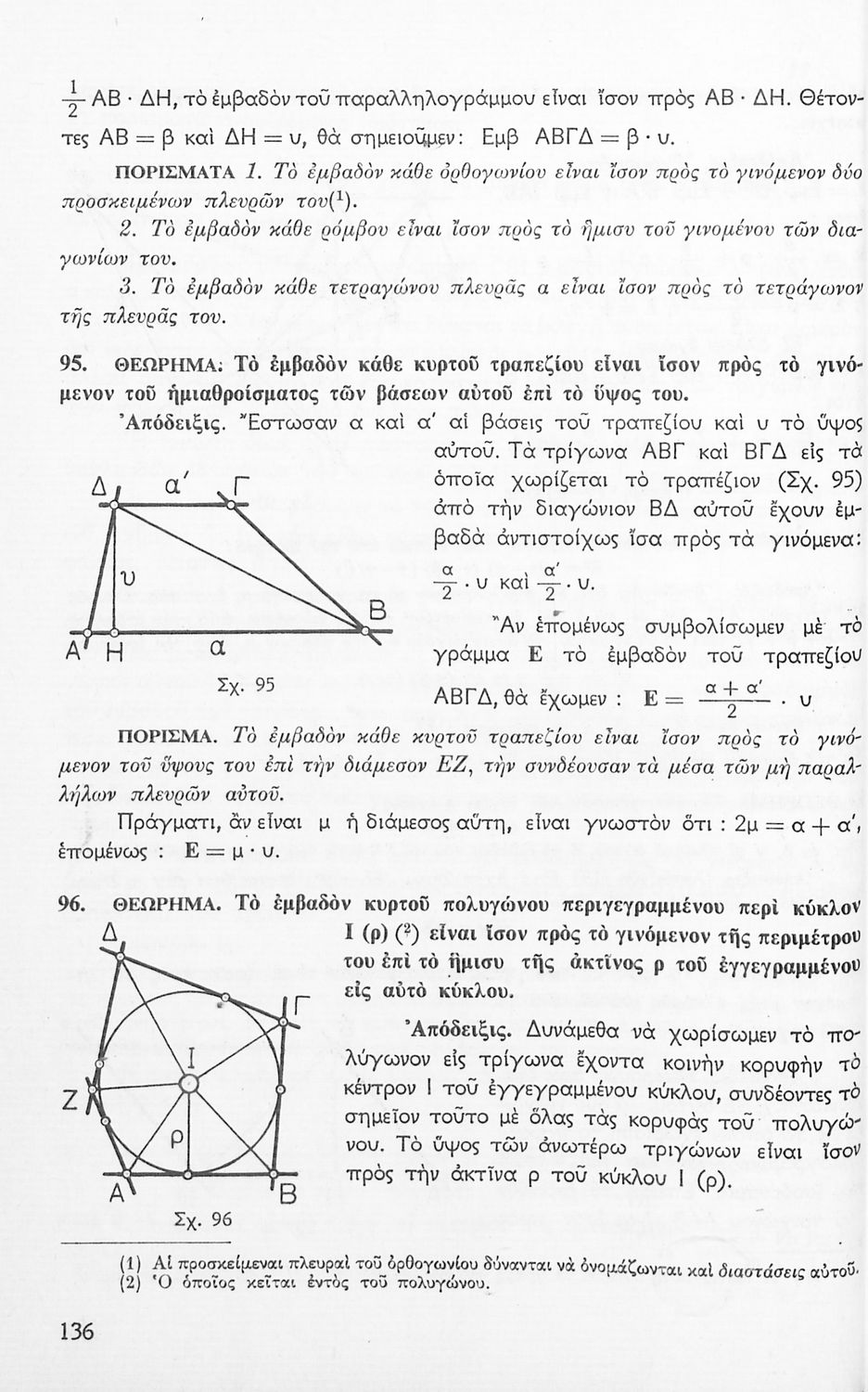 Σχολικό εγχειρίδιο Γεωμετρίας για τις Γ΄, Δ΄, Ε΄, ΣΤ΄ Γυμνασίου που περιλαμβάνει θεωρία και ασκήσεις και είναι χωρισμένο σε Επιπεδομετρία και Στερεομετρία.