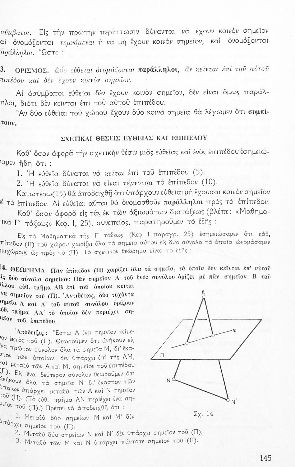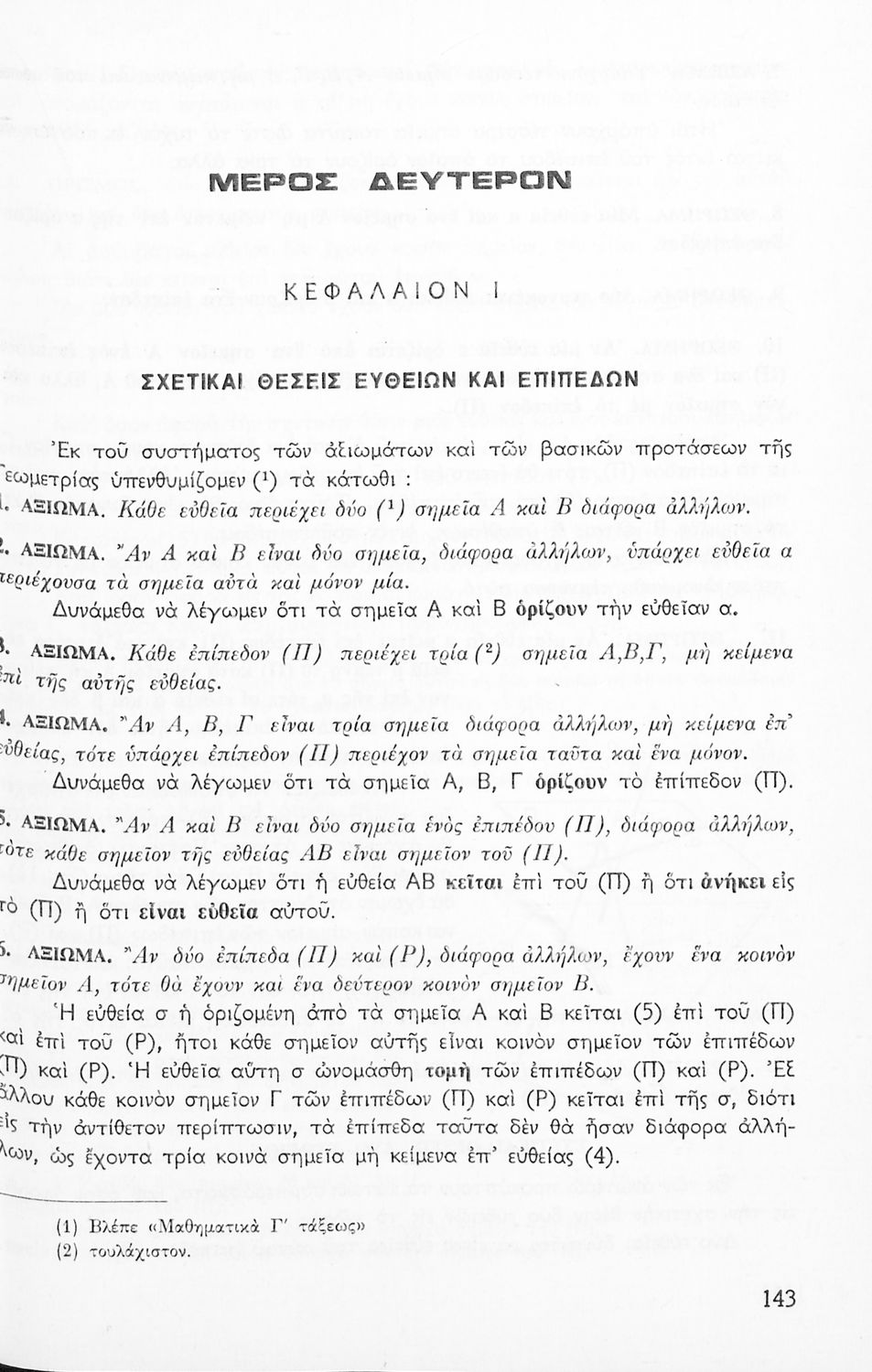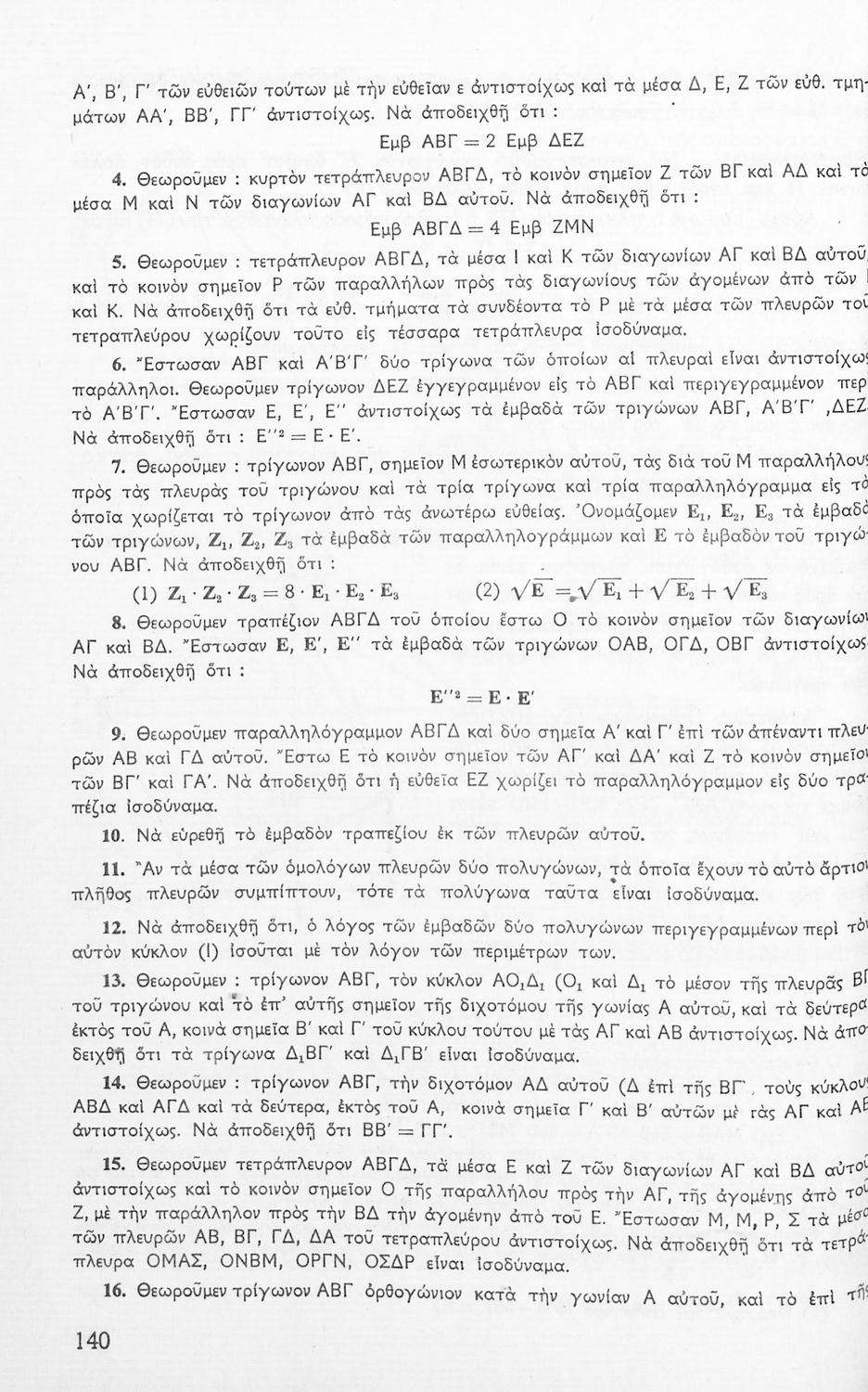 Σχολικό εγχειρίδιο Γεωμετρίας για τις Δ΄, Ε΄ και ΣΤ΄ Γυμνασίου που περιλαμβάνει αξιώματα, θεωρήματα και κατασκευές και είναι χωρισμένο σε γεωμετρία επιπέδου και γεωμετρία χώρου.