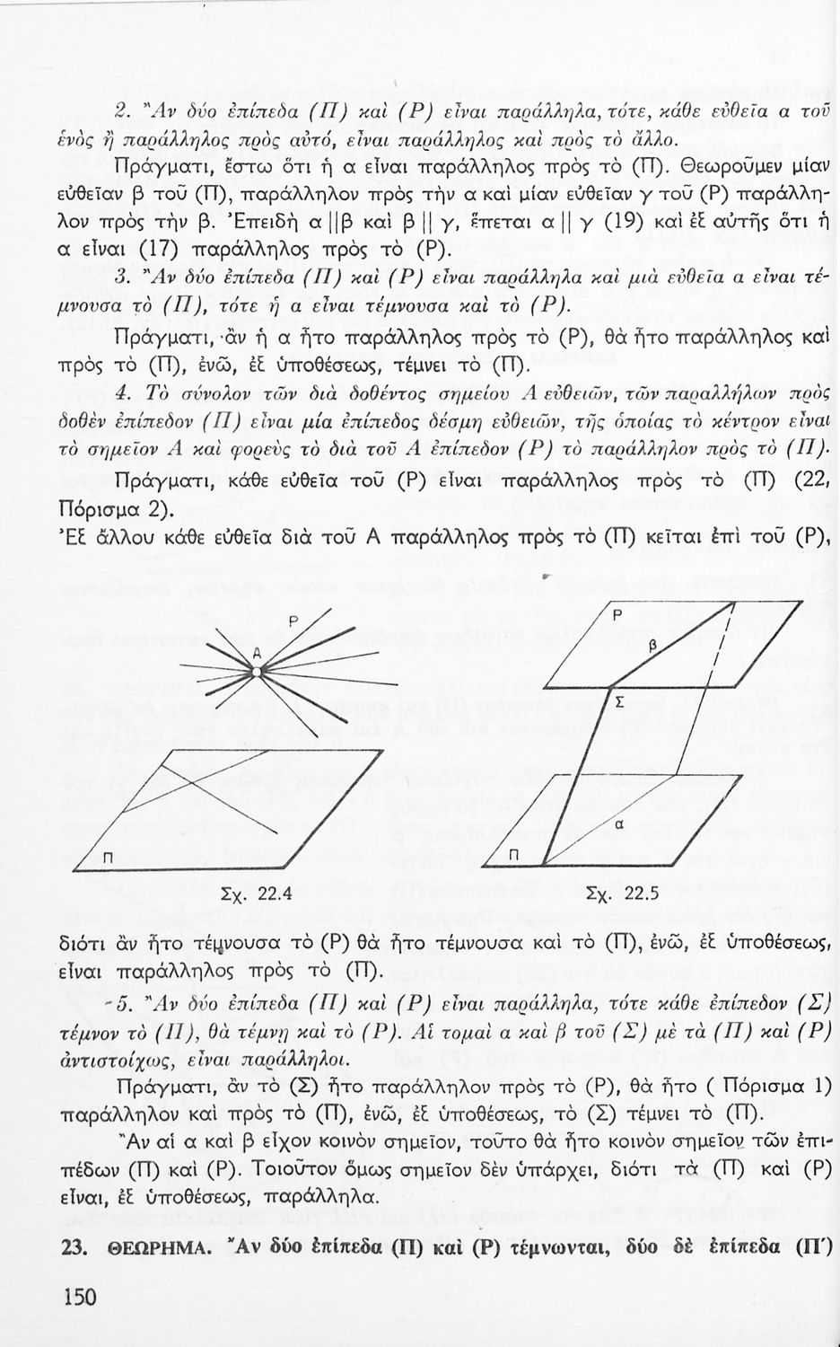 Σχολικό εγχειρίδιο Μαθηματικών Δ΄ και Ε΄ Γυμνασίου που είναι χωρισμένο σε θεωρήματα και ασκήσεις και εστιάζει στη Γεωμετρία. Φέρει το σύμβολο της δικτατορίας.