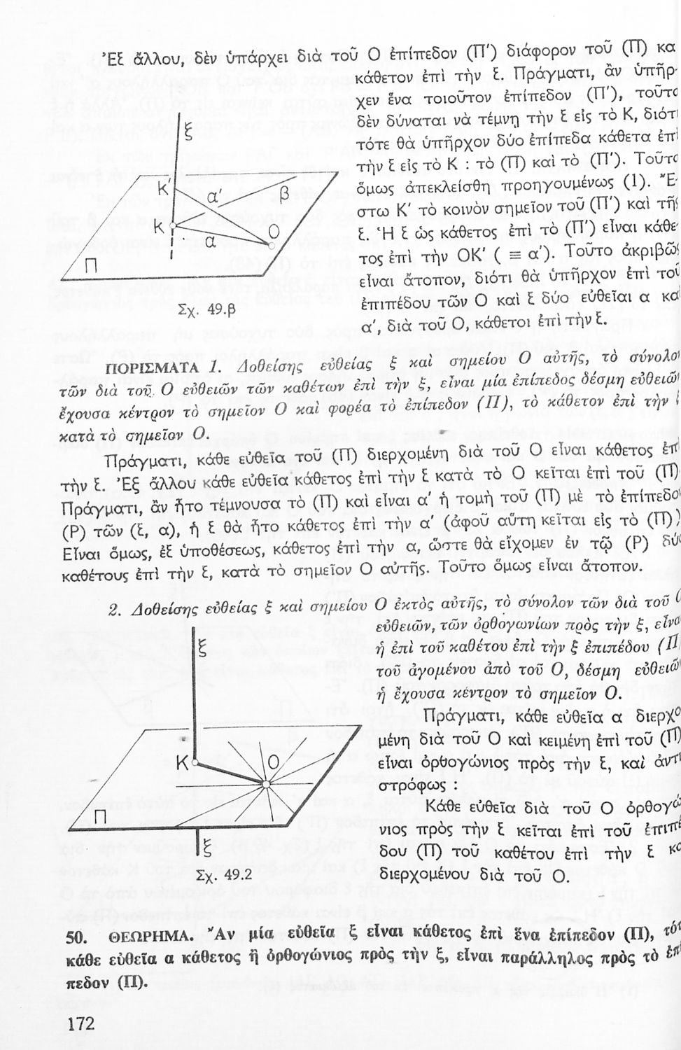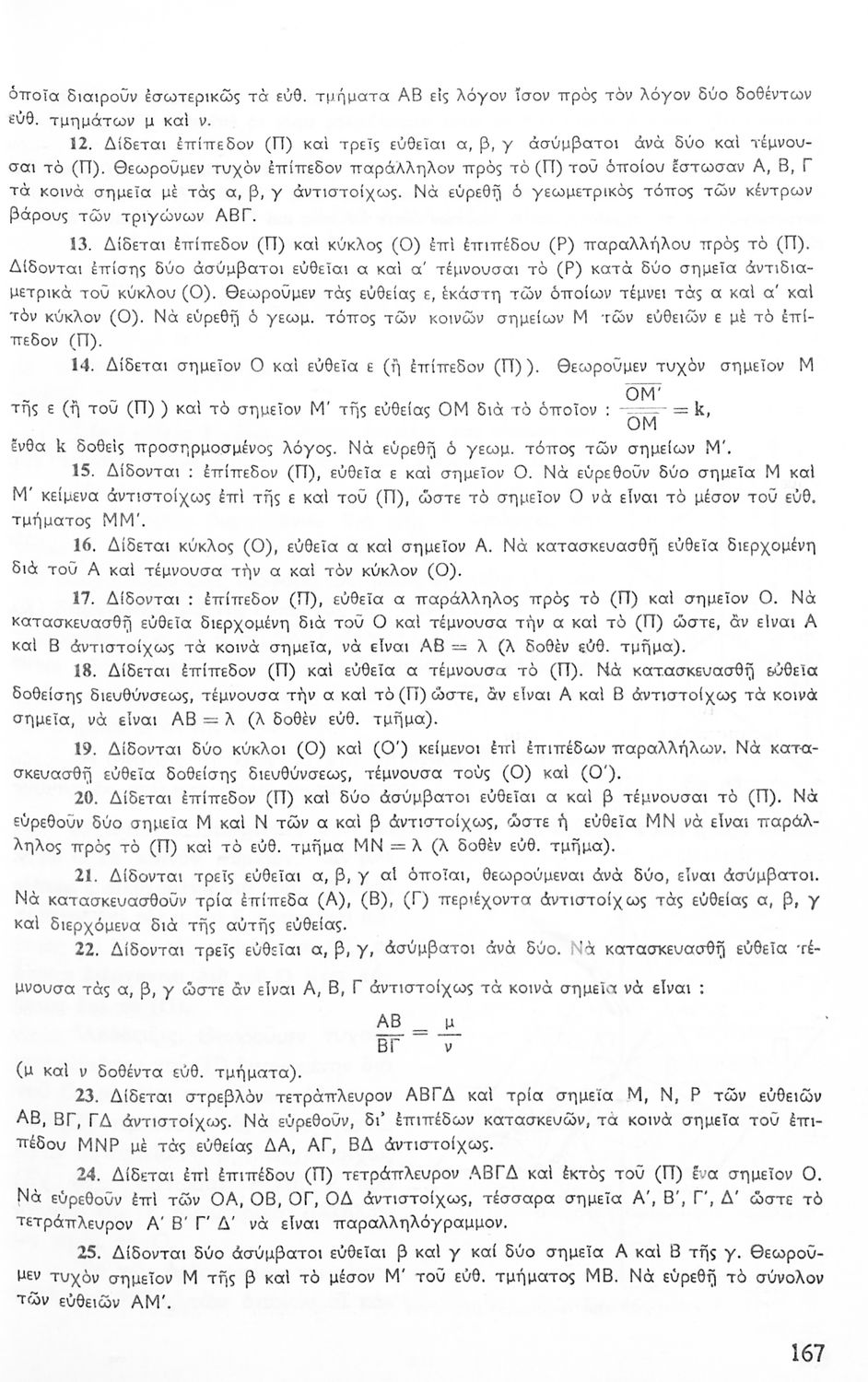 Σχολικό εγχειρίδιο Γεωμετρίας για τις Γ΄, Δ΄, Ε΄, ΣΤ΄ Γυμνασίου που περιλαμβάνει θεωρία και ασκήσεις και είναι χωρισμένο σε Επιπεδομετρία και Στερεομετρία. Φέρει το σύμβολο της δικτατορίας.