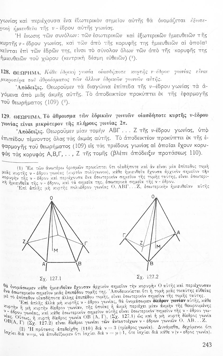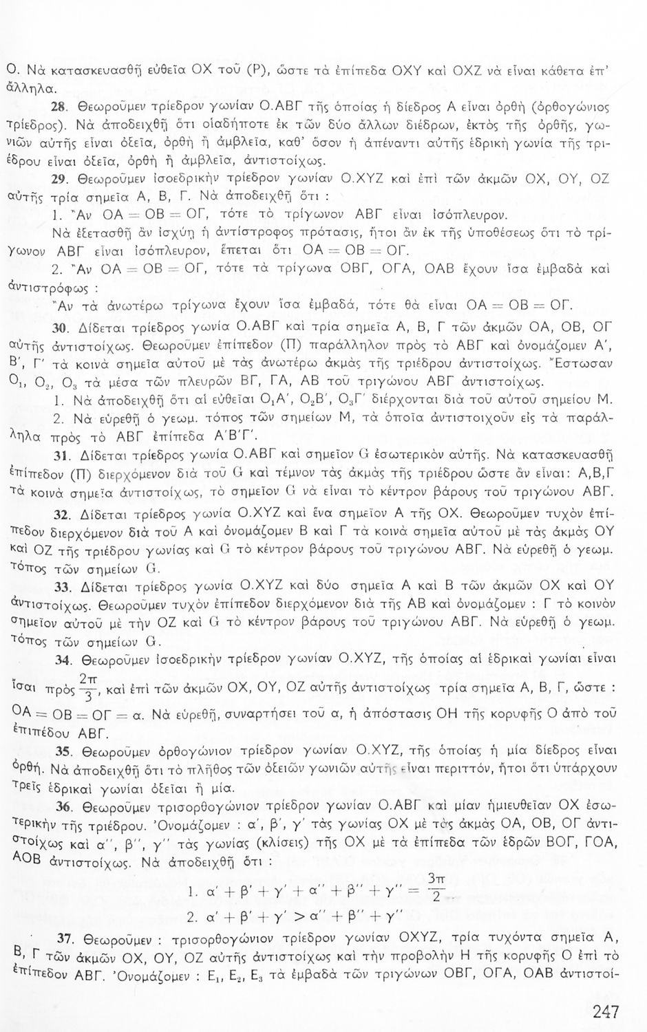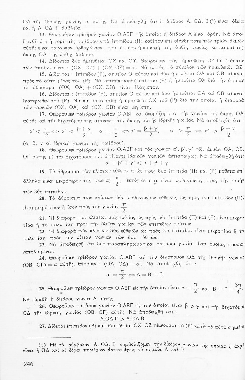 Σχολικό εγχειρίδιο Γεωμετρίας για τις Δ΄, Ε΄ και ΣΤ΄ Γυμνασίου που περιλαμβάνει αξιώματα, θεωρήματα και κατασκευές και είναι χωρισμένο σε γεωμετρία επιπέδου και γεωμετρία χώρου.