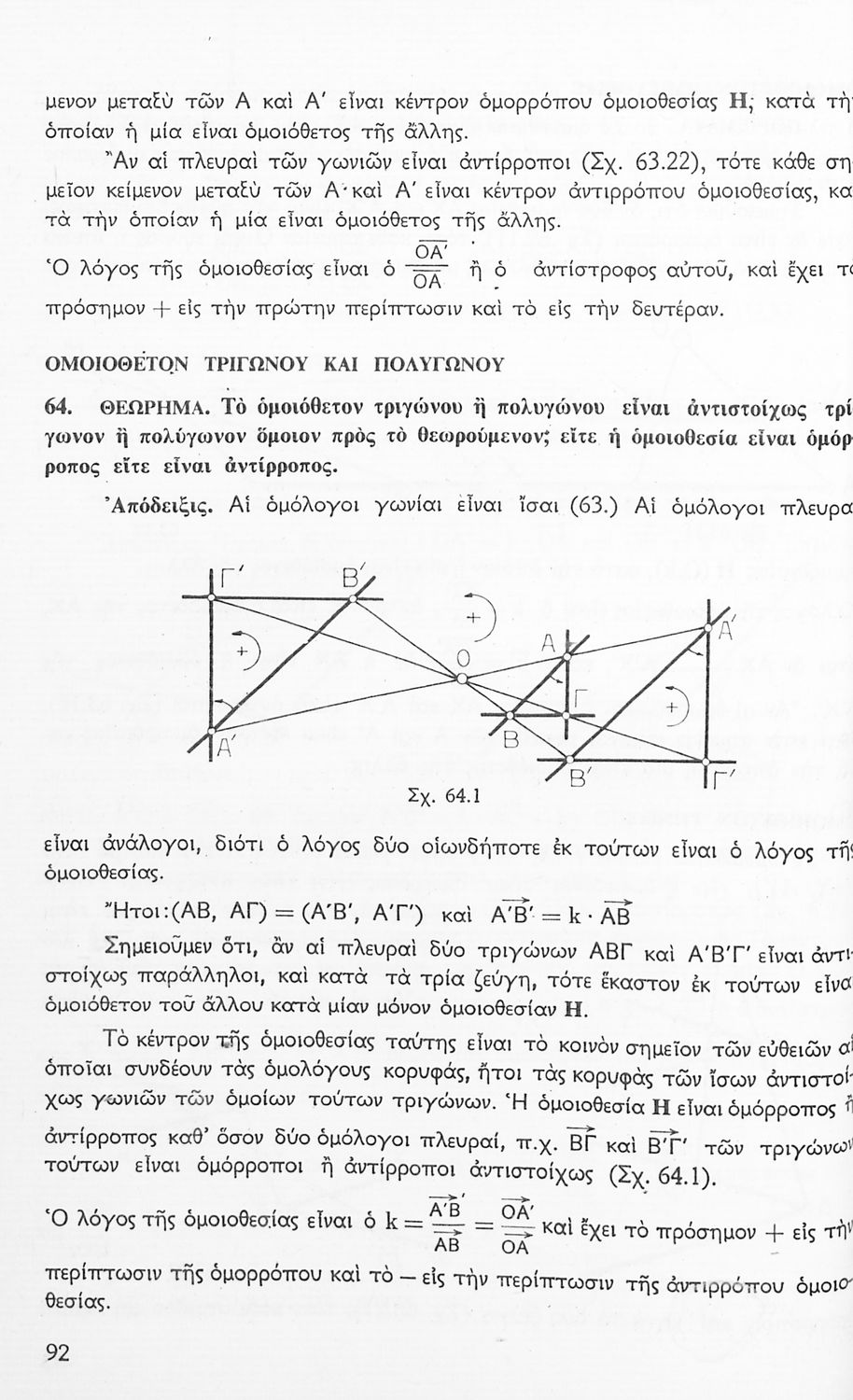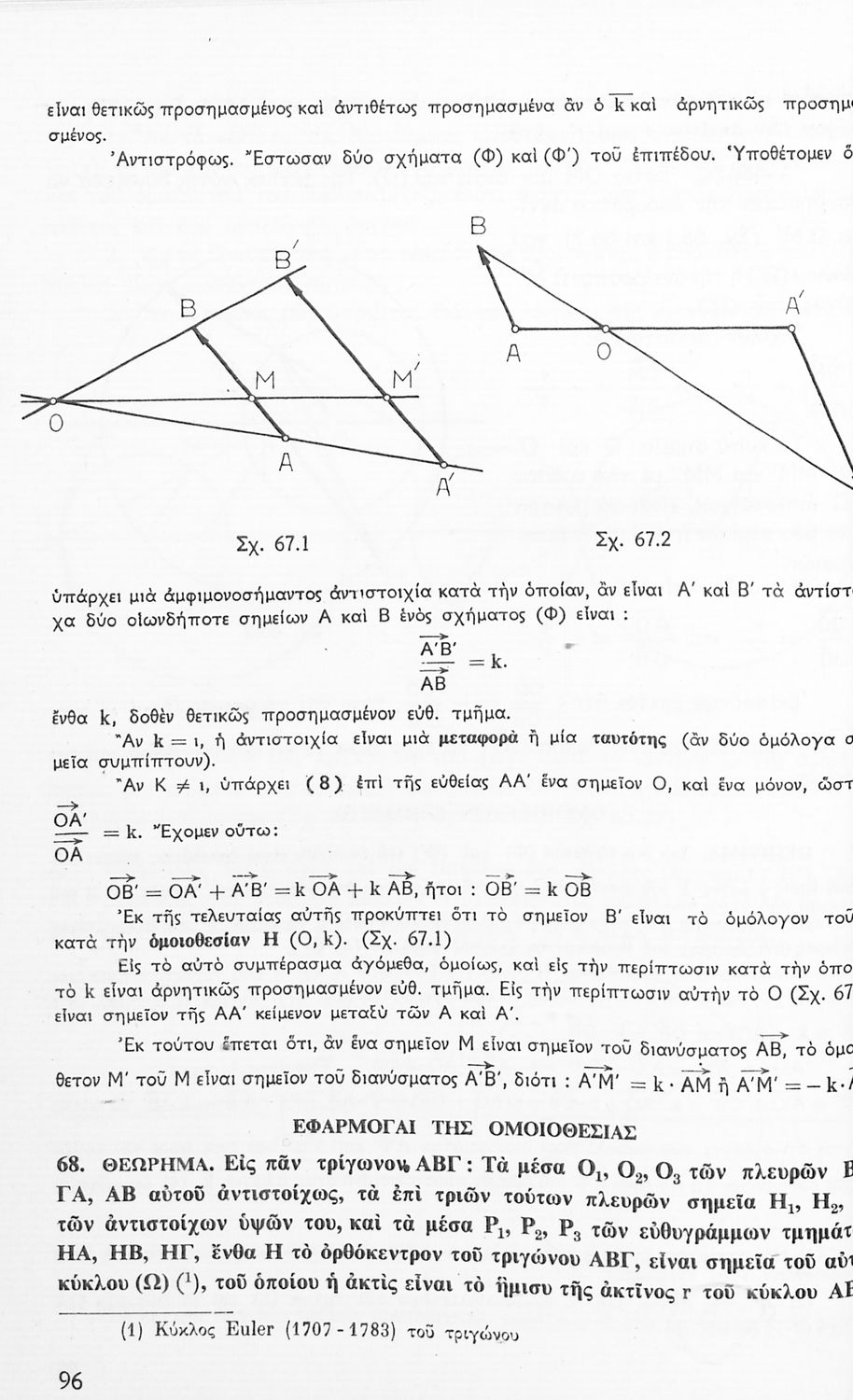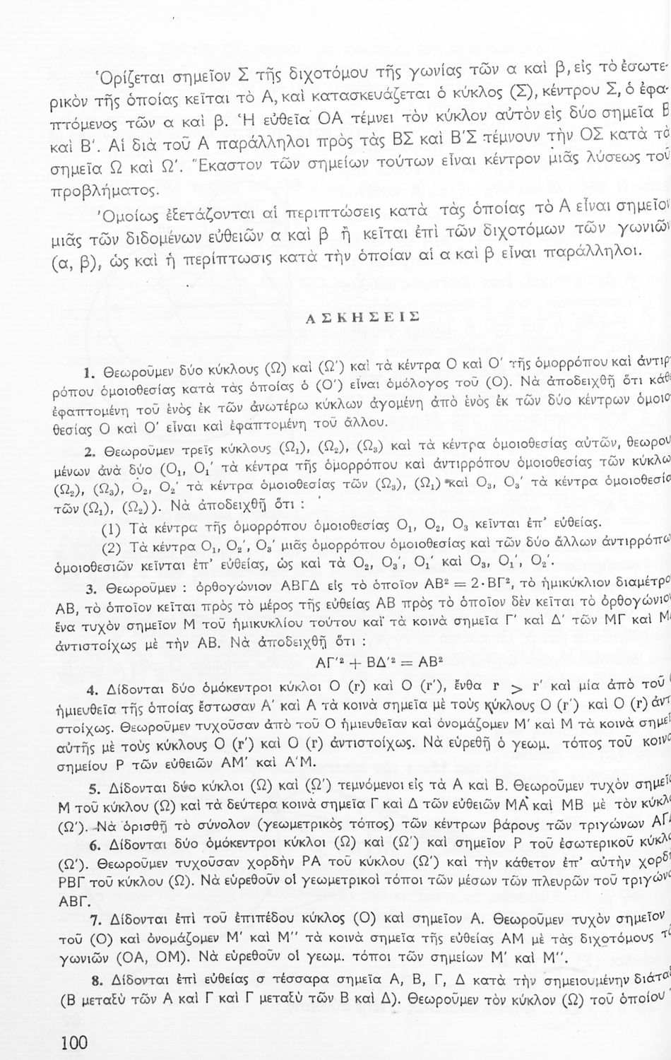 Σχολικό εγχειρίδιο Γεωμετρίας για τις Δ΄, Ε΄ και ΣΤ΄ Γυμνασίου που περιλαμβάνει αξιώματα, θεωρήματα και κατασκευές και είναι χωρισμένο σε γεωμετρία επιπέδου και γεωμετρία χώρου.