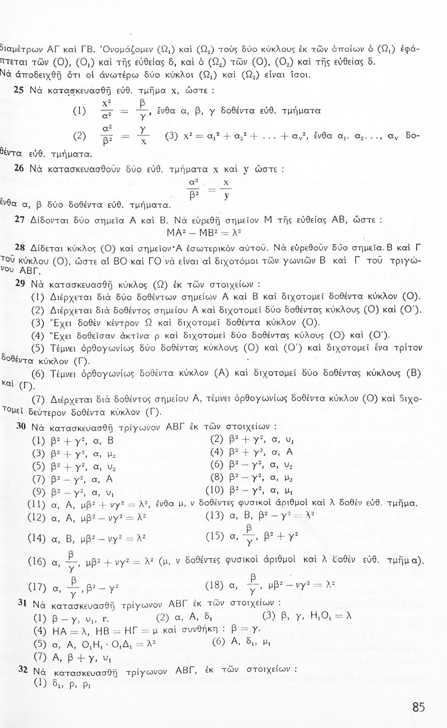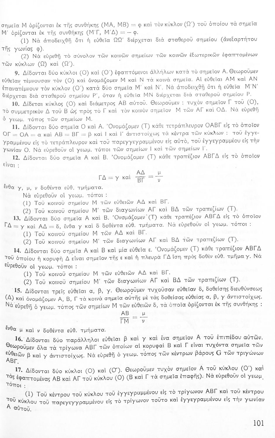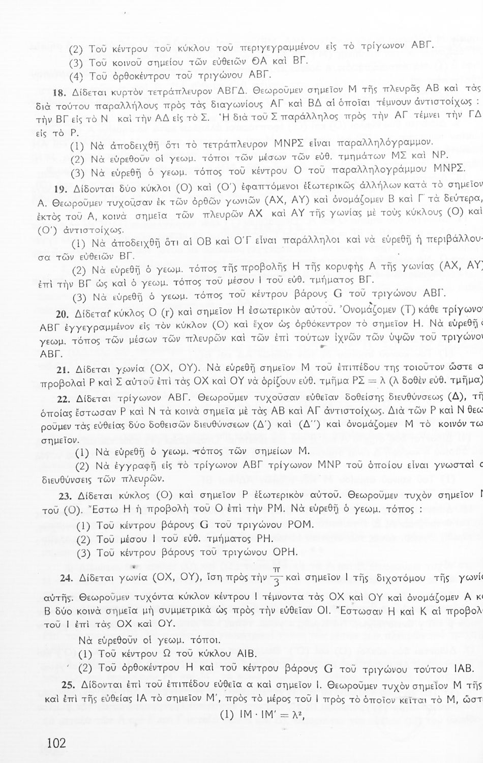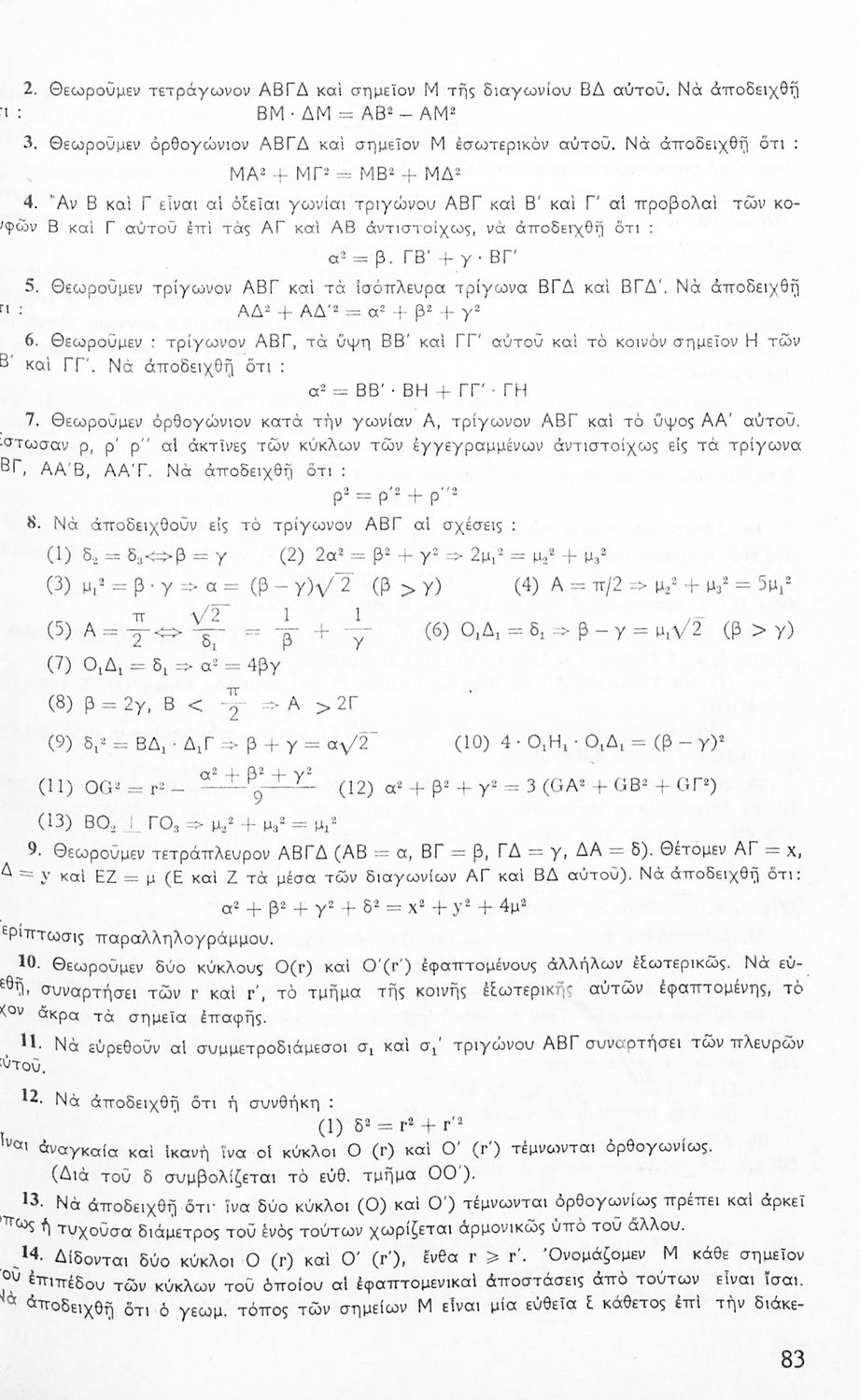 Σχολικό εγχειρίδιο Γεωμετρίας για τις Δ΄, Ε΄ και ΣΤ΄ Γυμνασίου που περιλαμβάνει αξιώματα, θεωρήματα και κατασκευές και είναι χωρισμένο σε γεωμετρία επιπέδου και γεωμετρία χώρου.
