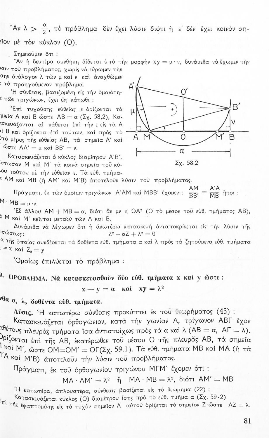 Σχολικό εγχειρίδιο Μαθηματικών Δ΄ και Ε΄ Γυμνασίου που είναι χωρισμένο σε θεωρήματα και ασκήσεις και εστιάζει στη Γεωμετρία. Φέρει το σύμβολο της δικτατορίας.