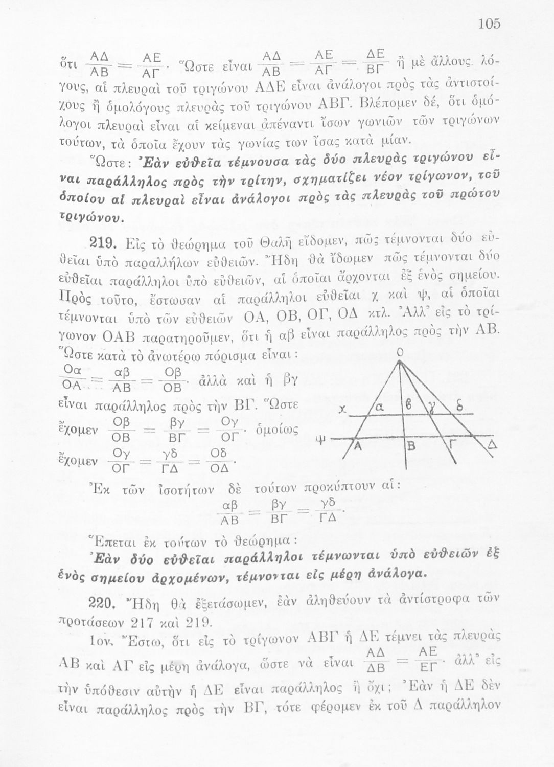 Σχολικό εγχειρίδιο Γεωμετρίας Γυμνασίου που είναι χωρισμένο σε θεωρήματα και ασκήσεις και εστιάζει στα βασικά θεωρήματα και ιδιότητες των γεωμετρικών σχημάτων. .