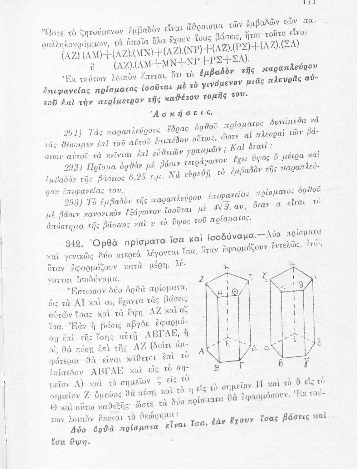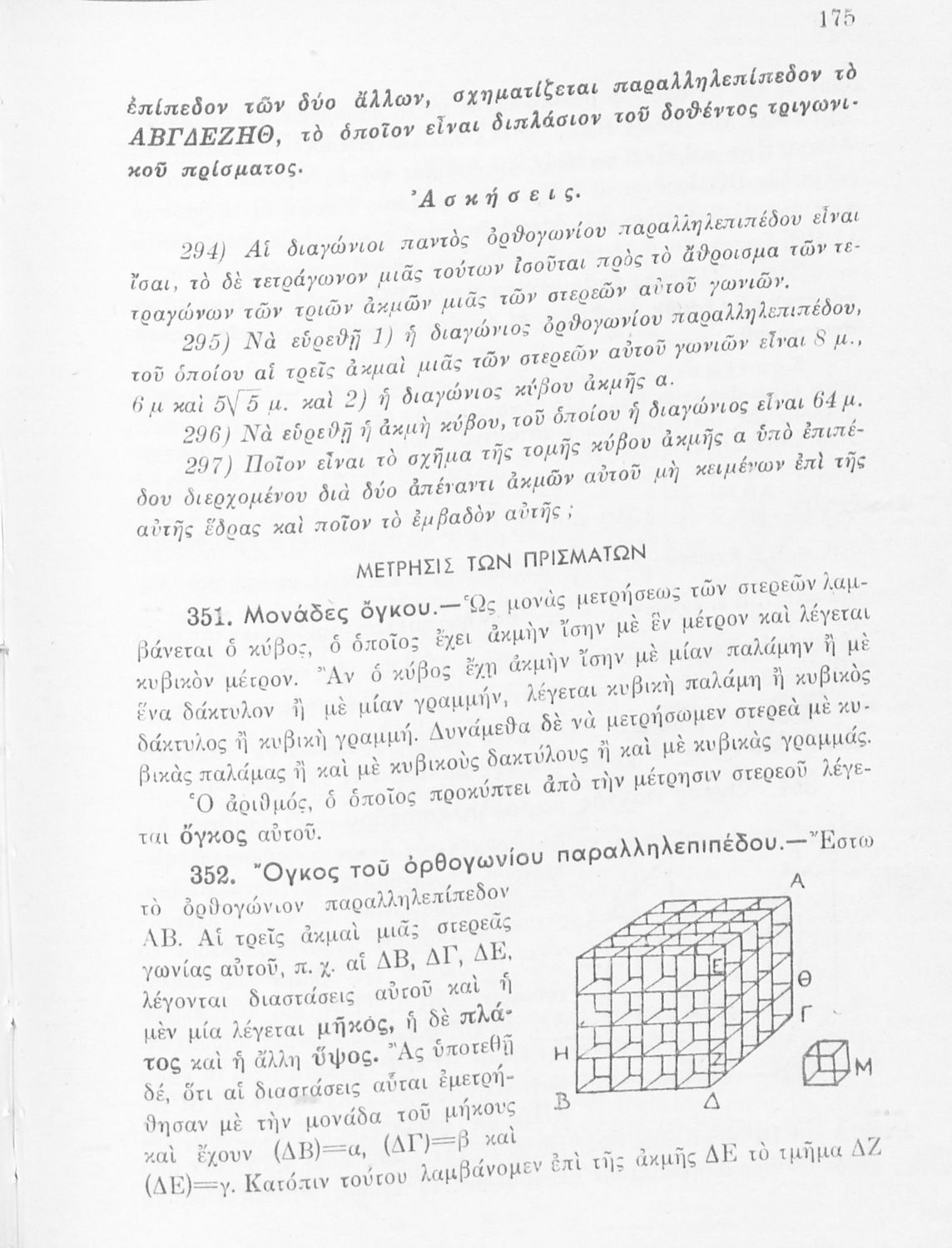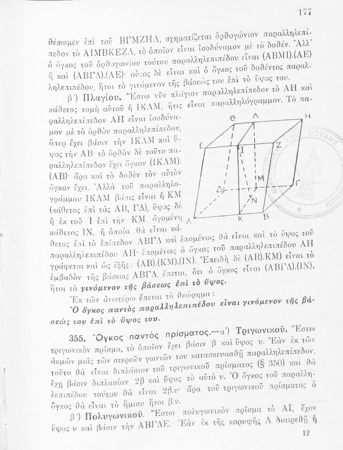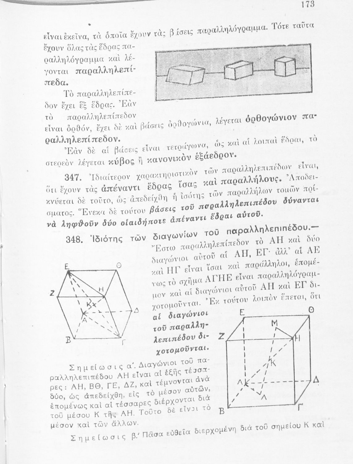 Σχολικό εγχειρίδιο Γεωμετρίας για τις Α΄, Β΄, Γ΄ Γυμνασίου που είναι χωρισμένο σε Επιπεδομετρία και Στερεομετρία και περιλαμβάνει θεωρία και ασκήσεις.
