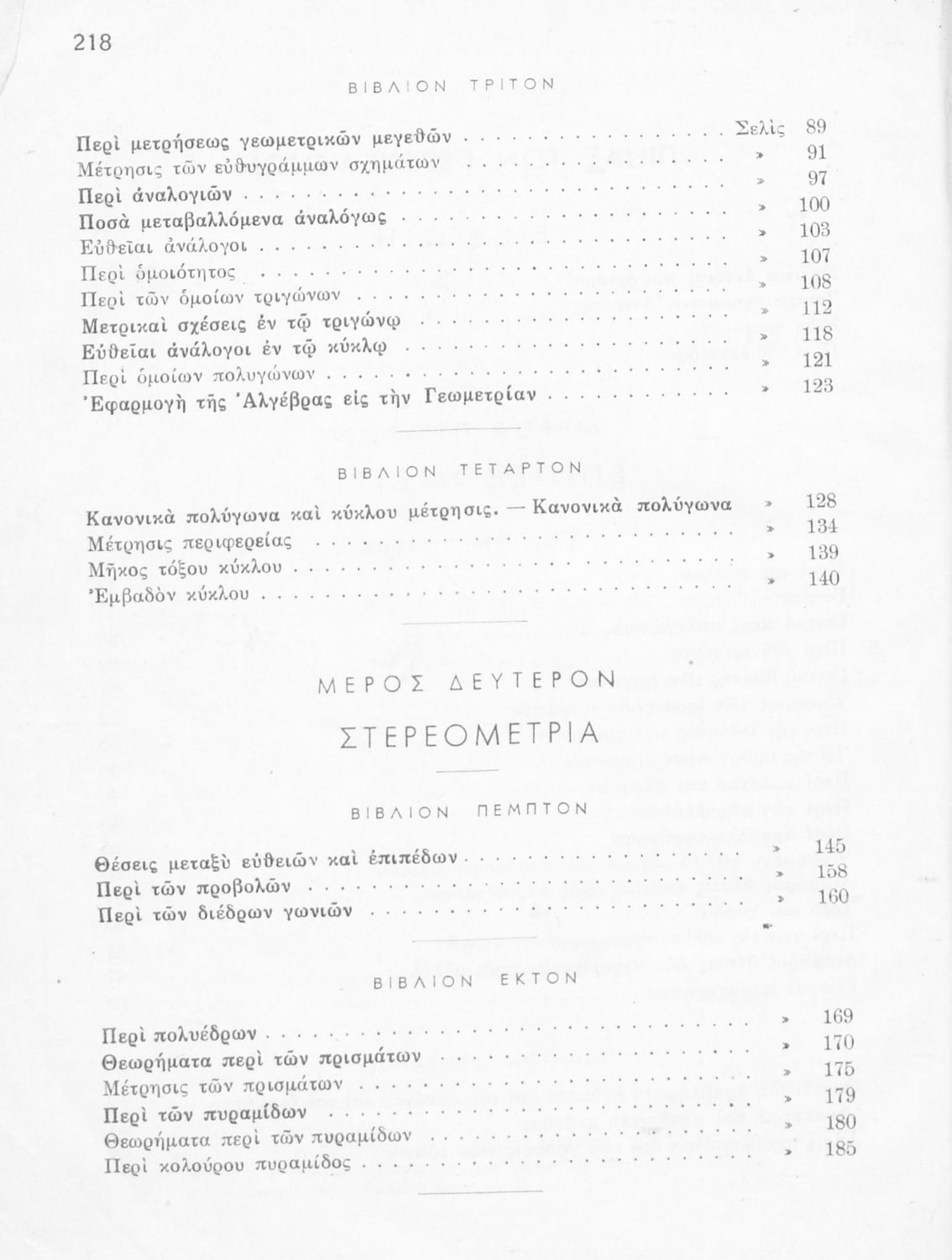 Σχολικό εγχειρίδιο Γεωμετρίας για τις Α΄, Β΄, Γ΄ Γυμνασίου που είναι χωρισμένο σε Επιπεδομετρία και Στερεομετρία και περιλαμβάνει θεωρία και ασκήσεις.